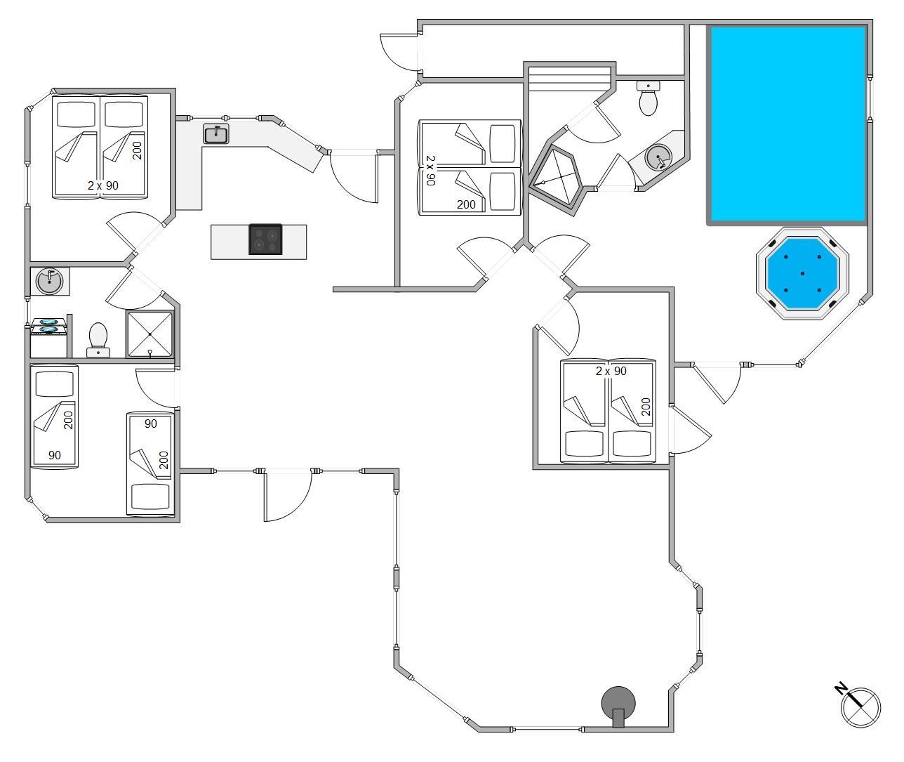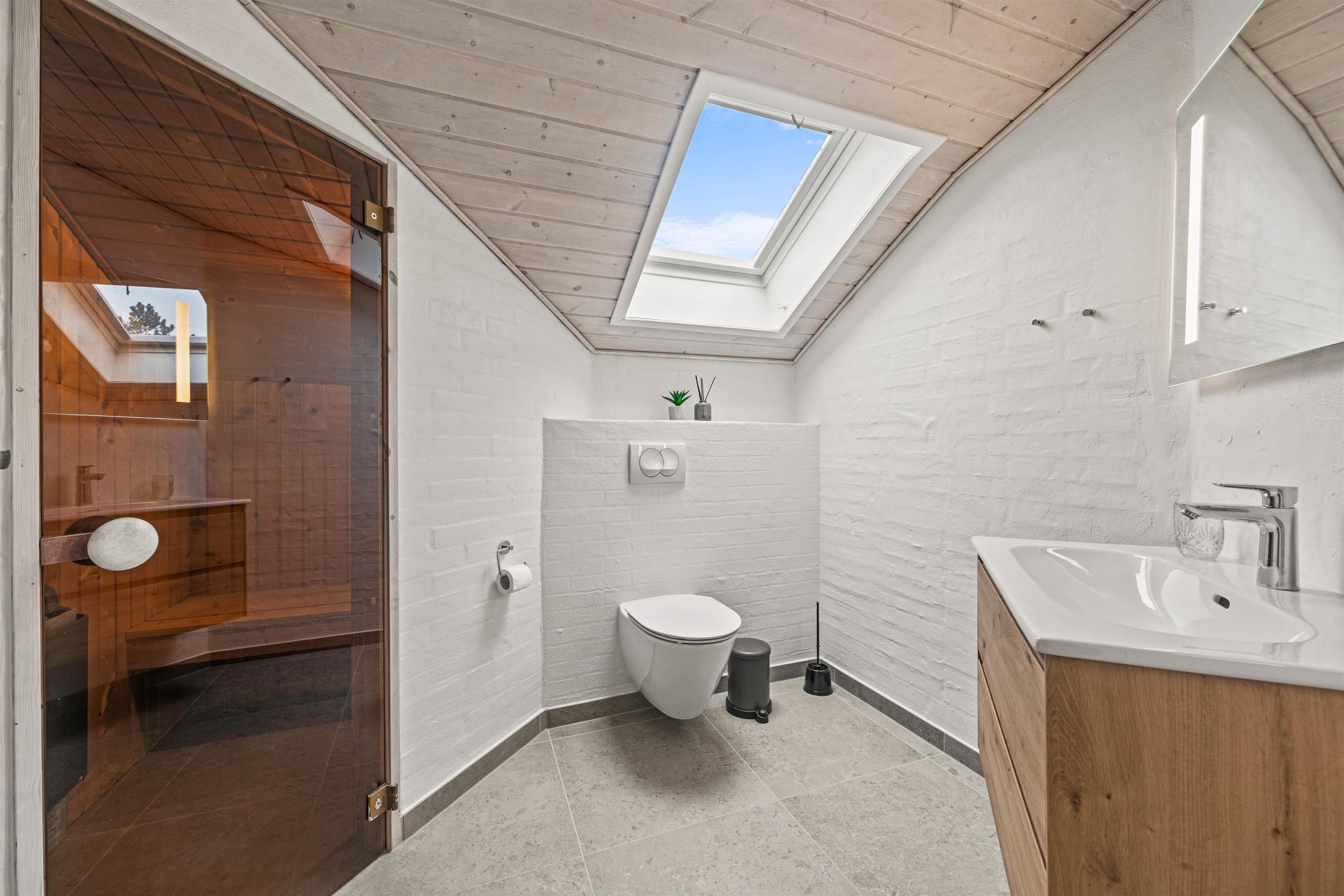 Sauna, spa og poolen med modstrømsanlæg kan bruges hele året rundt, uanset årstiden eller udetemperaturen. Poolen byder børnene på de bedste rammer for timevis af sjov, eller måske endda prøve deres første svømmetur eller måske er de voksne mere til ren afslapning i den boblende jacuzzi med den dejlige udsigt. Saunaen befinder sig en af de to badeværelser, hvor gulvvarmen sikrer jer varme fødder om morgenen.