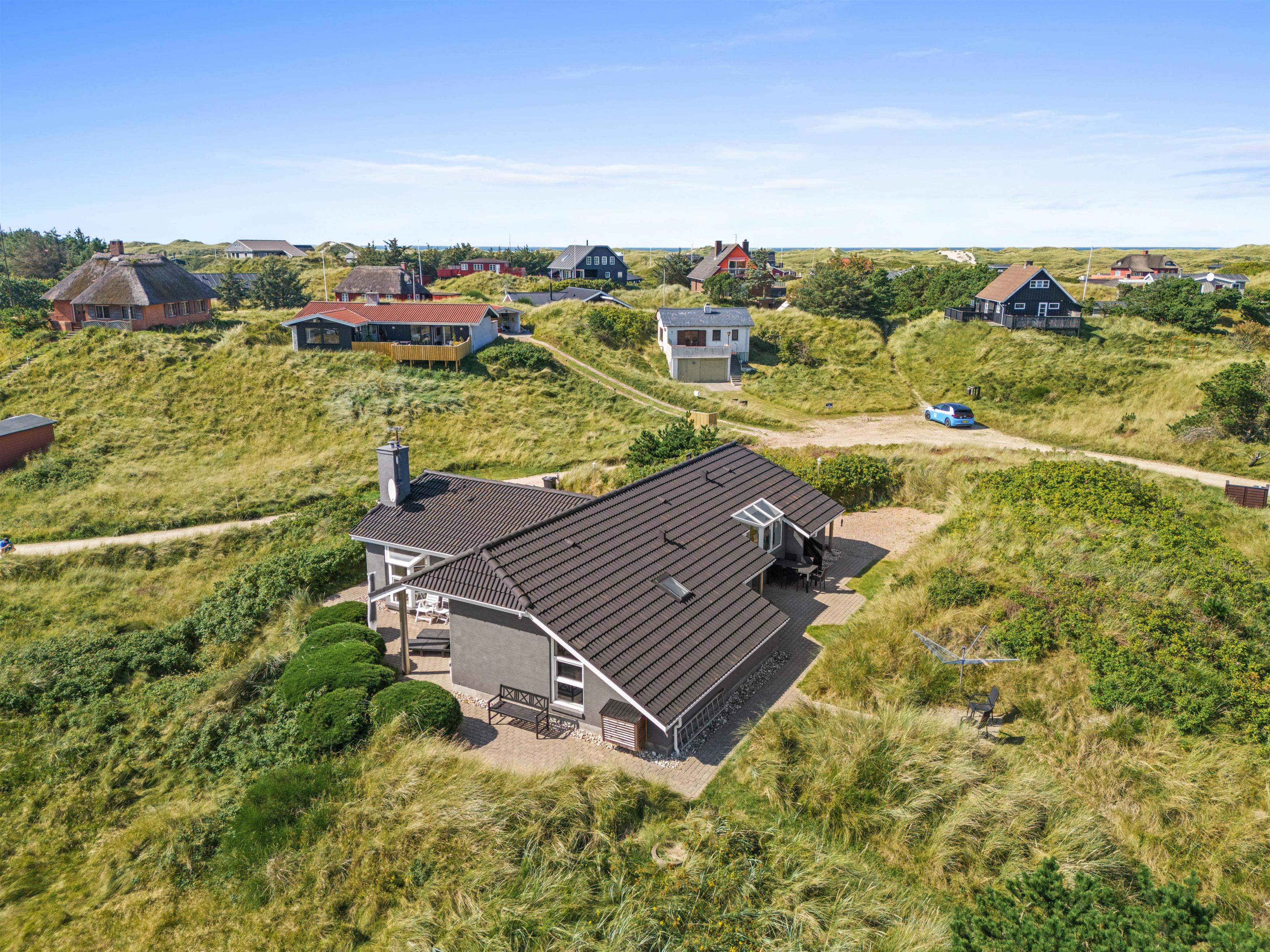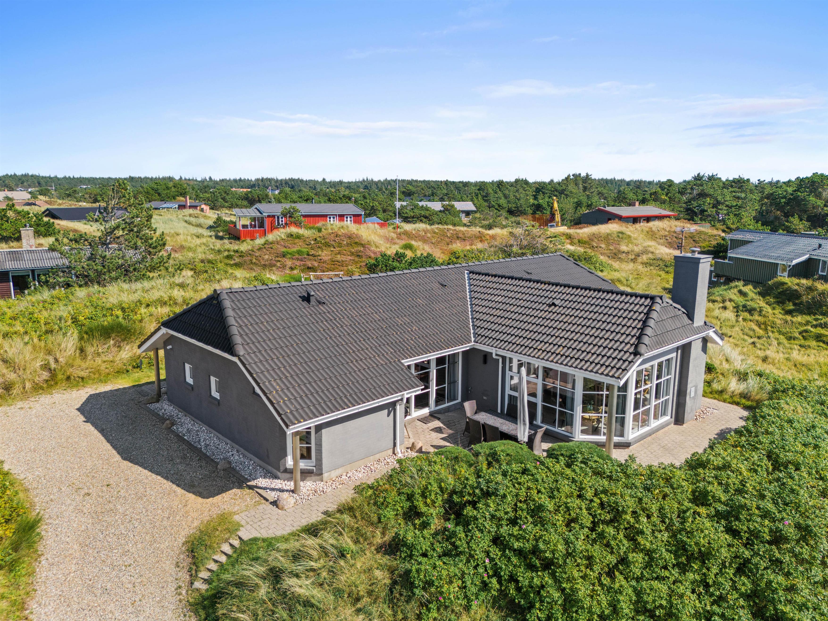 Lidt oppe på en klit ligger Kratvej 10 i den smukke by Vejers. Feriehuset på 149 m2 har god plads til et ophold med familie eller gode venner. Din hund er også velkommen her.