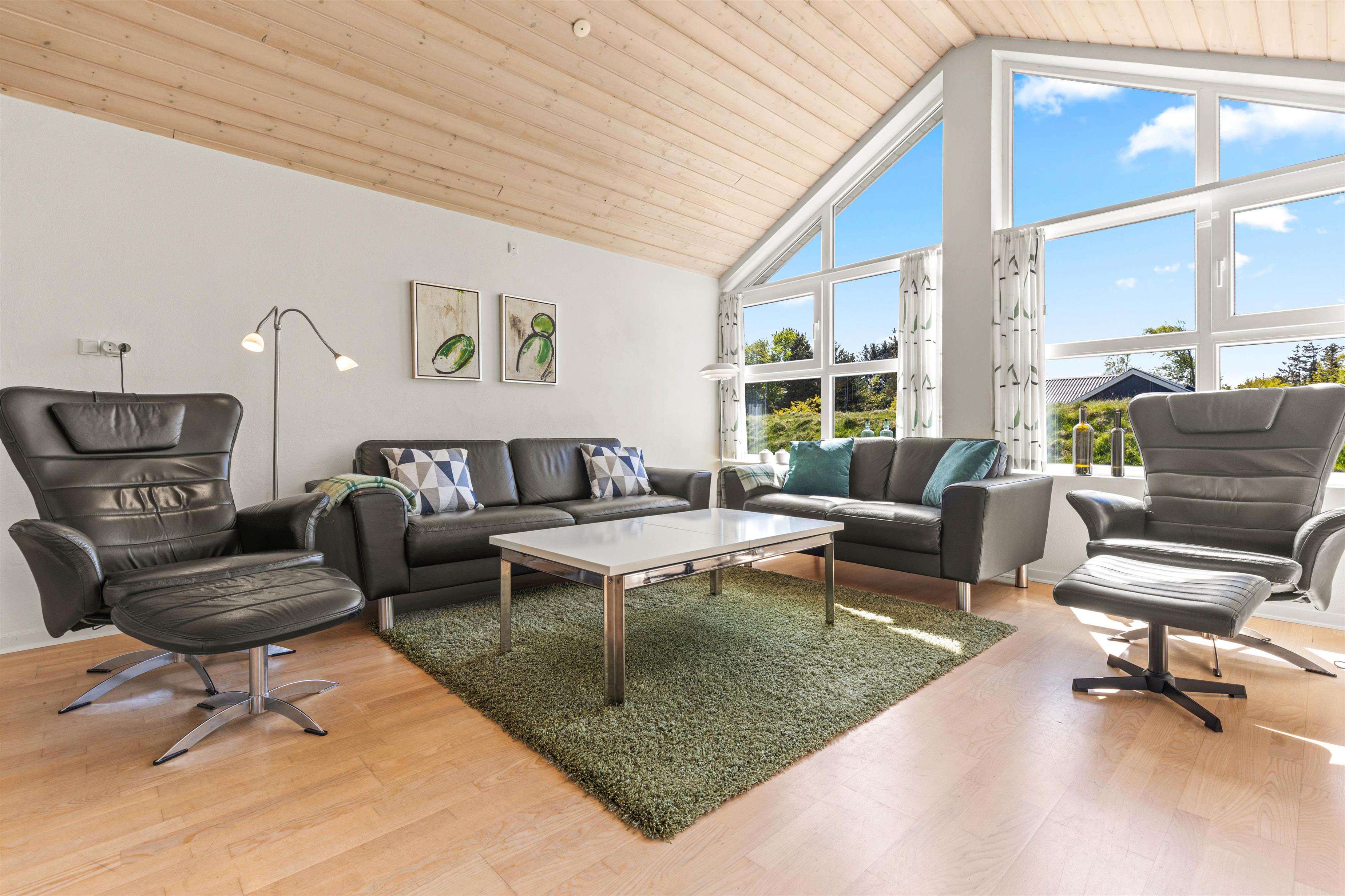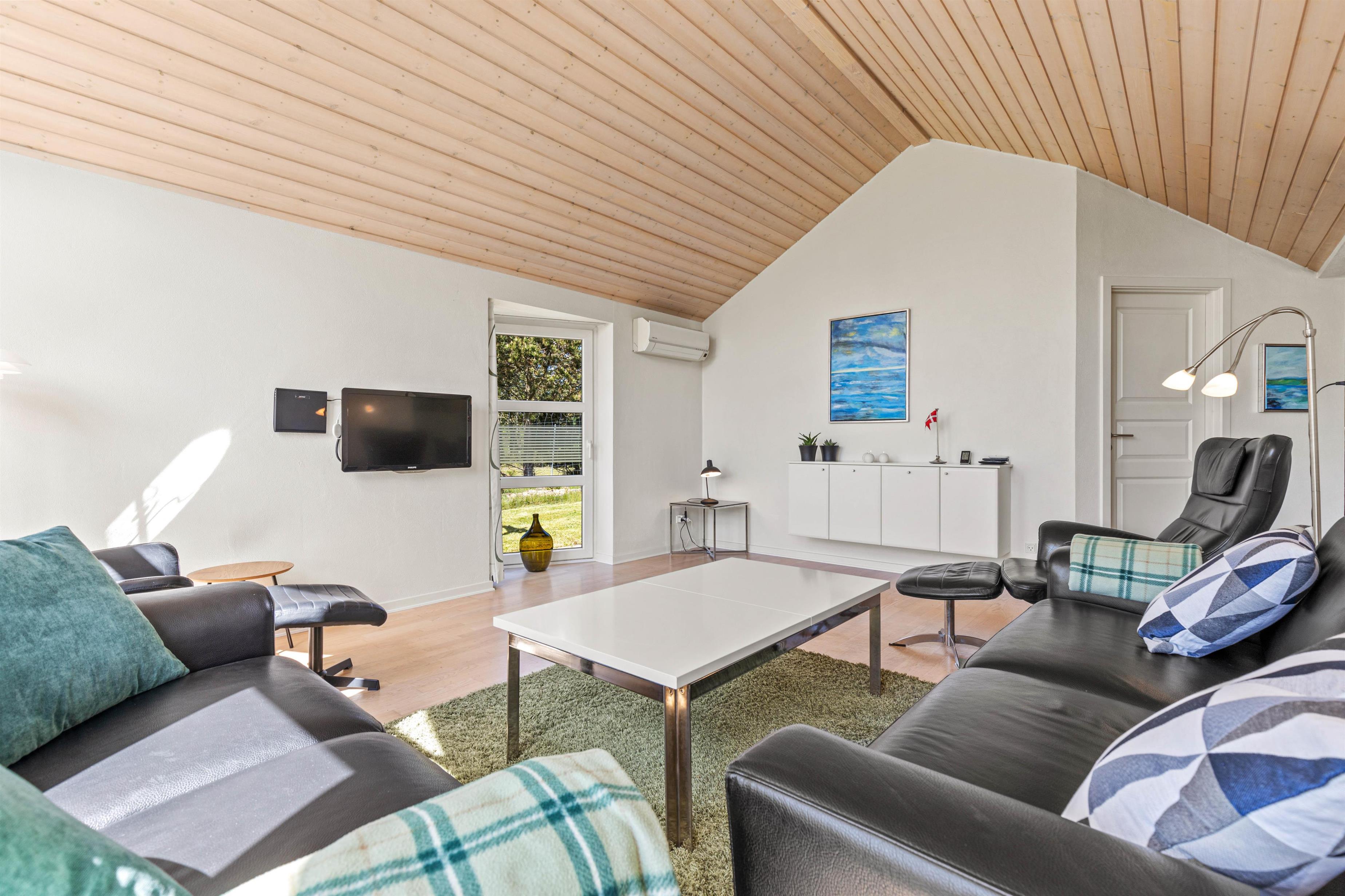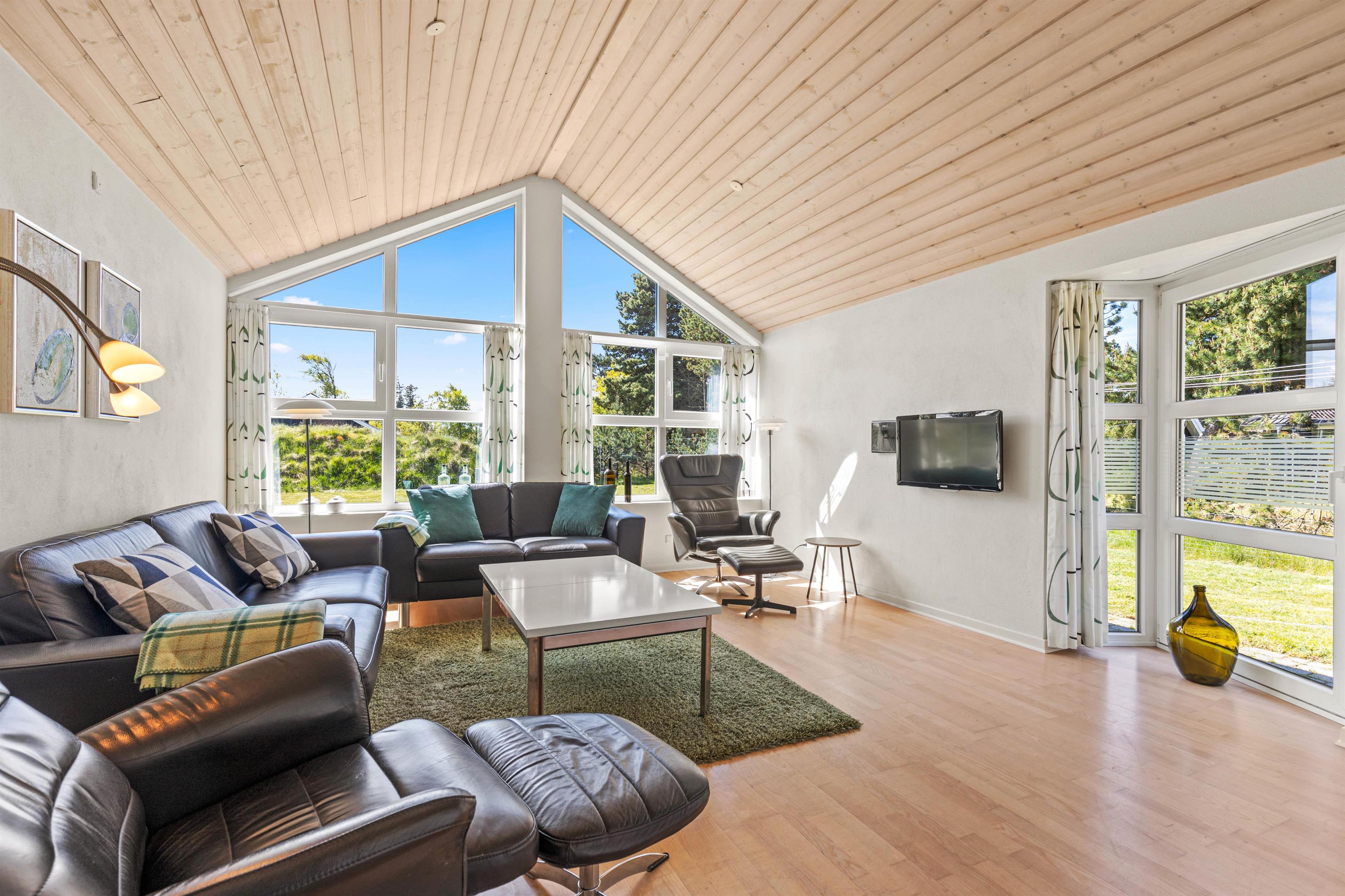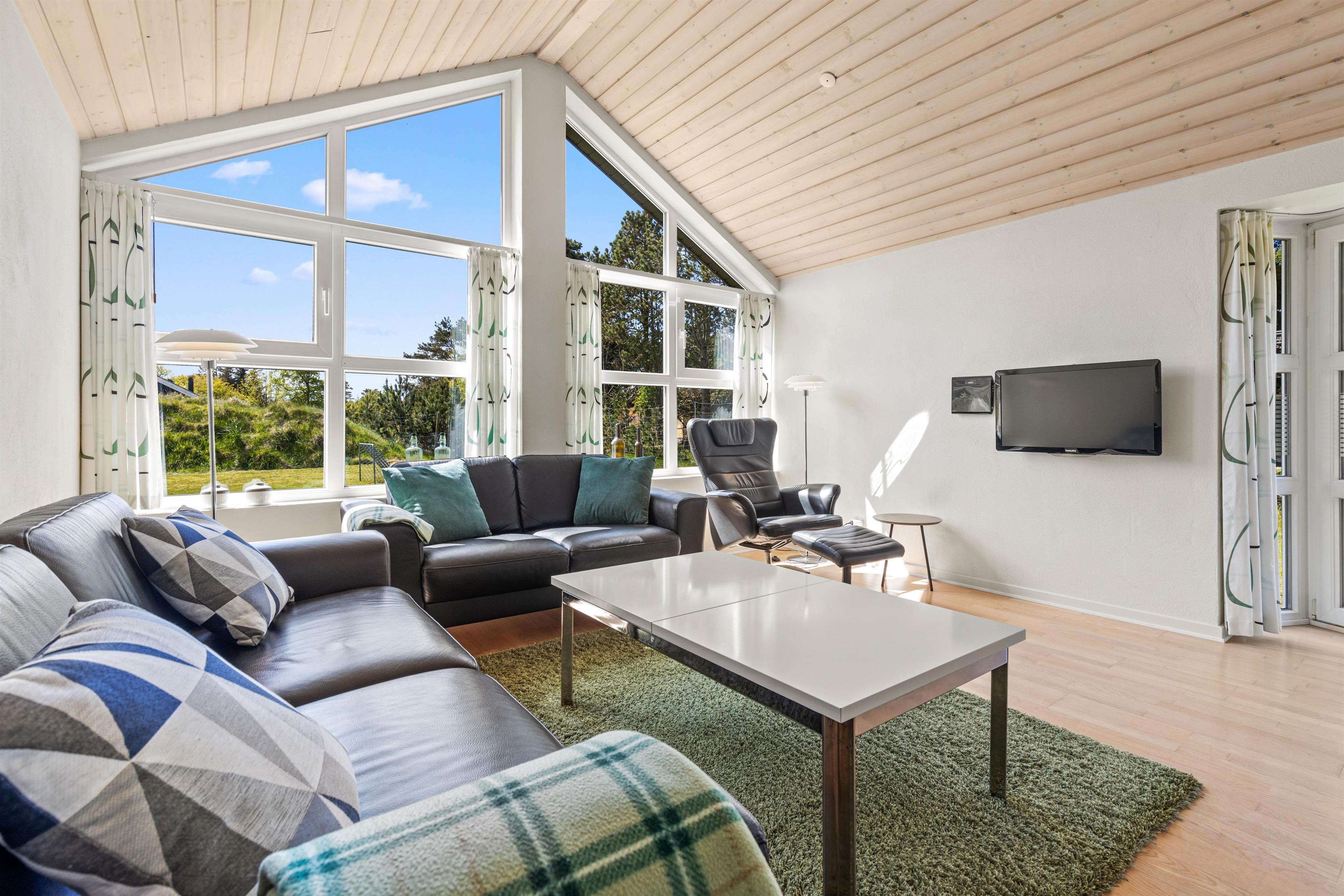 Gratis, internet, fladskærmsfjernsyn, DVD-afspiller og en lækker lædersofa - alt dette venter jer i stuen i dette stilfulde feriehus. Store vinduespartier og en smagfuld farvekombination skaber en dejlig afslappende atmosfære, og her bliver masser af tid til hygge.