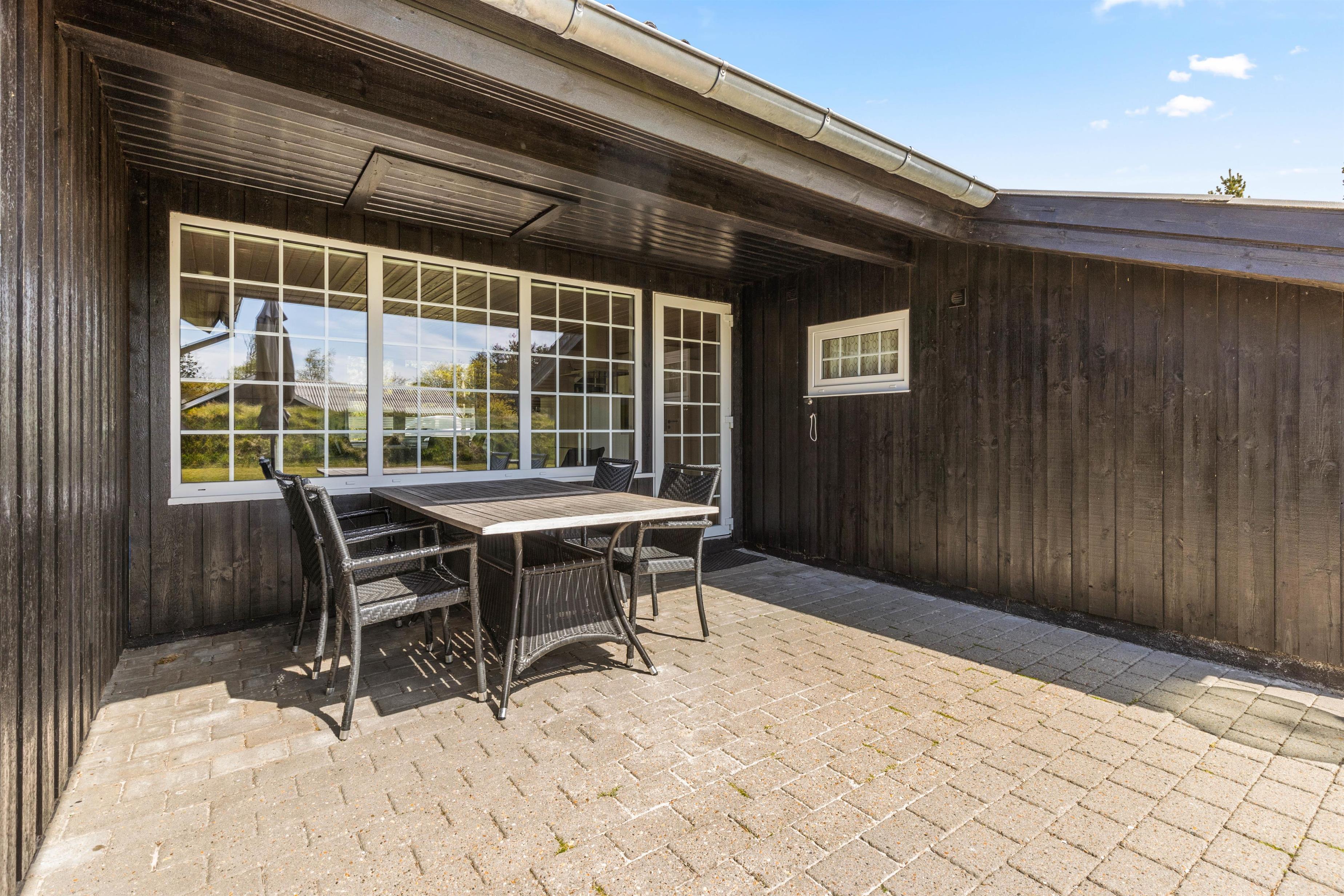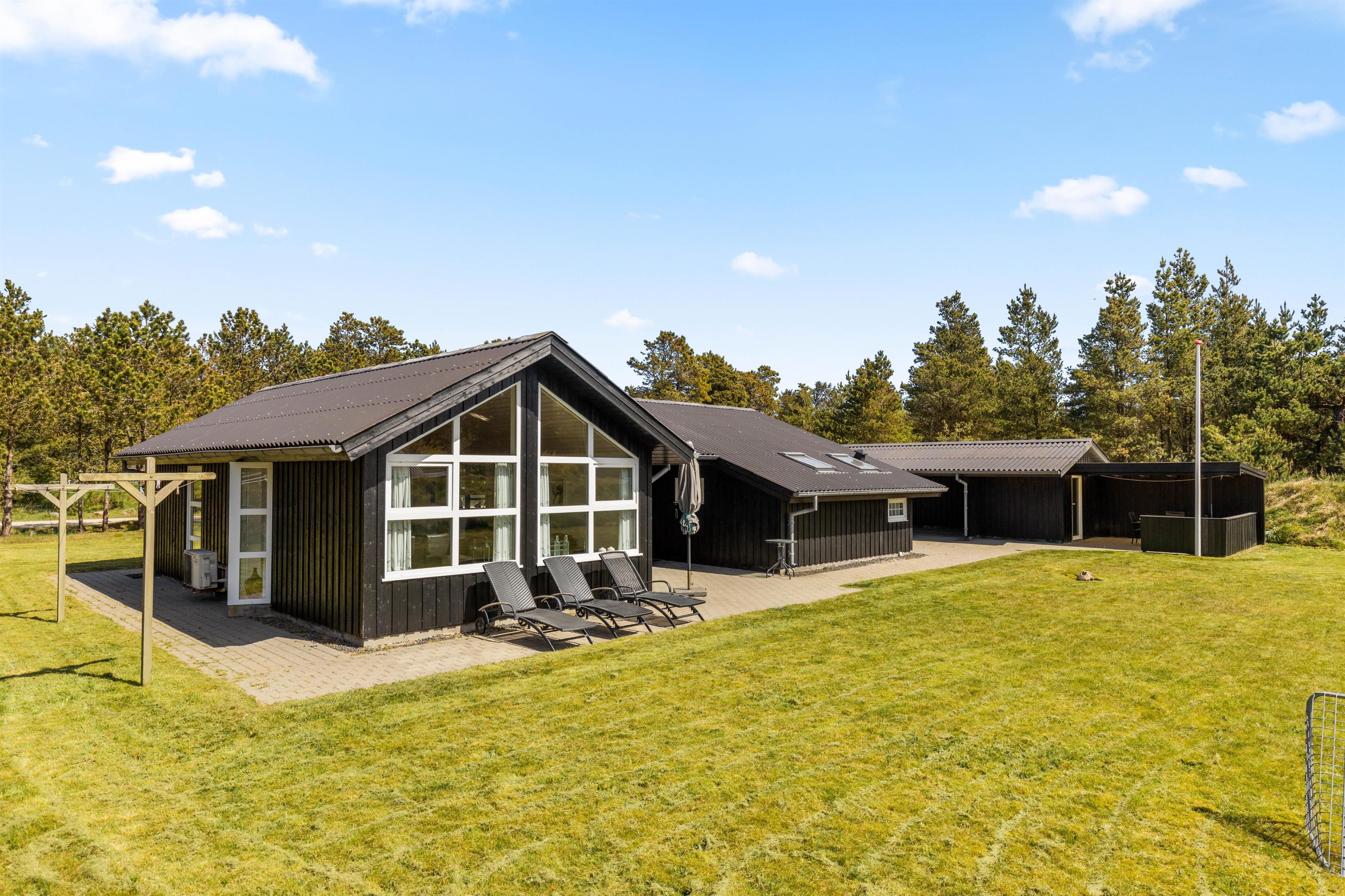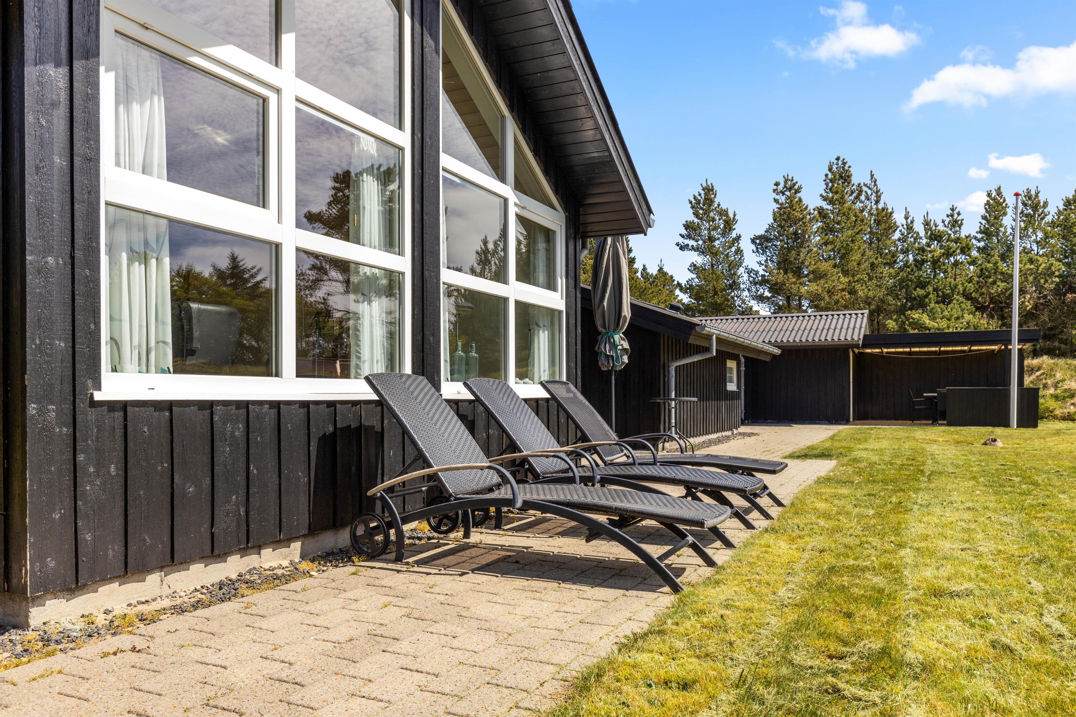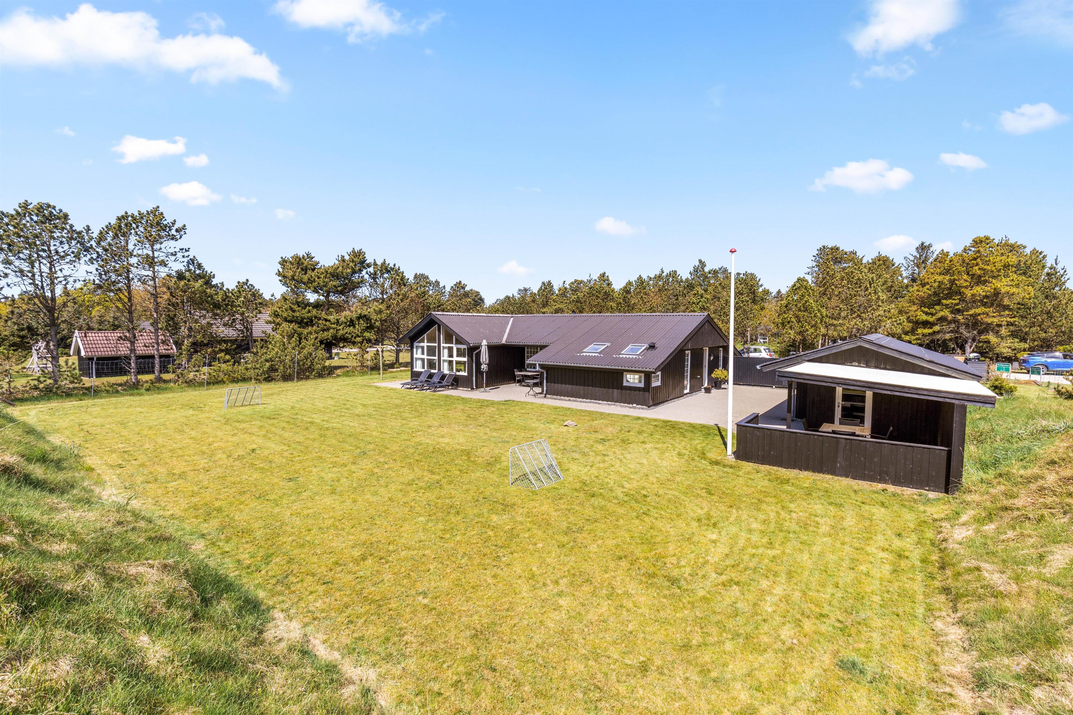 Jeres feriehjem på Muffparken 1 er en del af Vejers Strands elskede ferieområde. Den 1.900 m² store grund er omgivet af træer, og her har I masser af privatliv og god plads til at opholde jer udenfor på de varme feriedage.