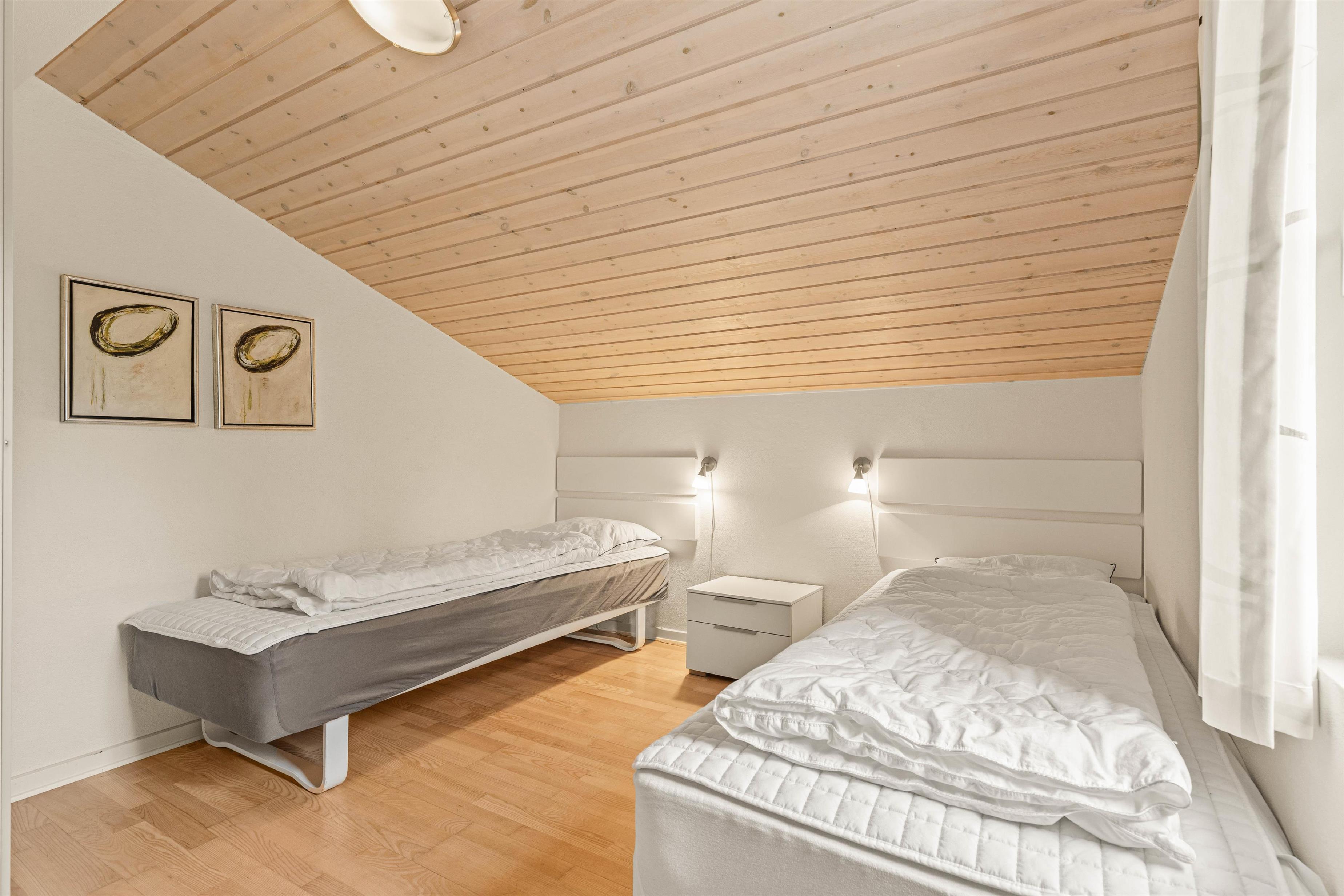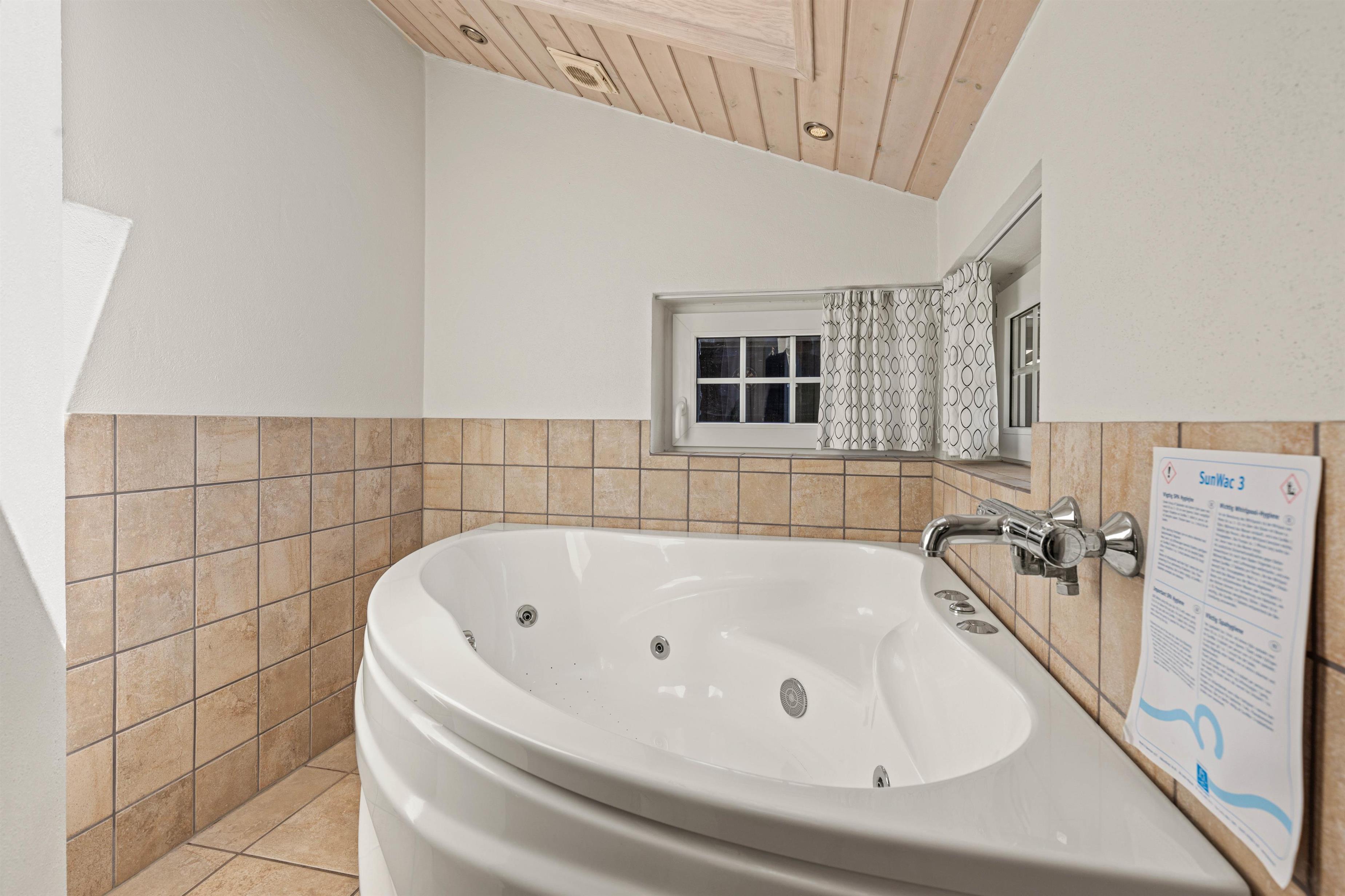 Det 109 m² store ikke-ryger hus er indrettet til maks 6 personer med sovepladser fordelt på tre fine soveværelse - det ene med adgang til sit eget lille badeværelse. Det store badeværelse gemmer på en ekstra wellness-hemmelighed; her står spabadet og saunaen klar til at give jer en ekstra afslappende ferie!