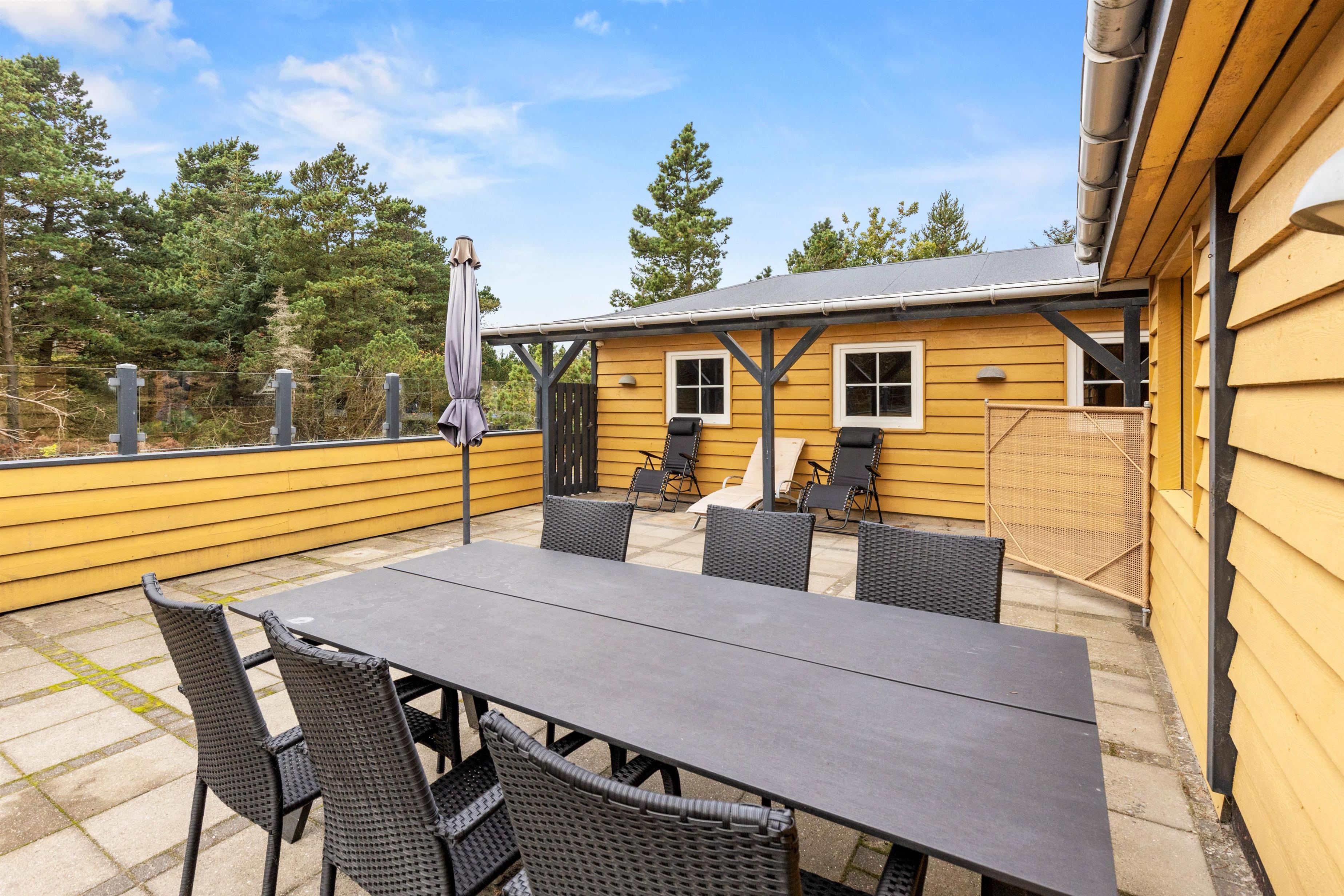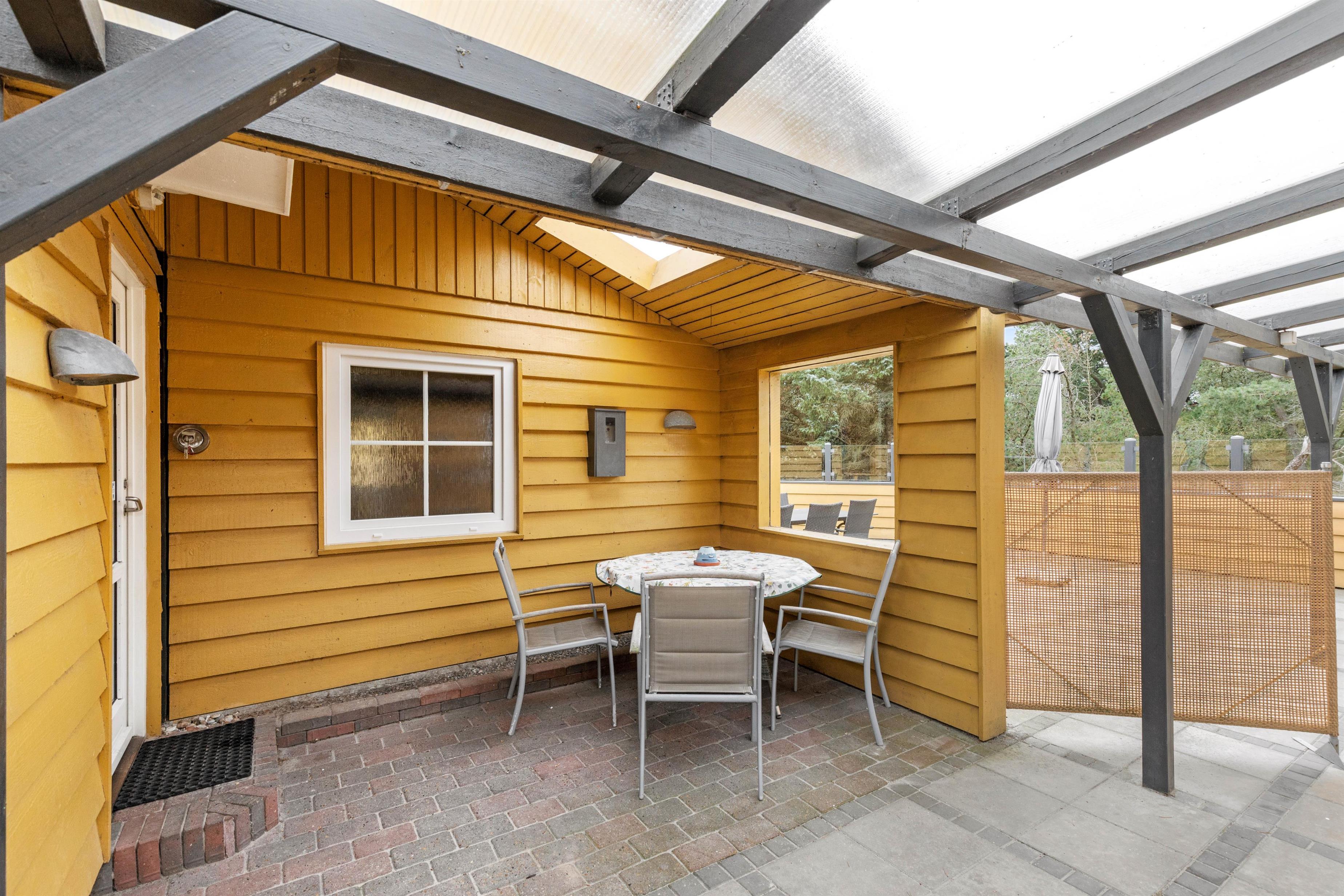 En stor lukket terrasse, som til dels er overdækket, garanterer for privatliv og dejlig læ. Her kan I trygt slappe af hele dagen, de små størrelser kan ikke smutte på opdagelse alene. Om aftenen kan I tænde op i grillen og lade dagen klinge ud med en grillet steak og et glas rødvin.