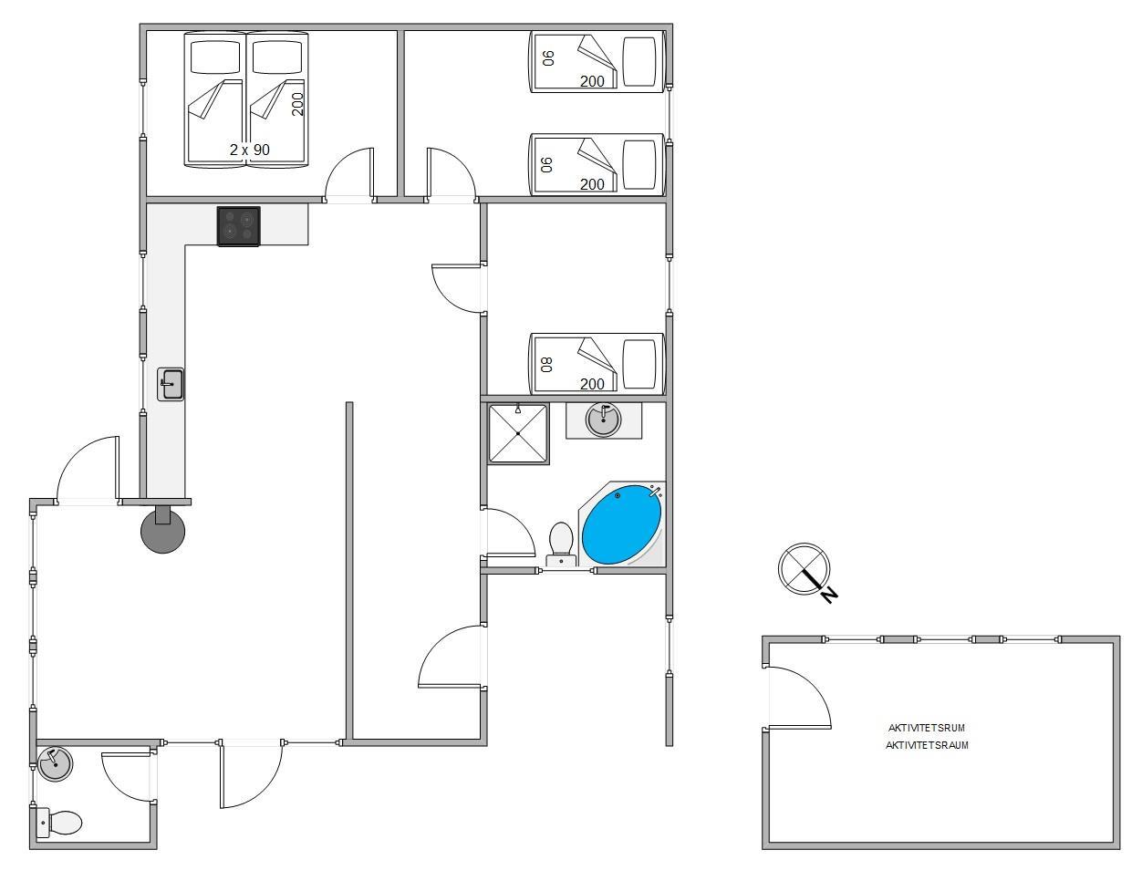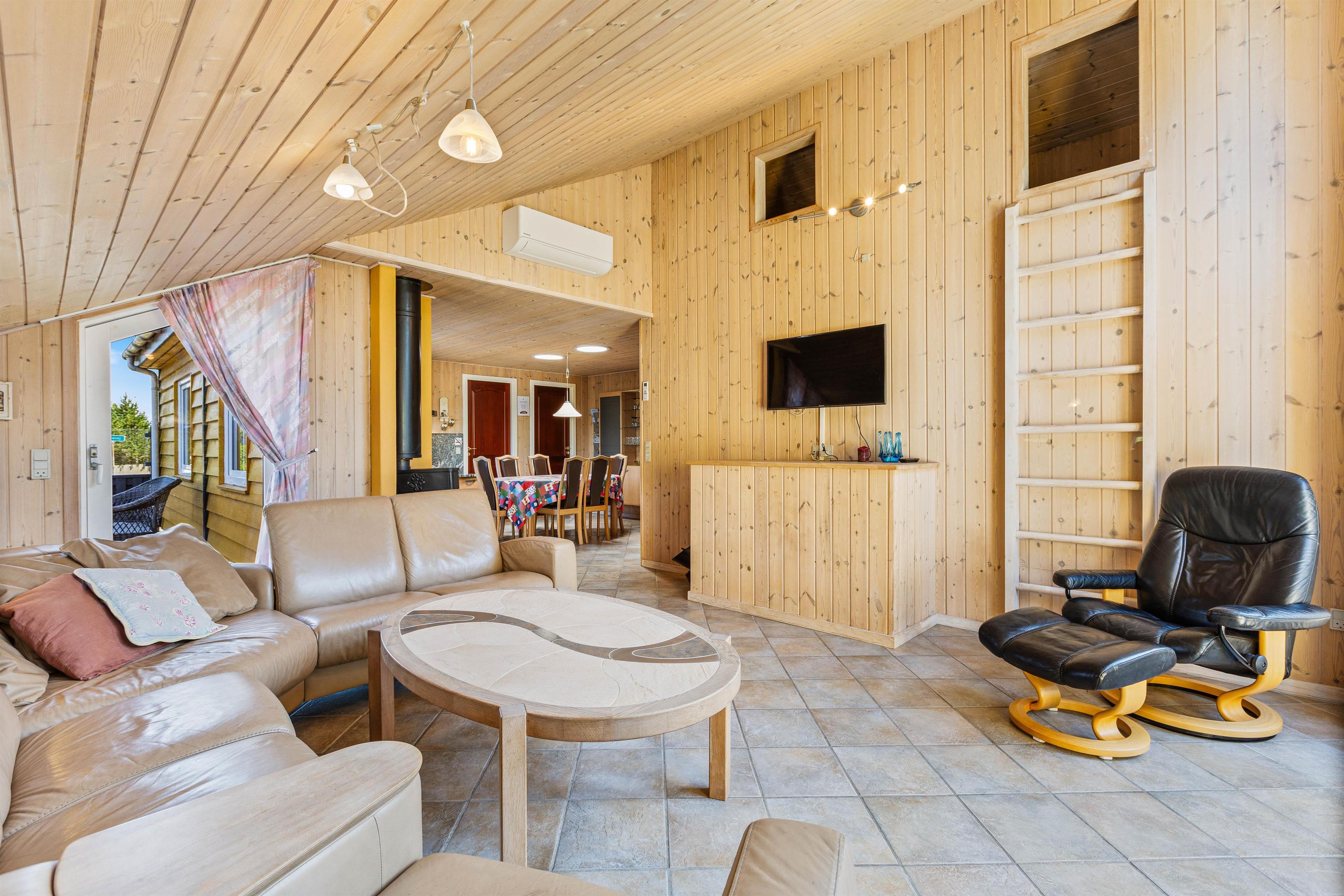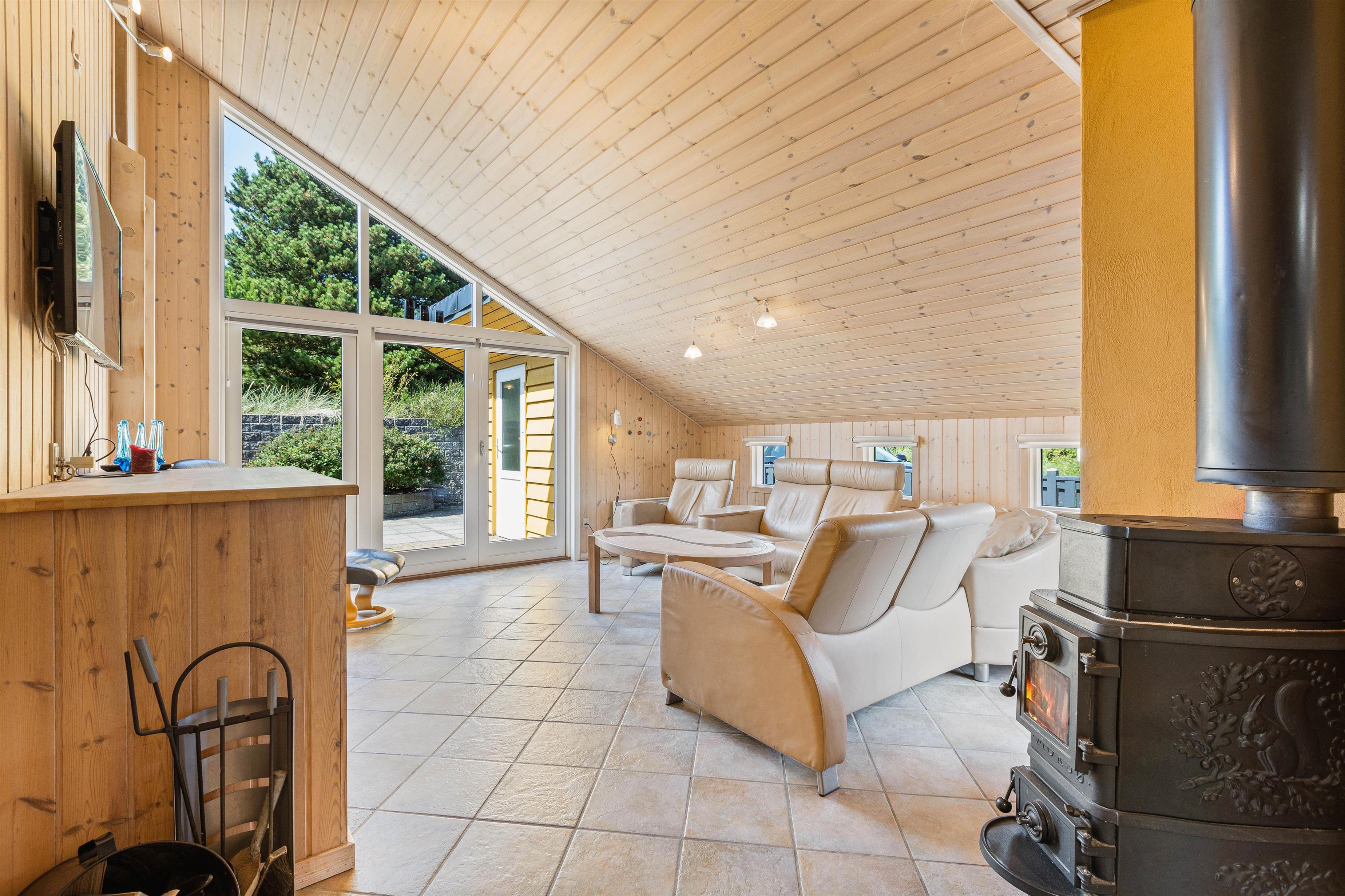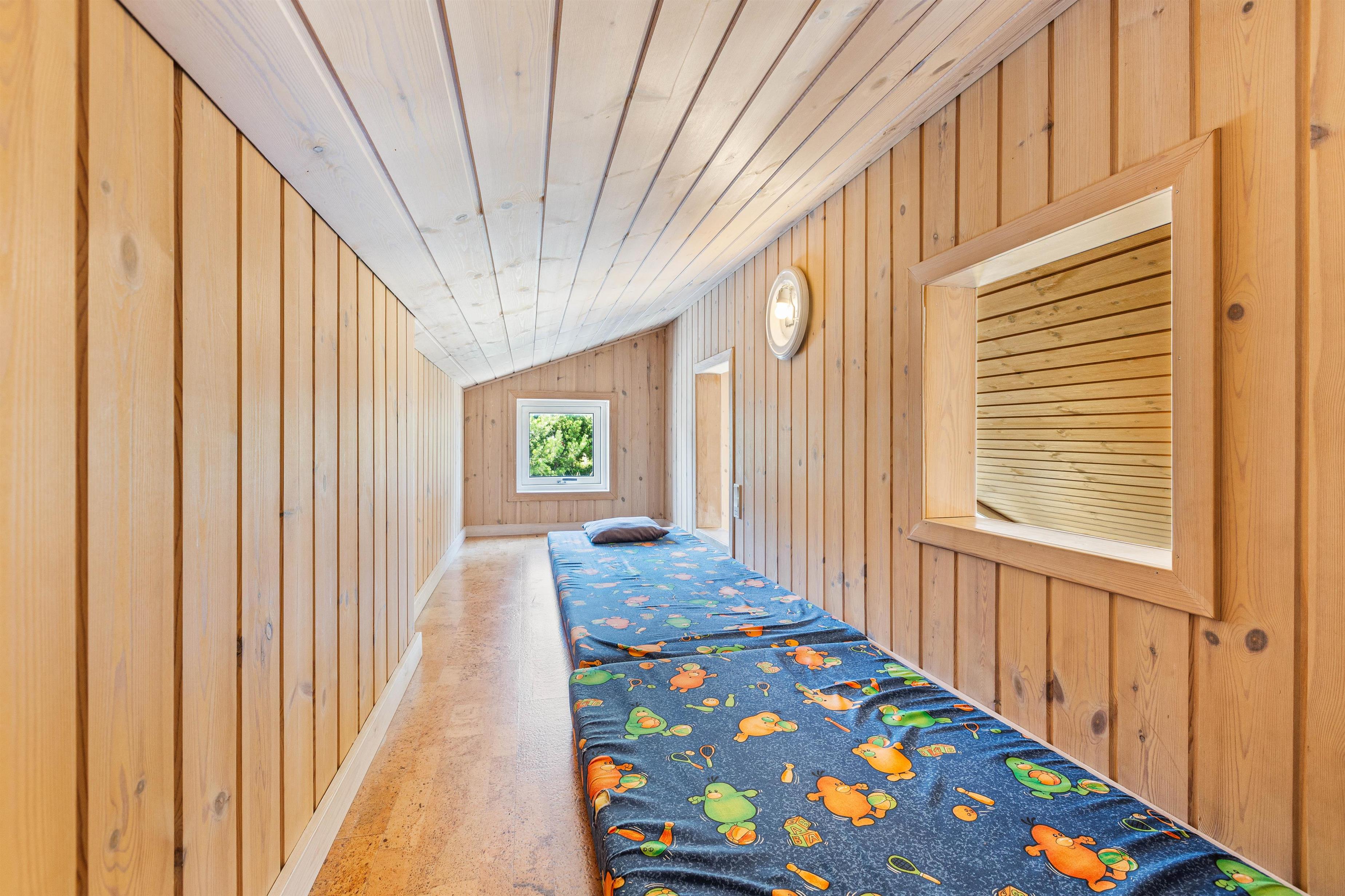 Her på Havvej 45 er det sjovt og nemt at trylle i det store køkken, det er indrettet med ovn og komfur i rigtige højder og generelt gode gennemtænkte løsninger. Imens de voksne hygger i stuen med at tænde op i brændeovnen og måske ser lidt fjernsyn og slapper af i de smarte, bekvemme lædermøbler, så kan børnene og de barnlige sjæle smutte over til spil, sjov og hygge i det lille opholds-/aktivitetsrum med bordfodbold og dart. Her behøver ingen at kede sig.