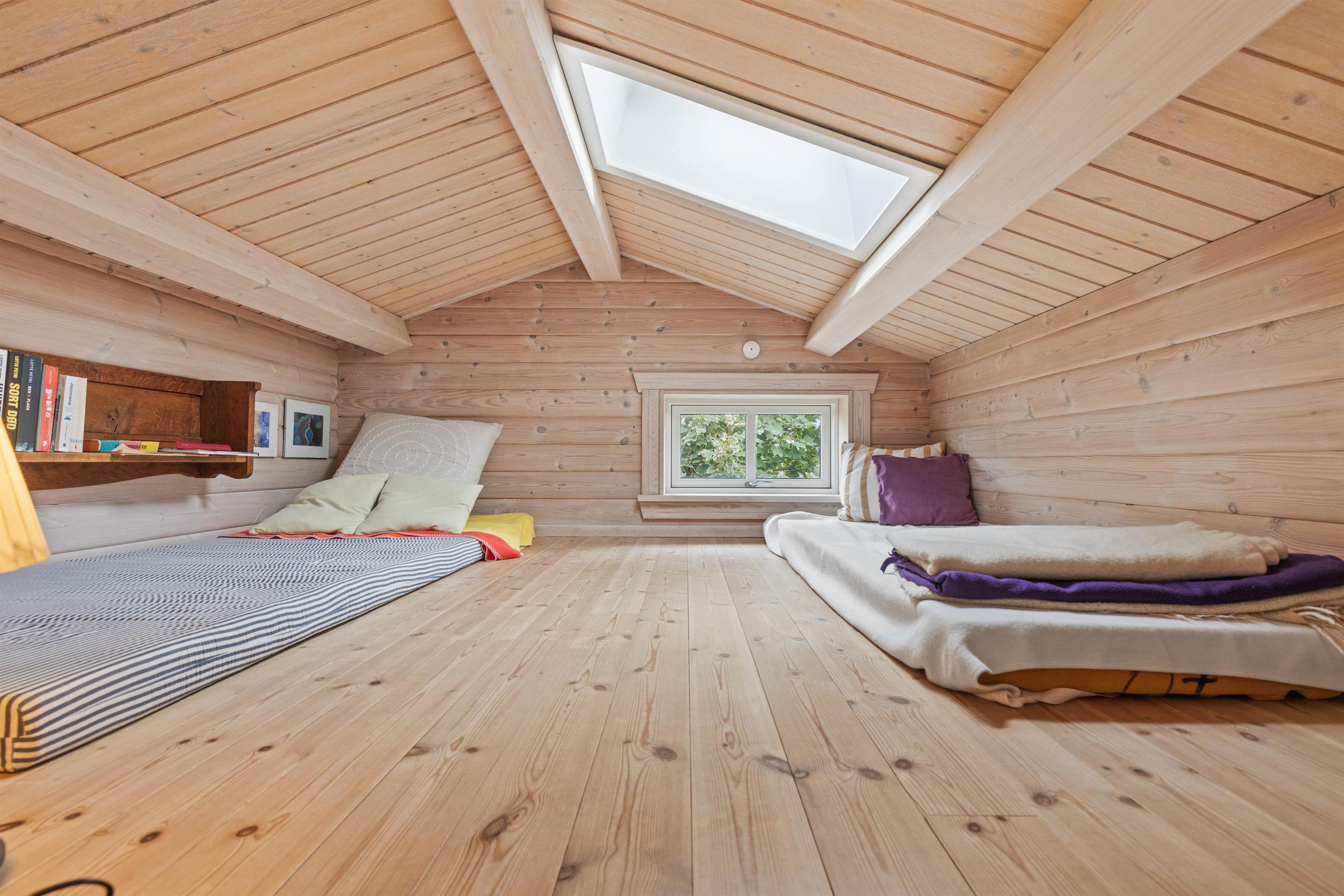 I sommerhuset er der 2 soveværelser, et med en dobbeltseng og et med to enkeltsenge. Sommerhuset har 1 badeværelse med gulvvarme. Derudover har sommerhuset en hyggelig hems, hvor børnene kan lege, mens forældrene i ro og mag kan nyde en god film eller et godt glas vin i stuen.
