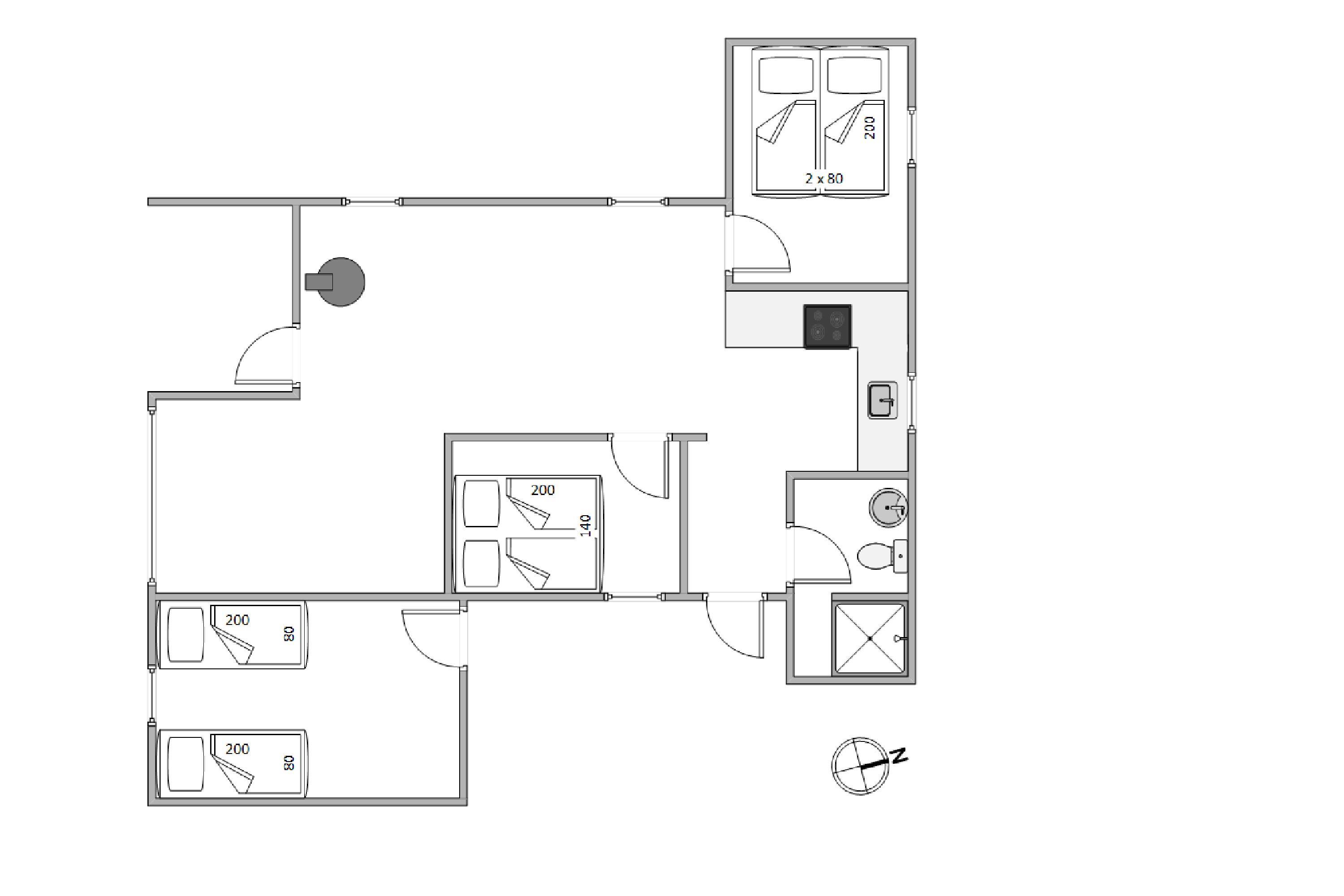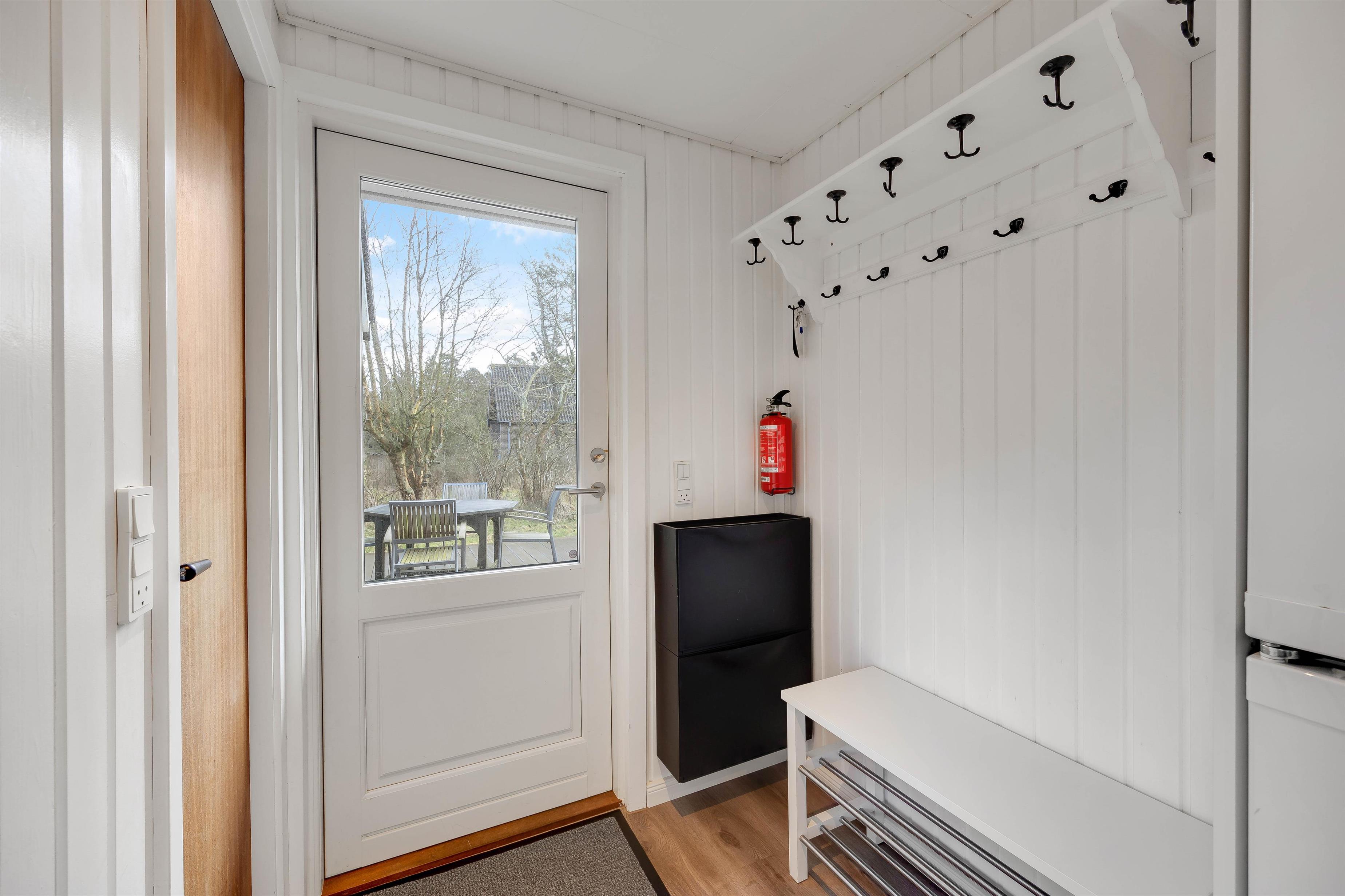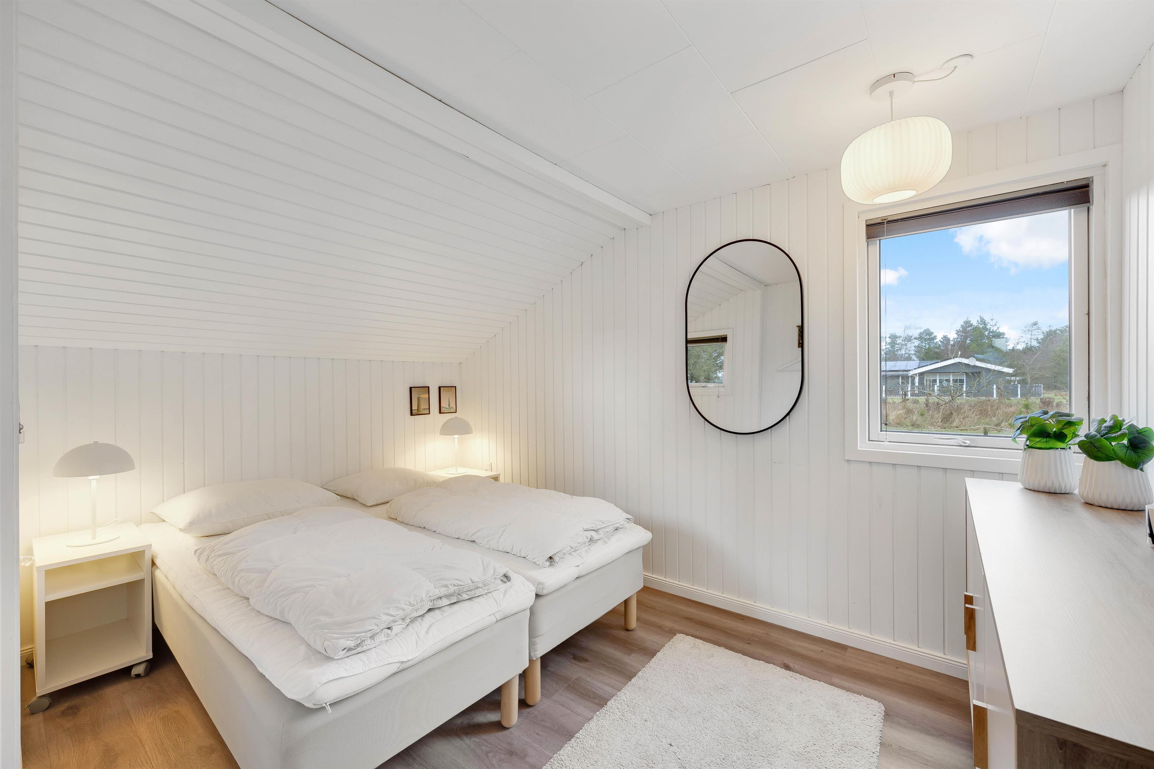 Badeværelset er ikke stort, men lyst og praktisk med ”walk-in” brusekabine. De 3 soverum er indrettet med gode bokssenge. Fra stuen kommer man ind i et soveværelse med en gæsteseng og ekstraværelset har indgang udefra.