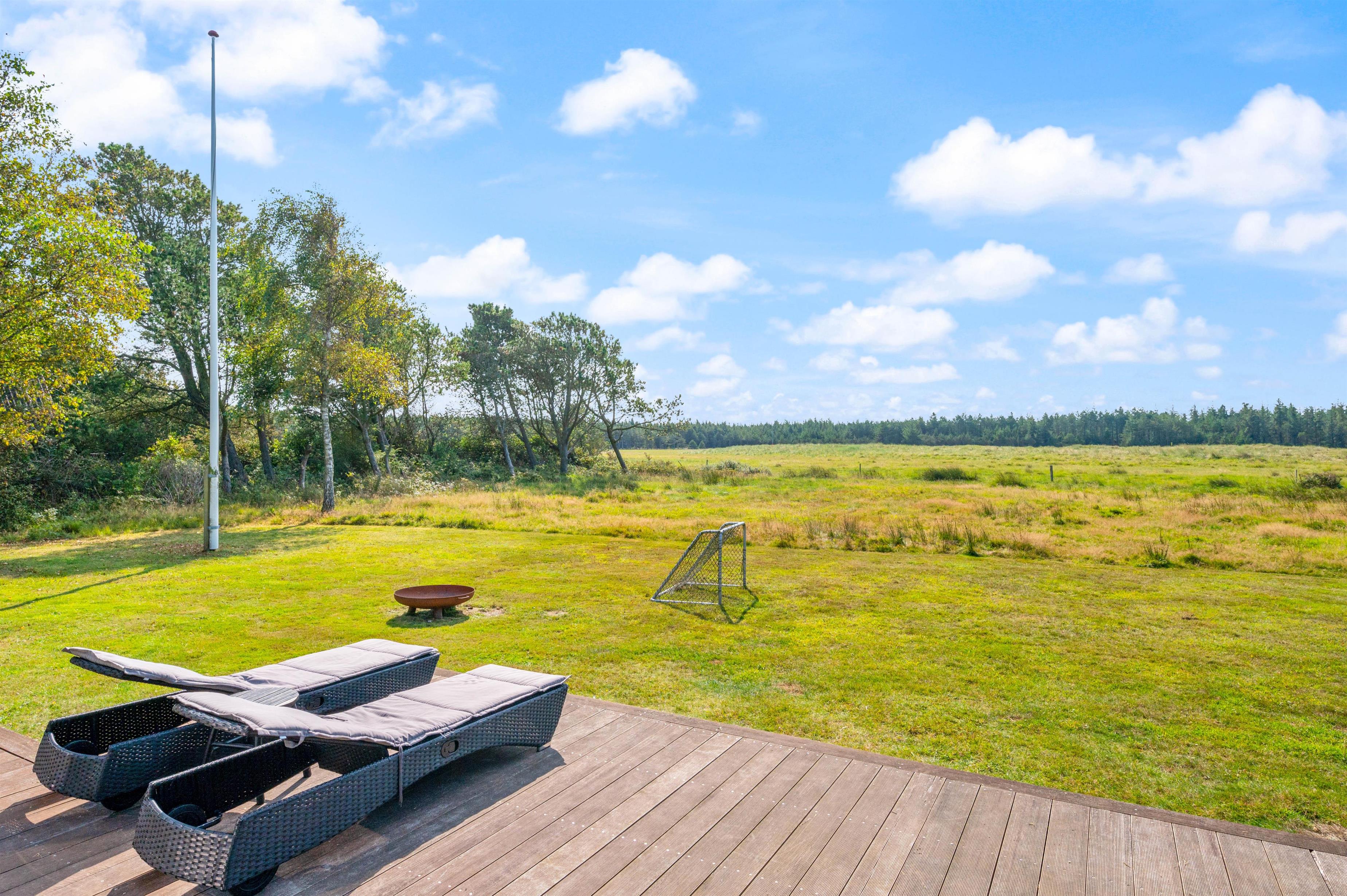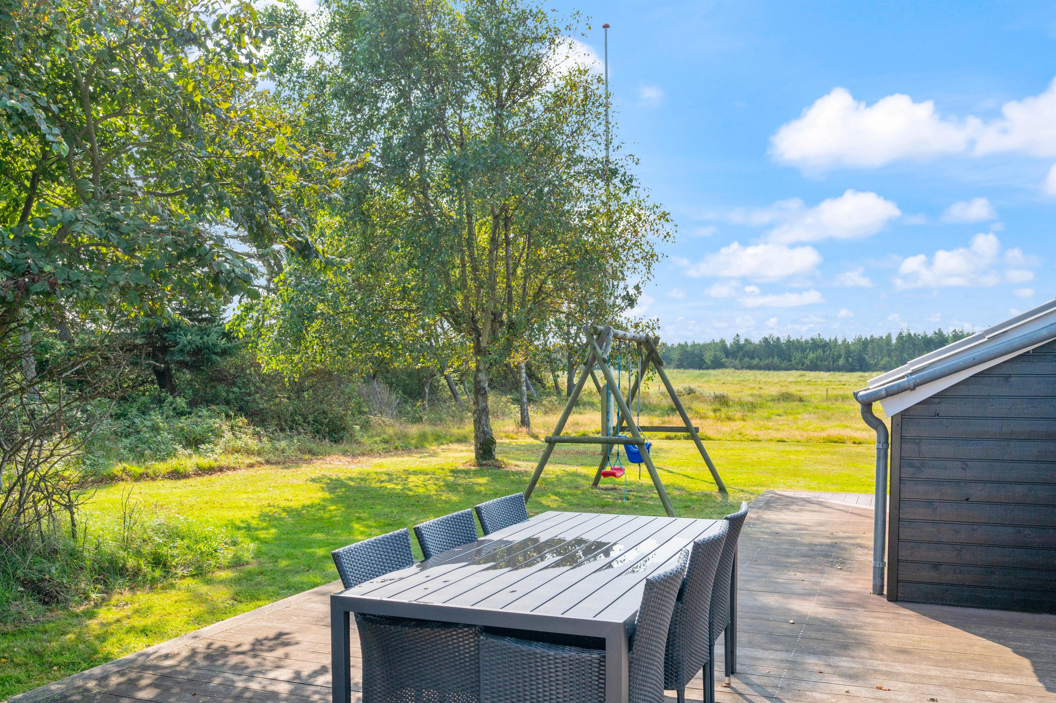 Dette ikke-rygerhus ligger i et skønt område i Vejers. Gulspurvevej 17 ligger som sidste hus ud mod enge og skovområde. Lad dagen gå på hæld med en drink på husets terrasse og nyd stilheden når mosekonen begynder at brygge ved den nærliggende sø.
