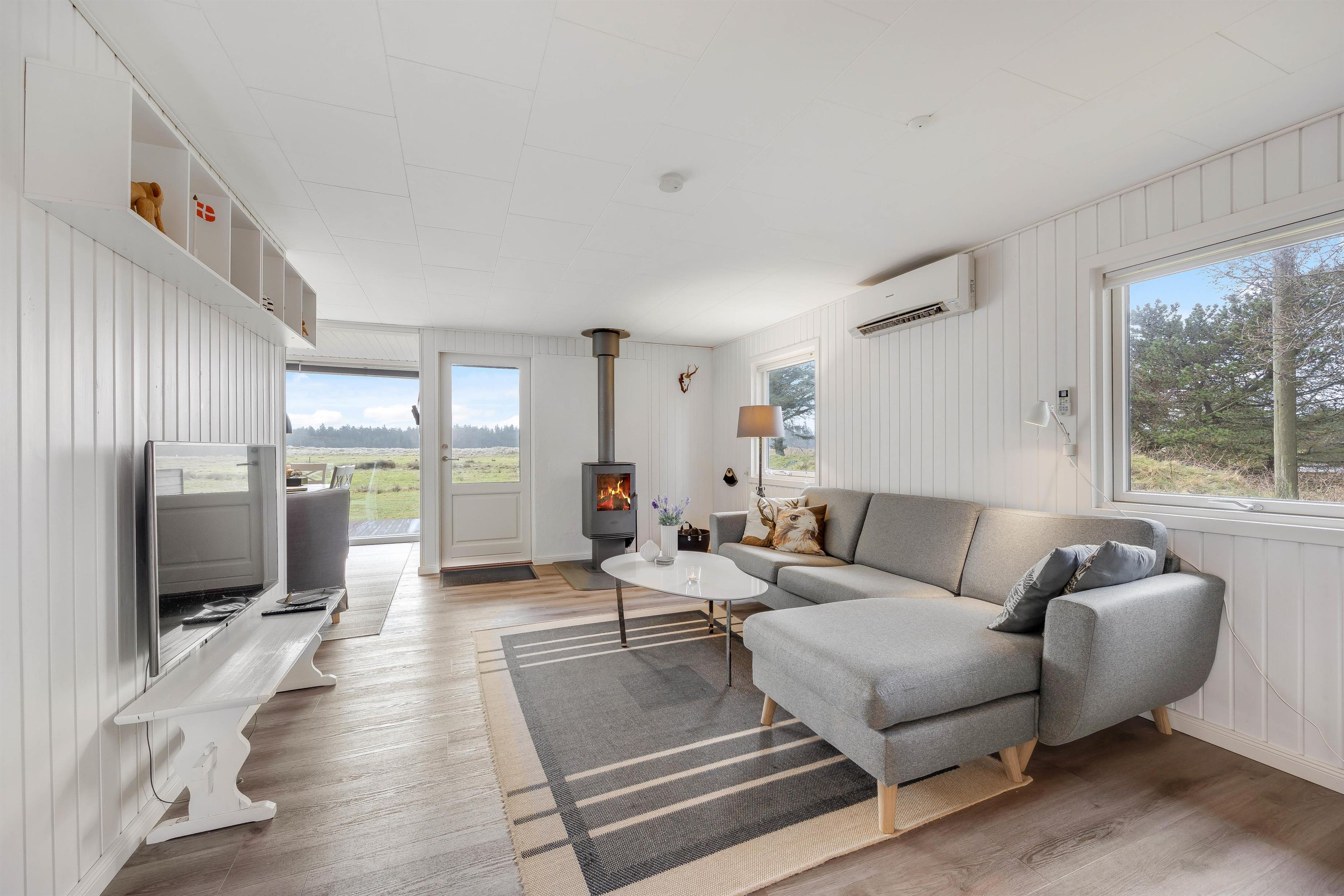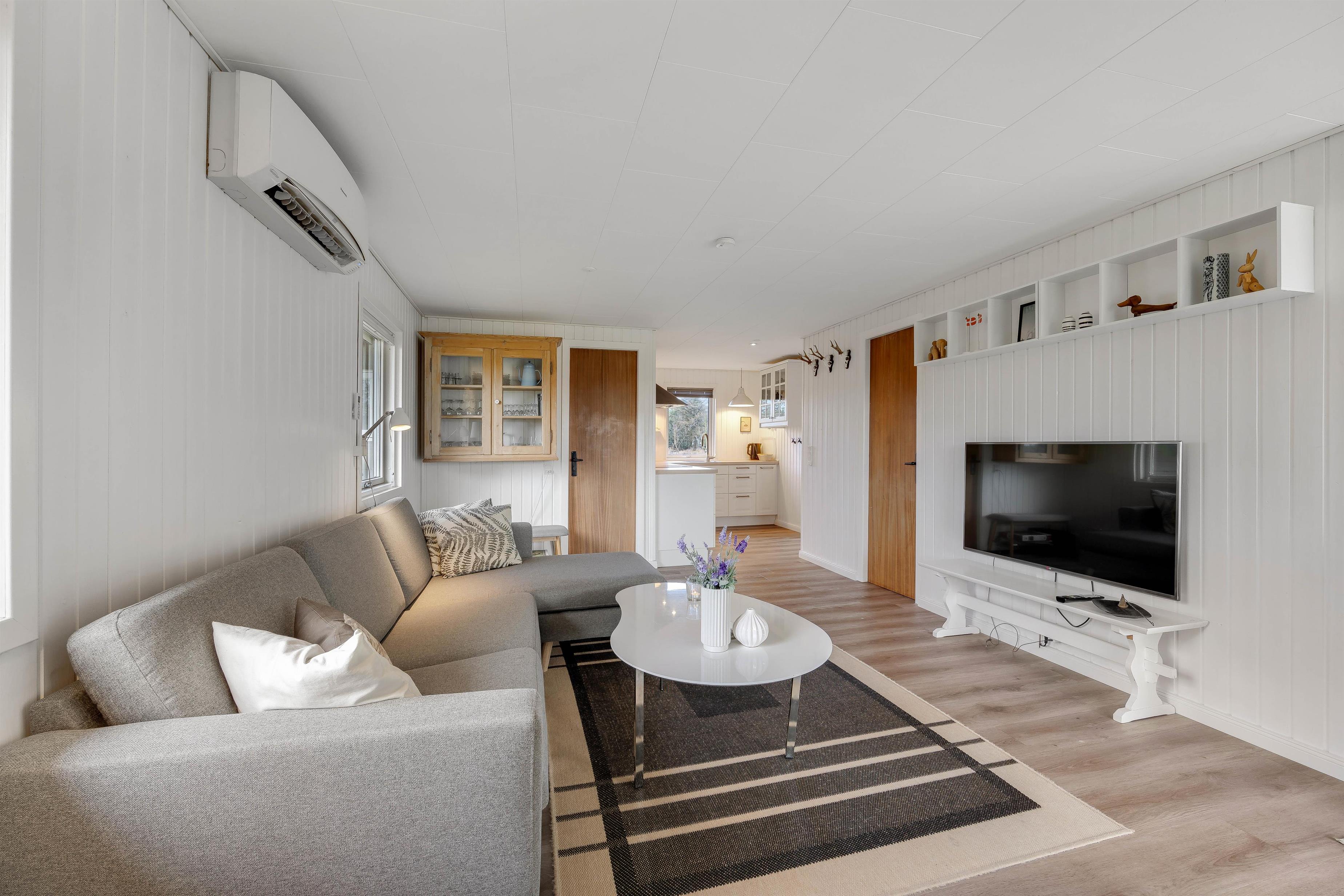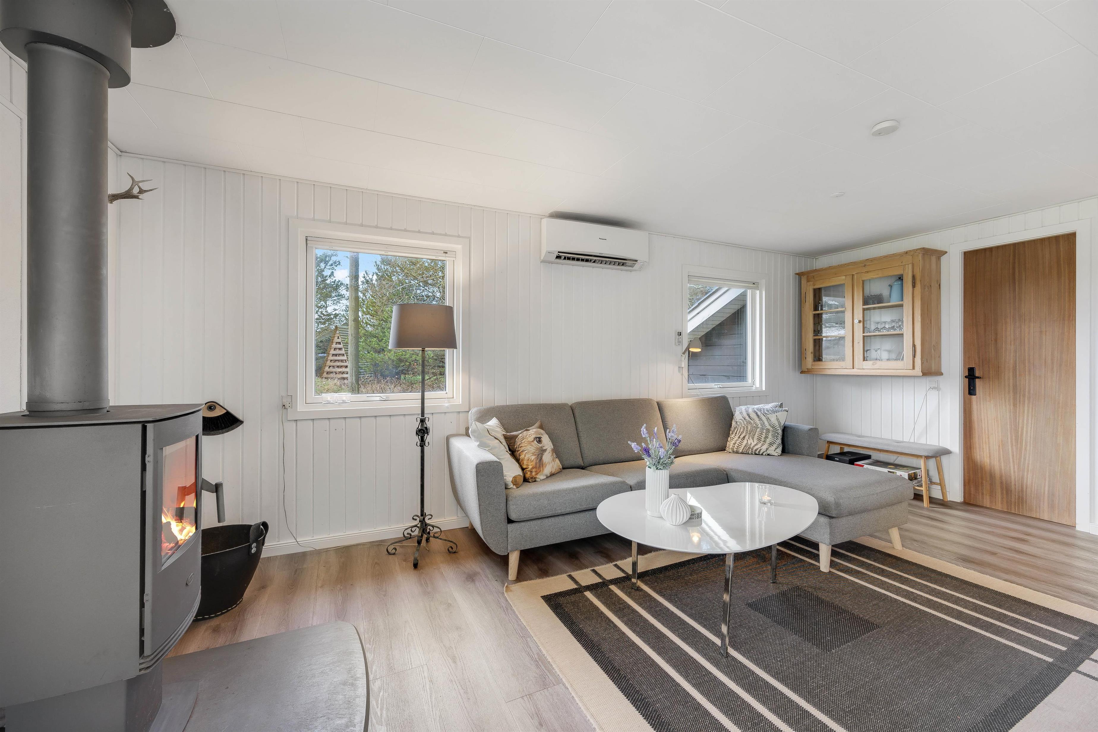 Et hus med udsigt – her er det! I dette charmerende sommerhus, med god plads til 4 personer, bor I rigtigt smukt, lyst og alligevel hyggeligt med bekvem lænestol, sofa, stort fjernsyn, brændeovn og meget mere.