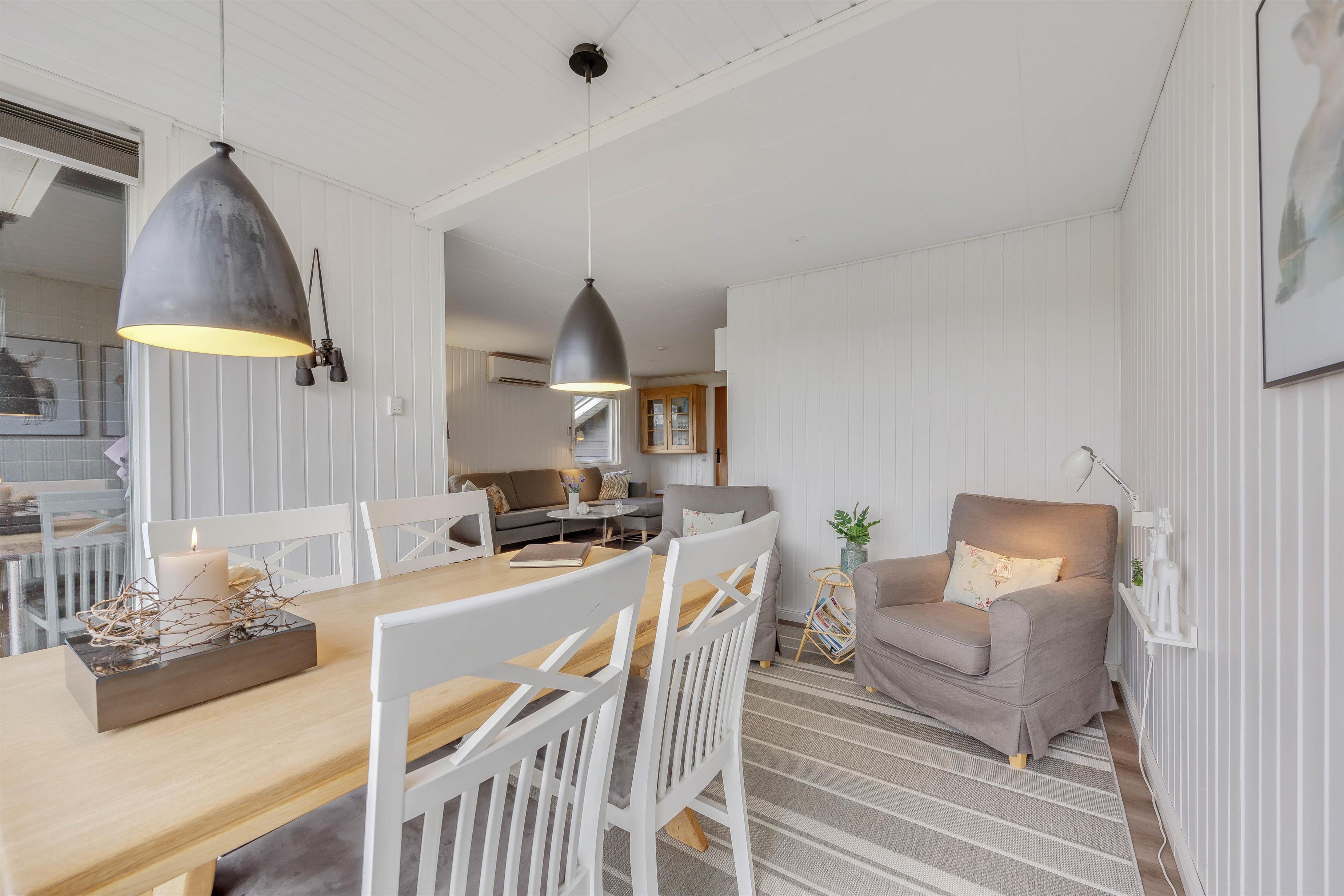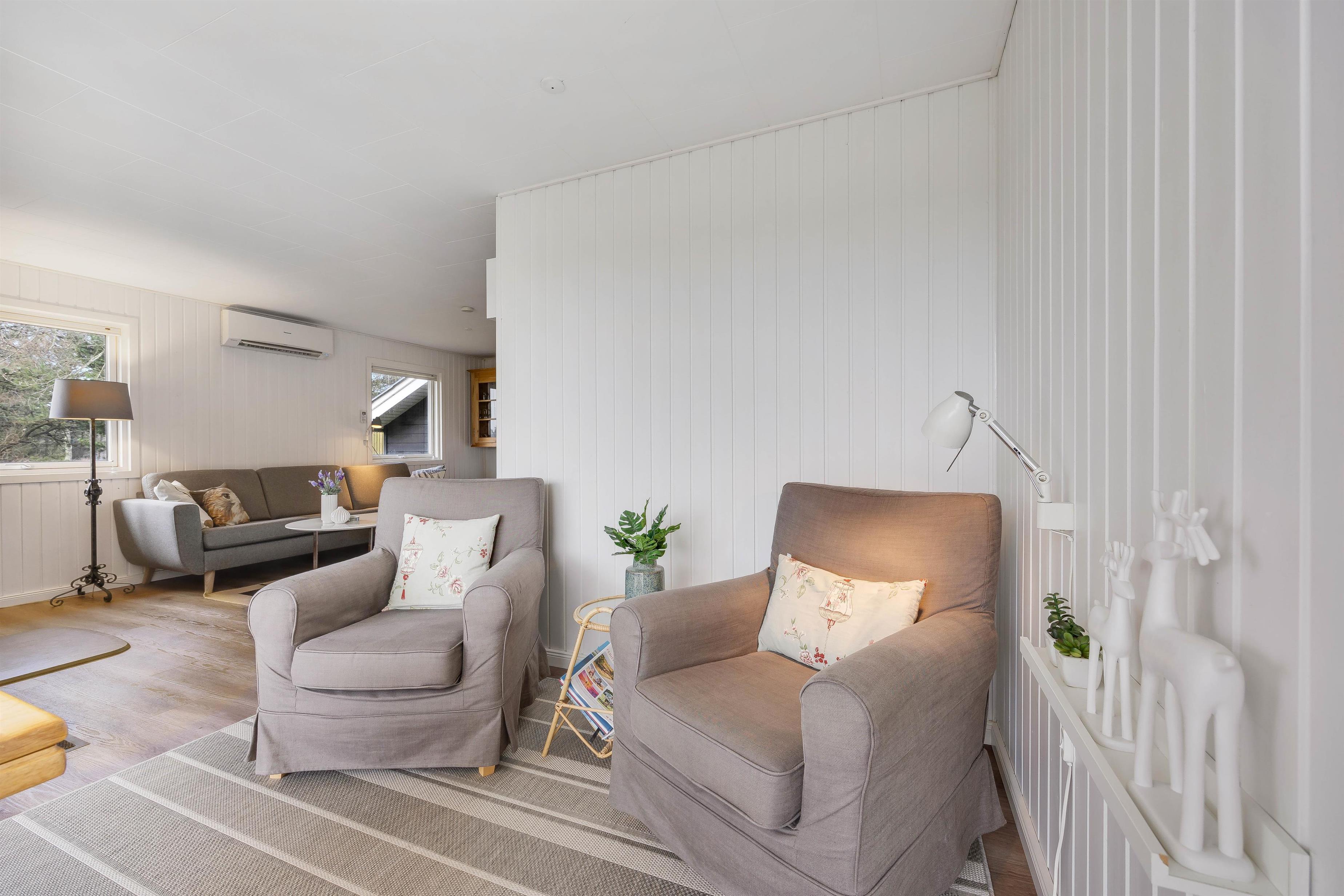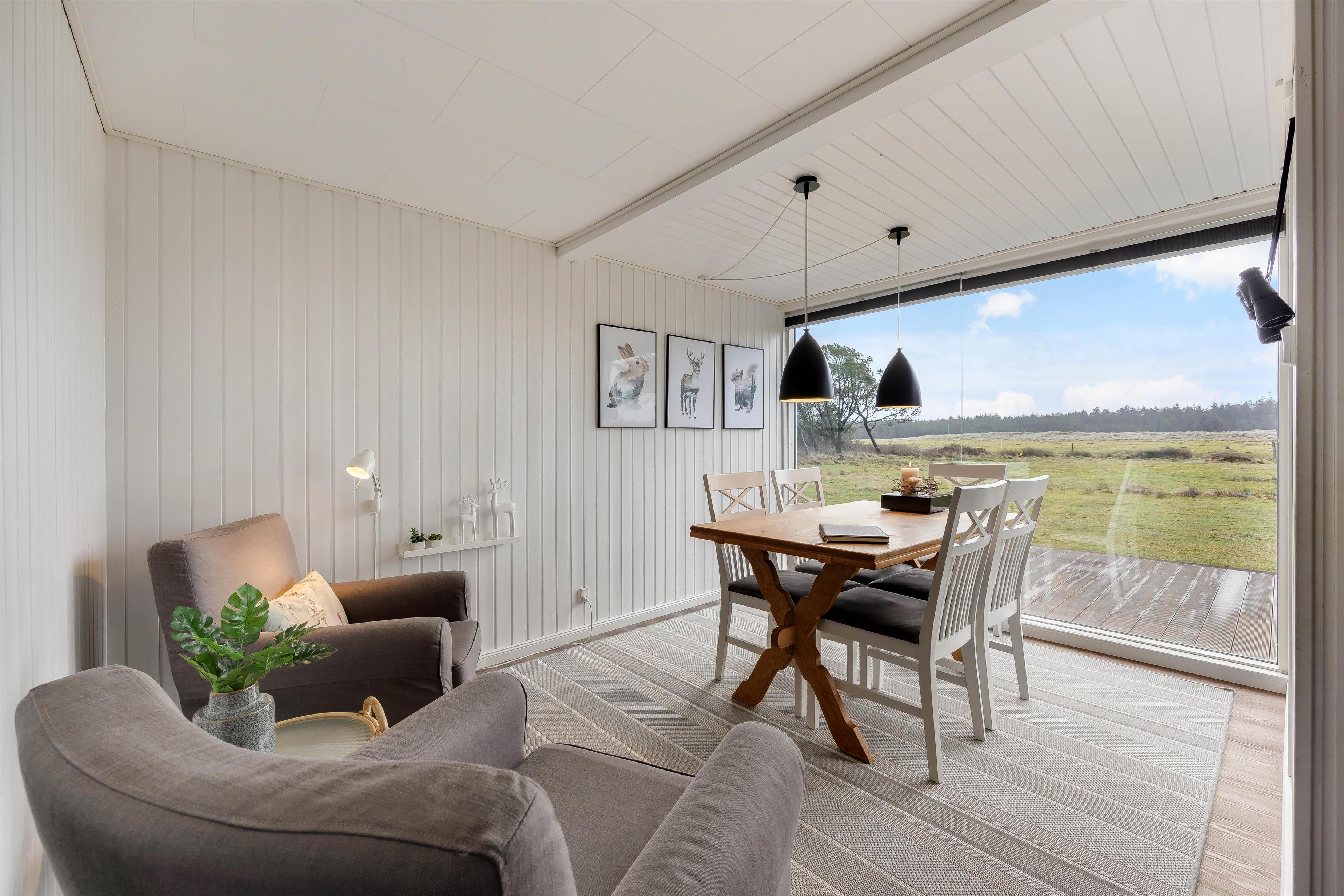 Et hus med udsigt – her er det! I dette charmerende sommerhus, med god plads til 4 personer, bor I rigtigt smukt, lyst og alligevel hyggeligt med bekvem lænestol, sofa, stort fjernsyn, brændeovn og meget mere.