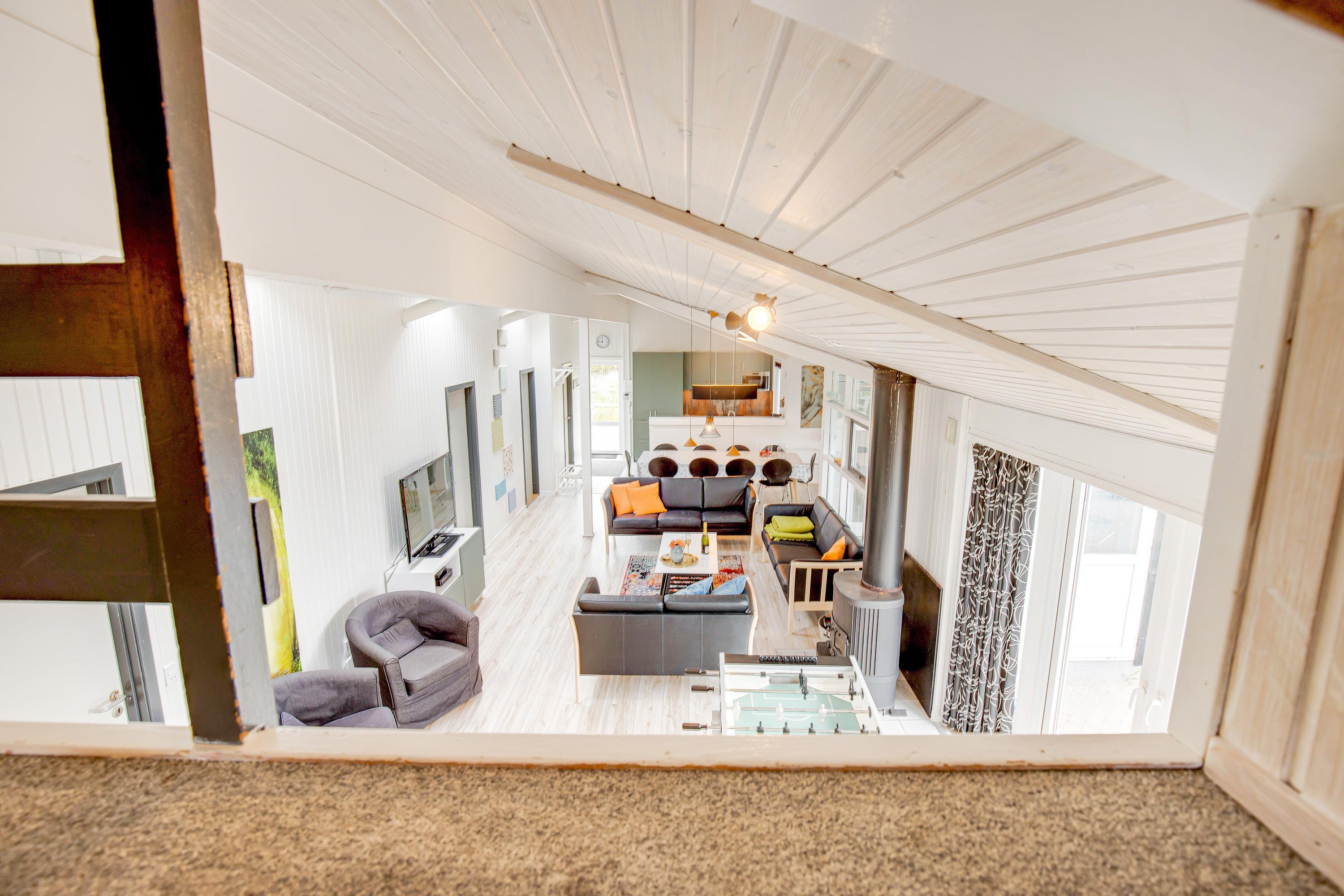 Hjertet i feriehuset er uden tvivl alrummet, hvor køkken, stue og spiseafdeling ligger i åben forbindelse. Her kan I tilbringe mange hyggelige stunder i hinandens selskab, selv når nogle står for madlavningen i køkkenet, og andre slapper af i stuen.