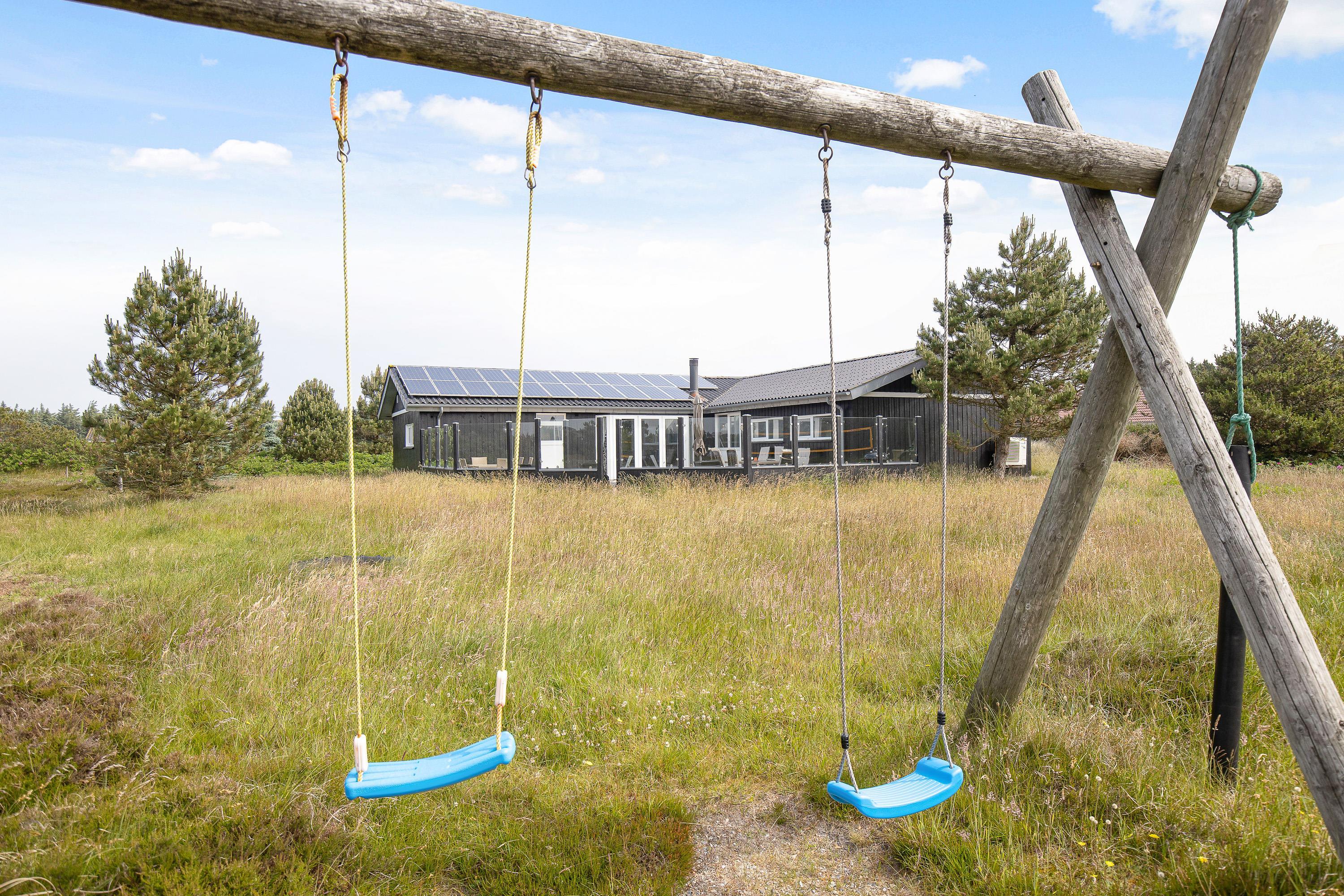 I haven er der en sandkasse og et gyngestativ, som uden tvivl kommer til at være et sikkert hit blandt børnene på ferien, hvor de kan lege dagen lang.