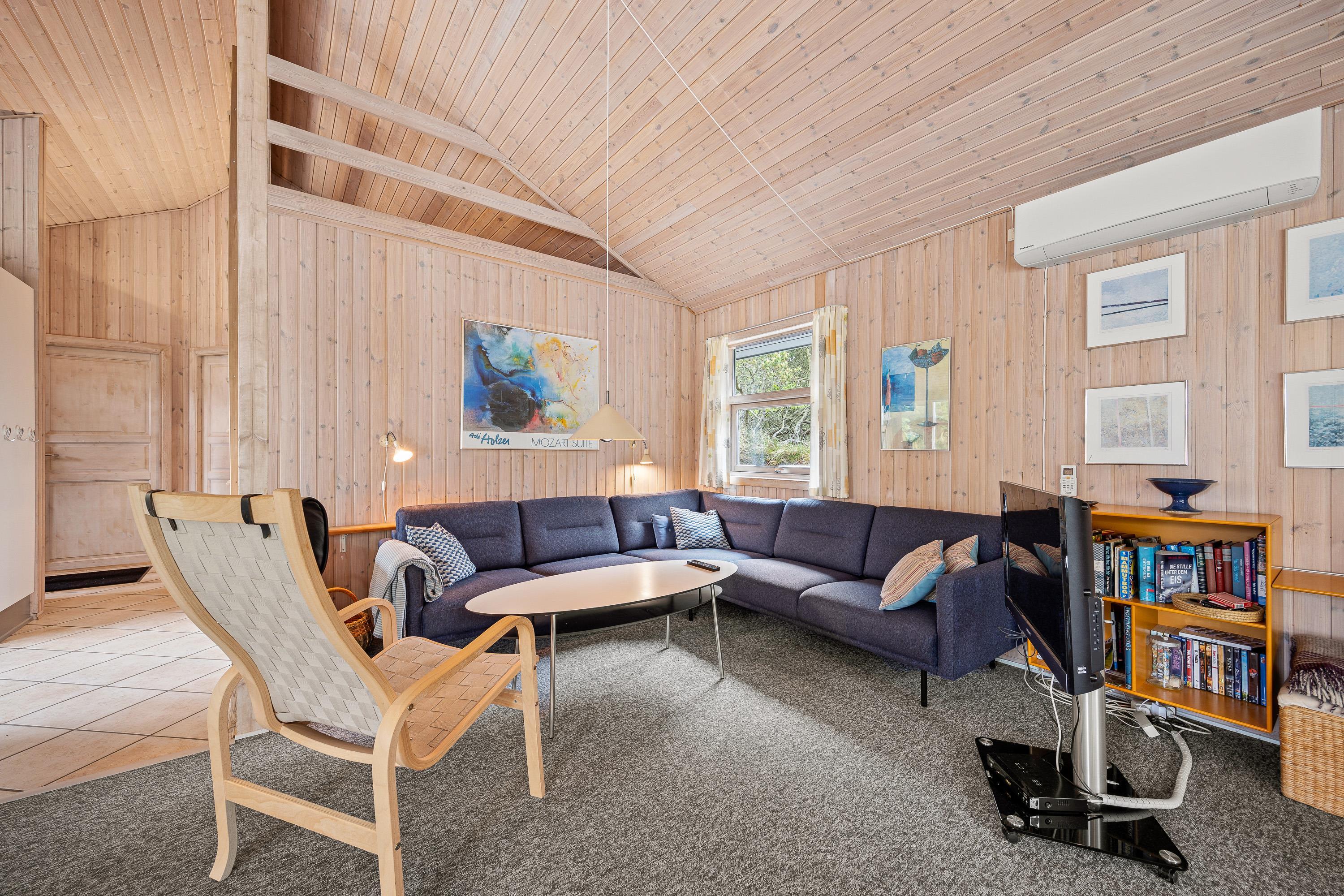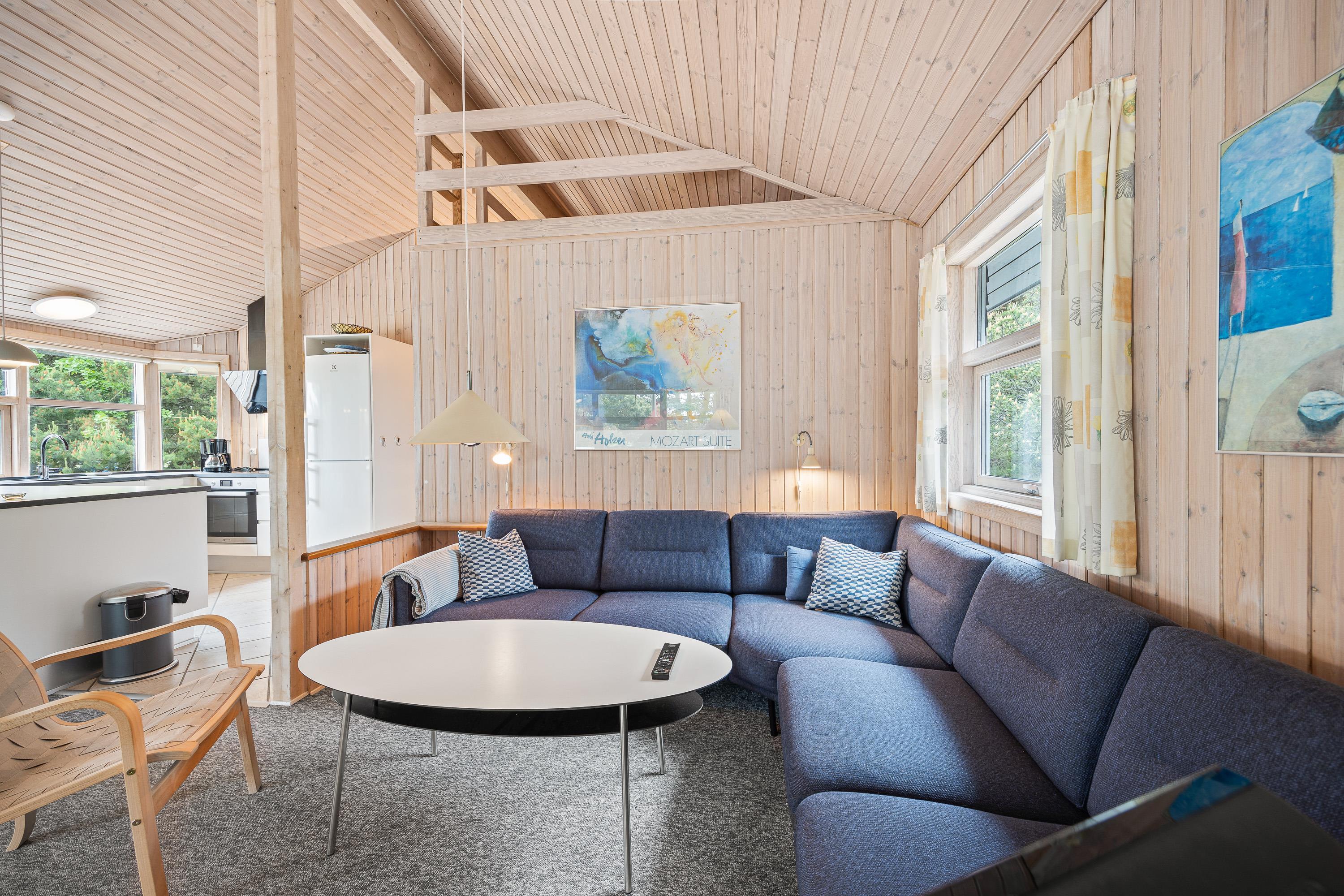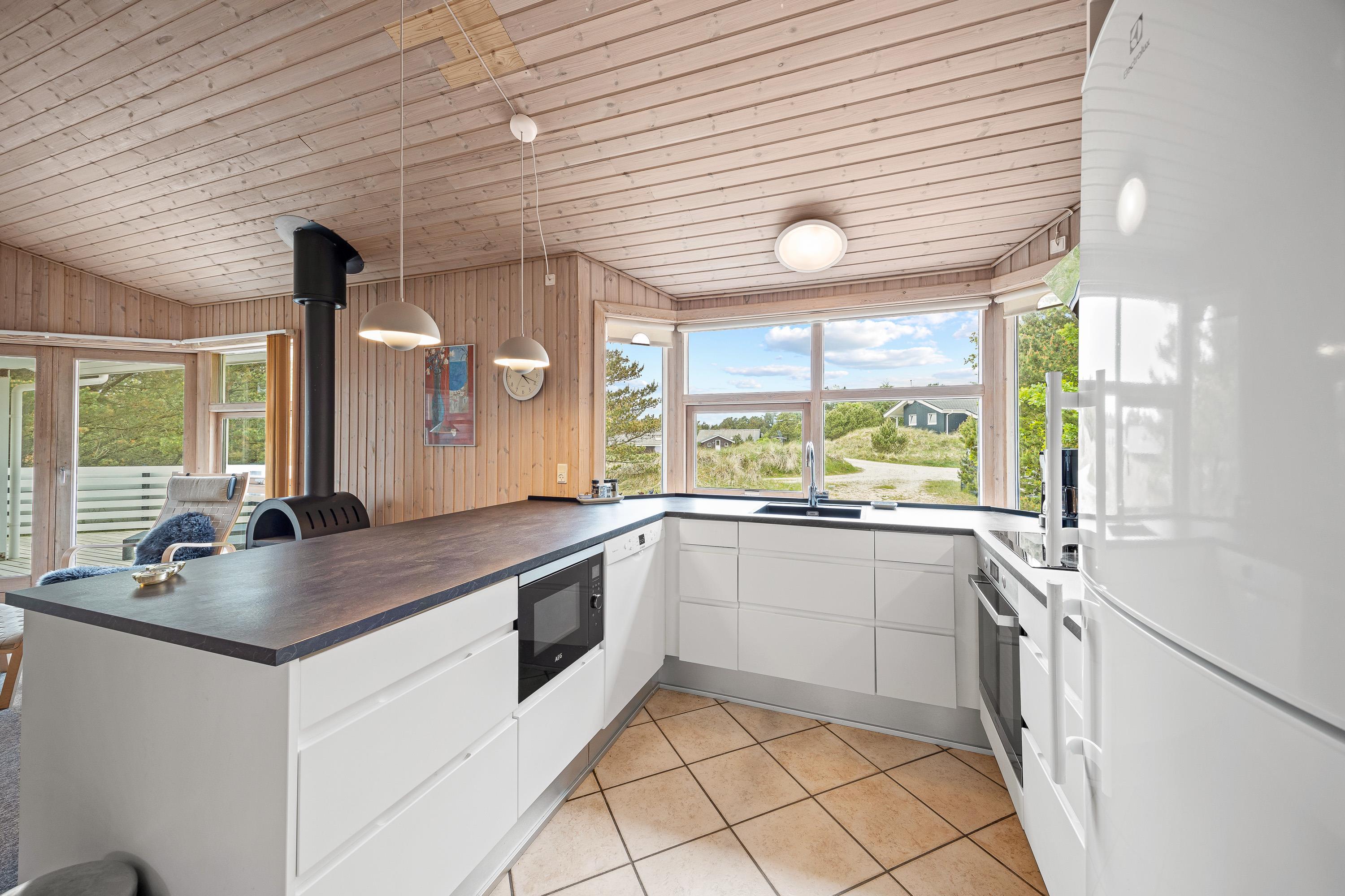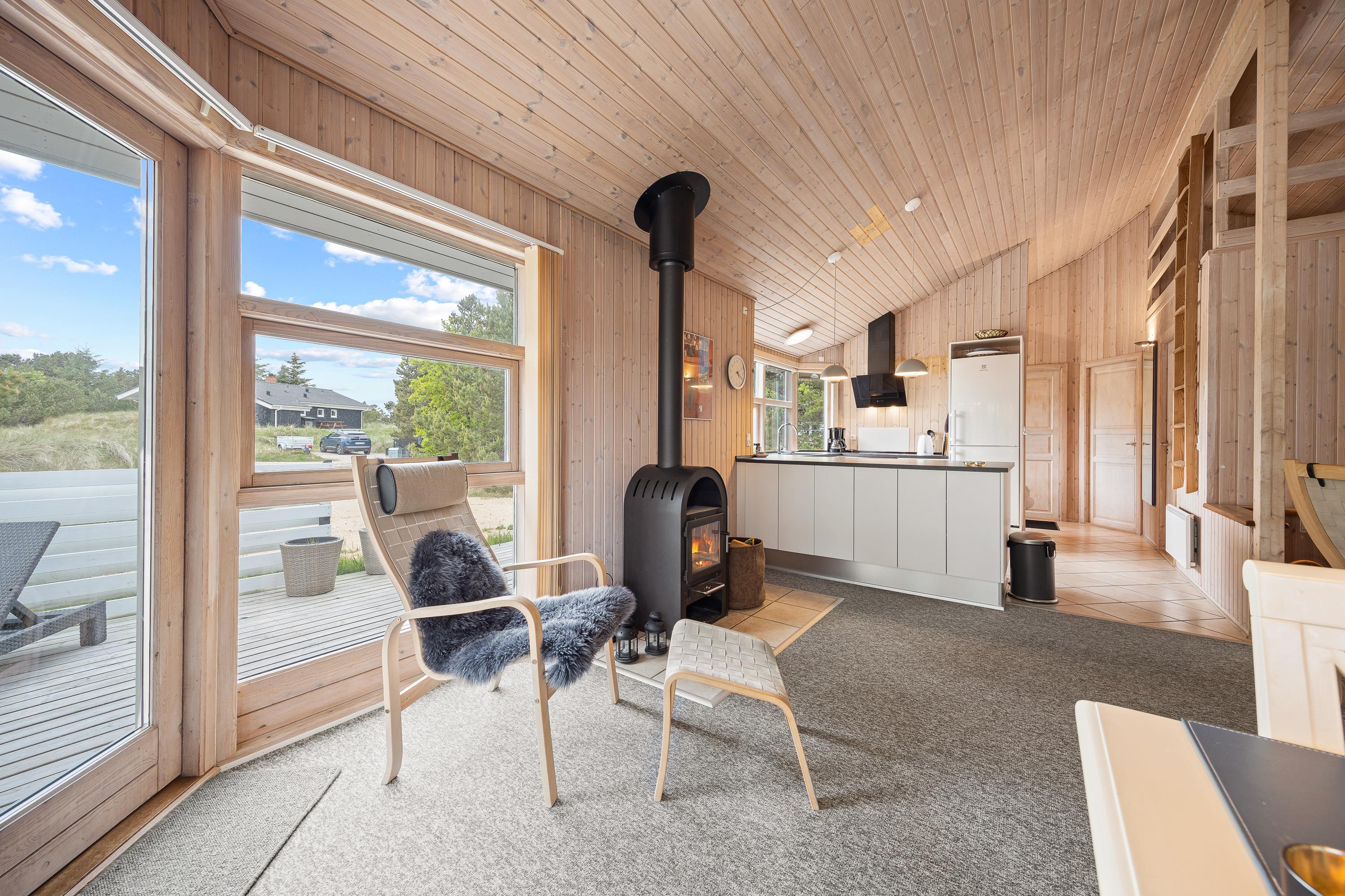 Feriehusets køkken, stue og spiseplads er forenet i alrummet, og her er der lagt op til mange hyggelige feriestunder for hele ferieflokken. I alrummet kan I sammen lave mad, spille spil og se film, mens brændeovnen sætter prikken over i’et med sine knitrende flammer i baggrunden.