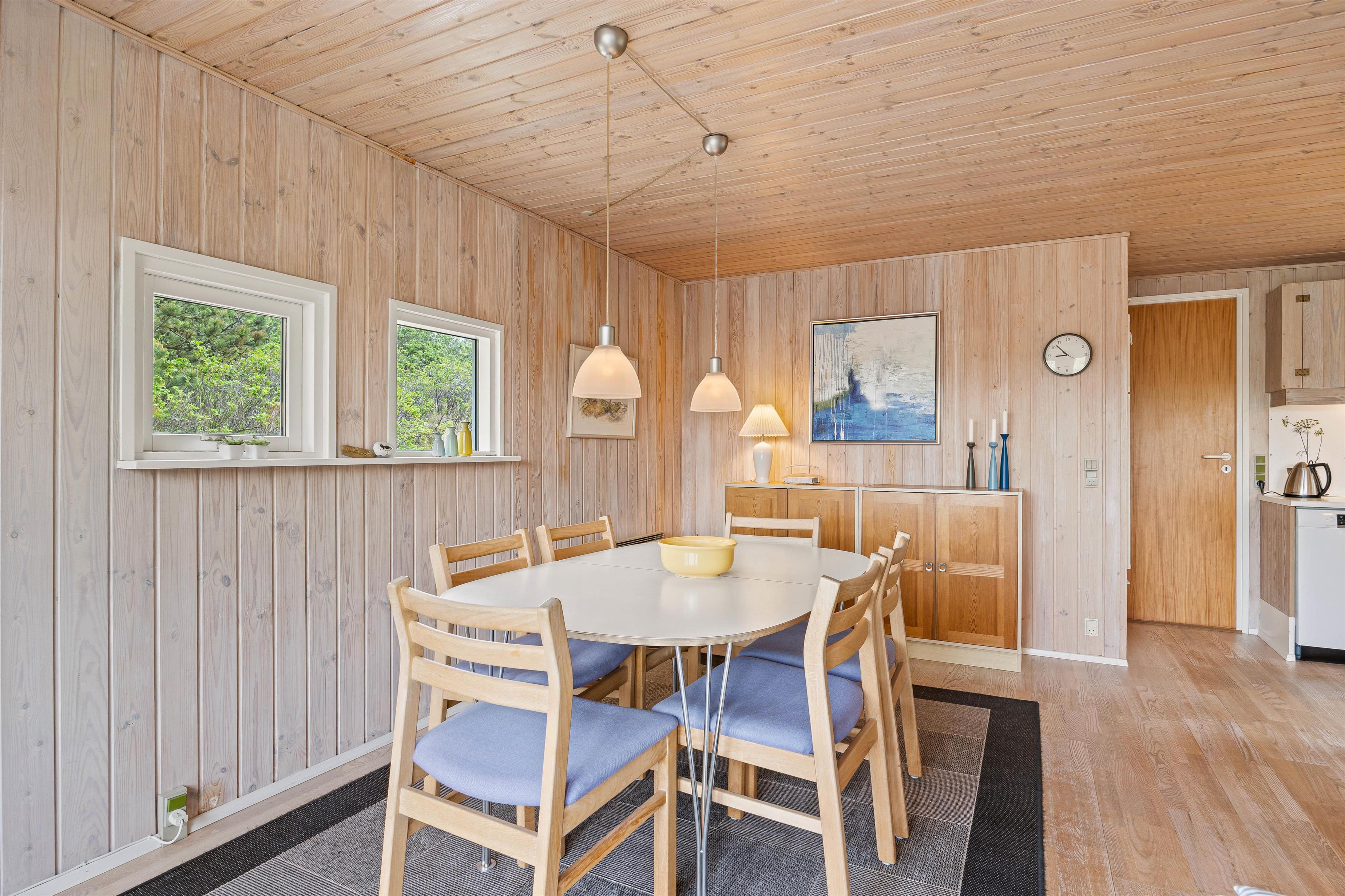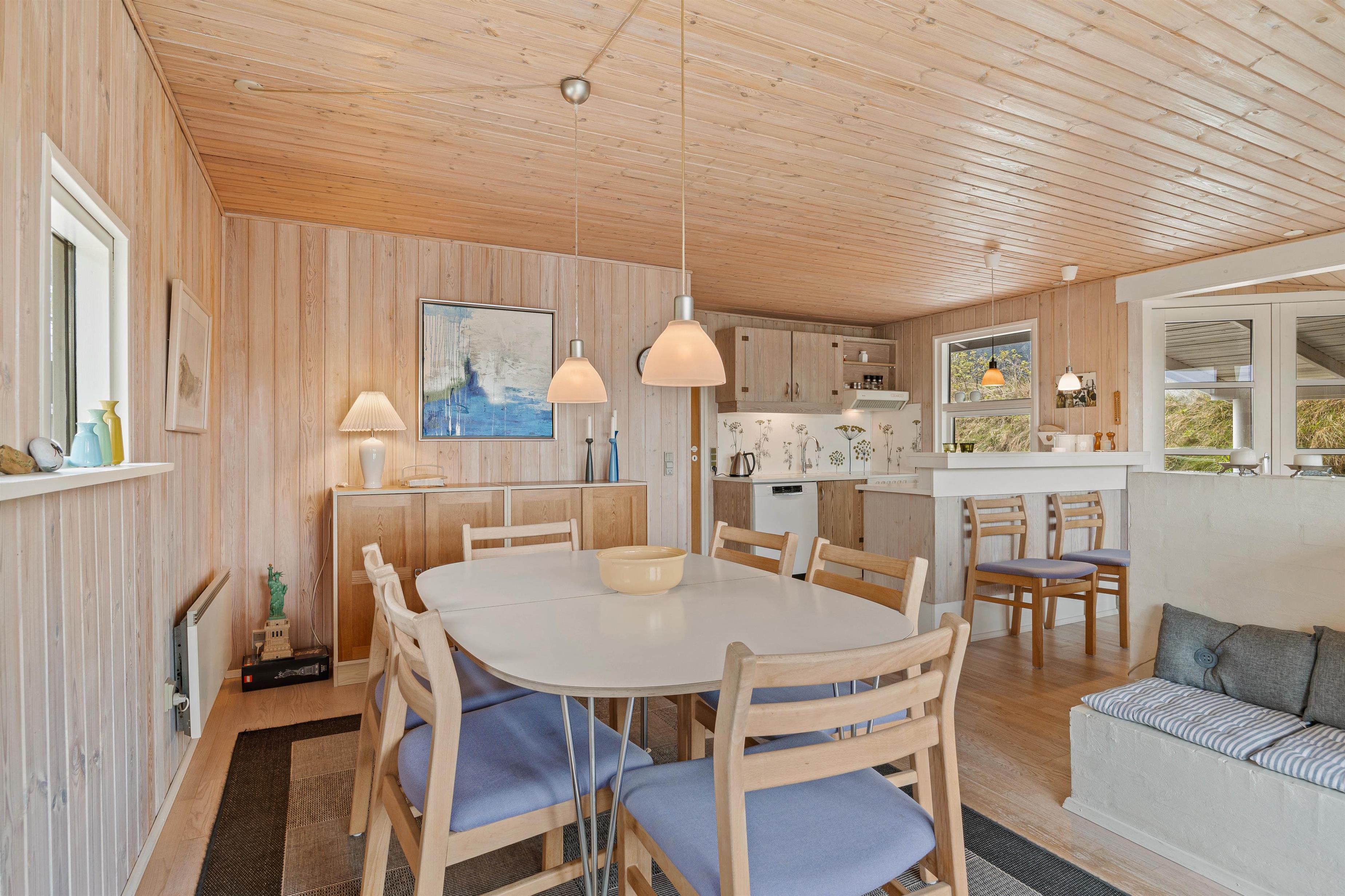 En familie på op til 6 personer kan her på Rossenvej 6 holde en skøn ferie i et lille, men dejligt feriehus i Vejers på vestkysten. Det traditionelle sommerhus er indrettet med en klassisk murstenspejs, opvaskemaskine og spabad. Feriehuset ligger for enden af en rolig sidevej kun 250 meter fra den smukke sandstrand på vestkysten.