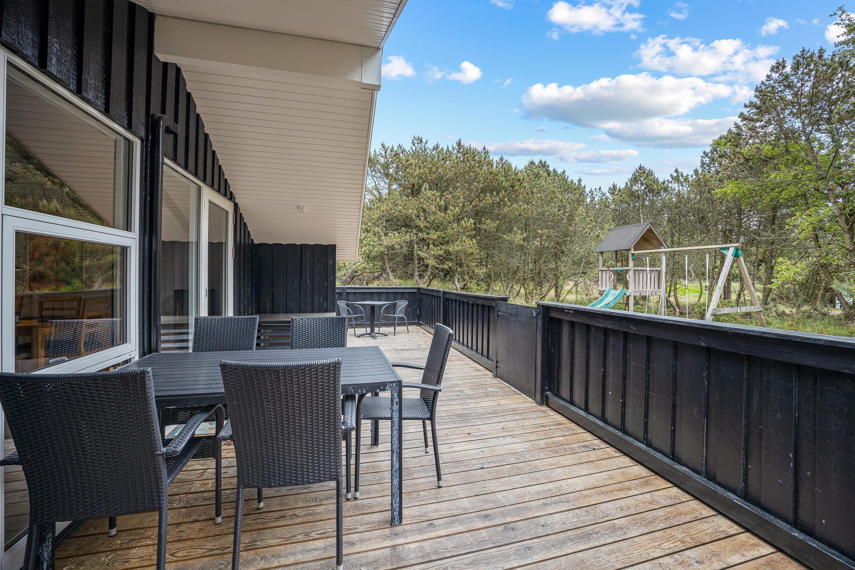 På den delvist overdækkede og lukkede terrasse finder alle en plads i solen, og der er tilmed mulighed for at søge ind i skyggen, hvis det bliver for varmt. Høje træer afskærmer grunden og sørger for god læ og ugenerede dage på terrassen.