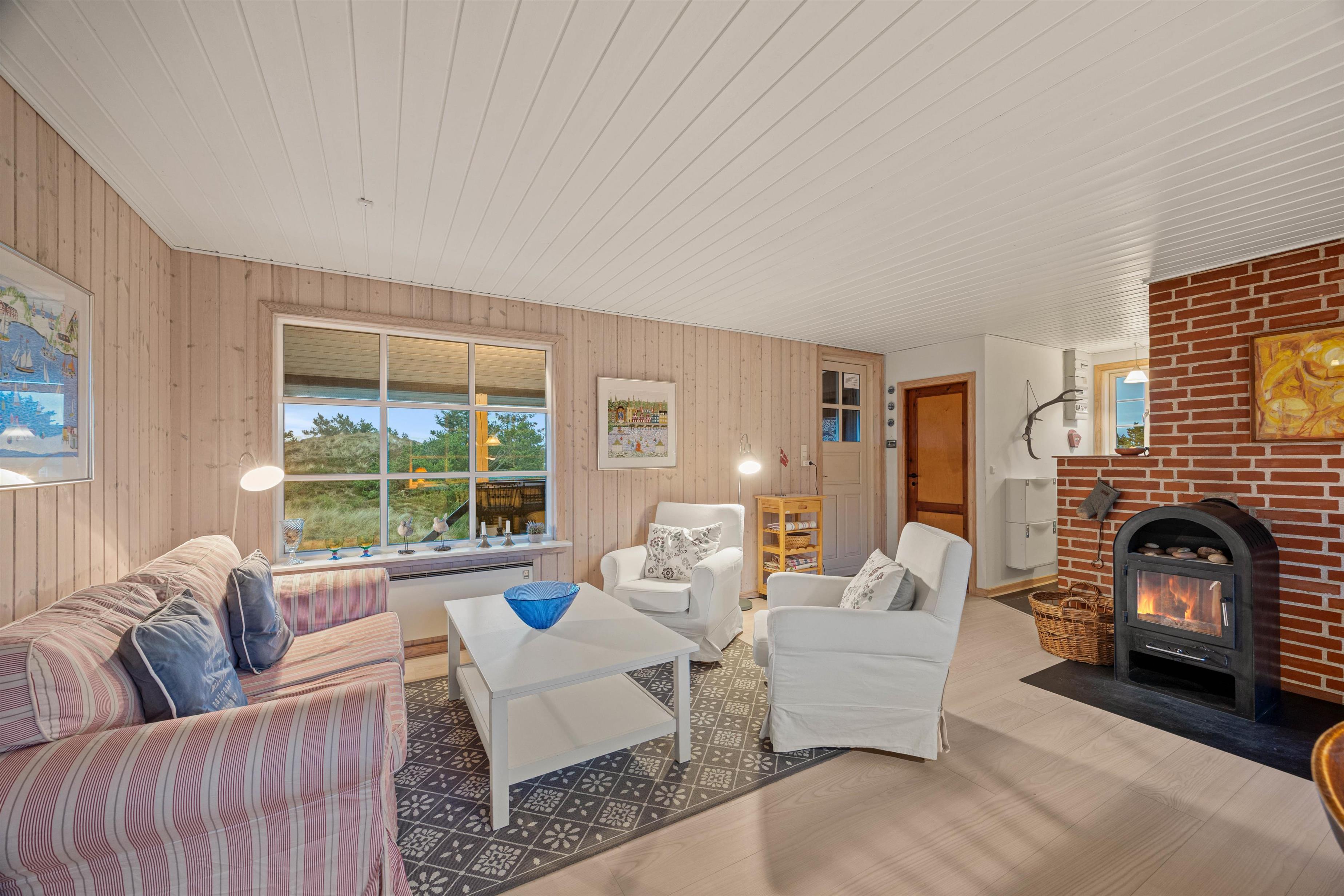 Sommerhuset på Havstien 2A ved Vejers Strand er beliggende i naturskønne omgivelser nær det brusende Vesterhav. Med hele 107 m2 og plads til 6 personer har I rigeligt med plads til at brede jer. Et dejligt feriehus med brændeovn – ideelt til ferie med familien eller vennerne.