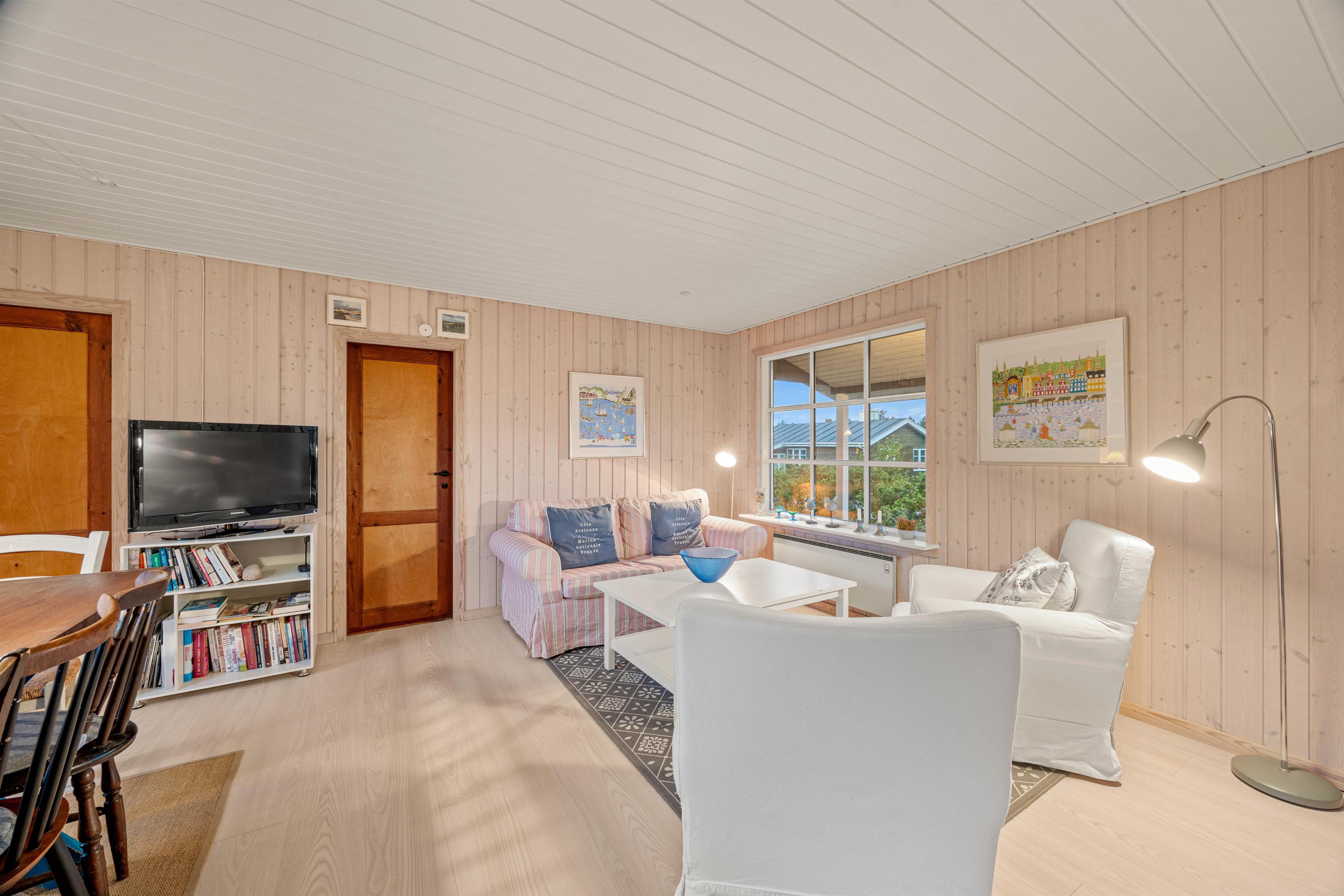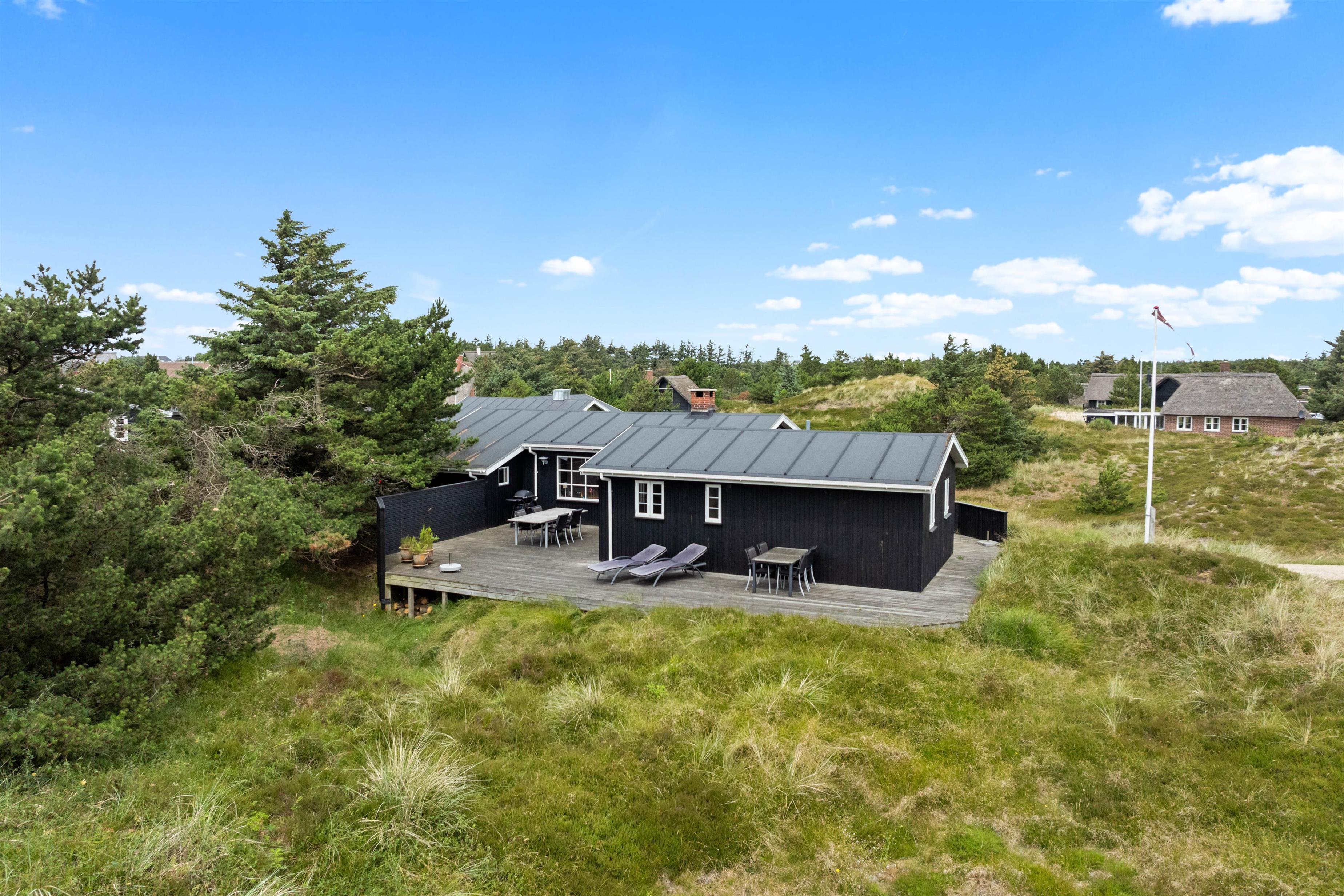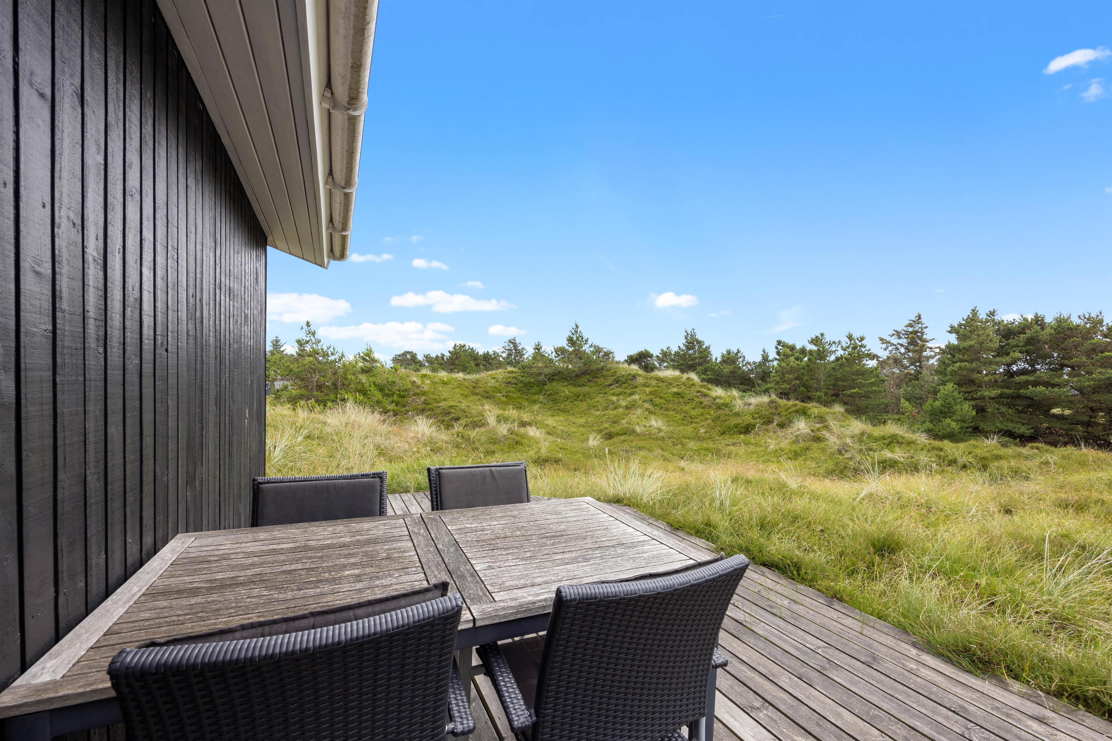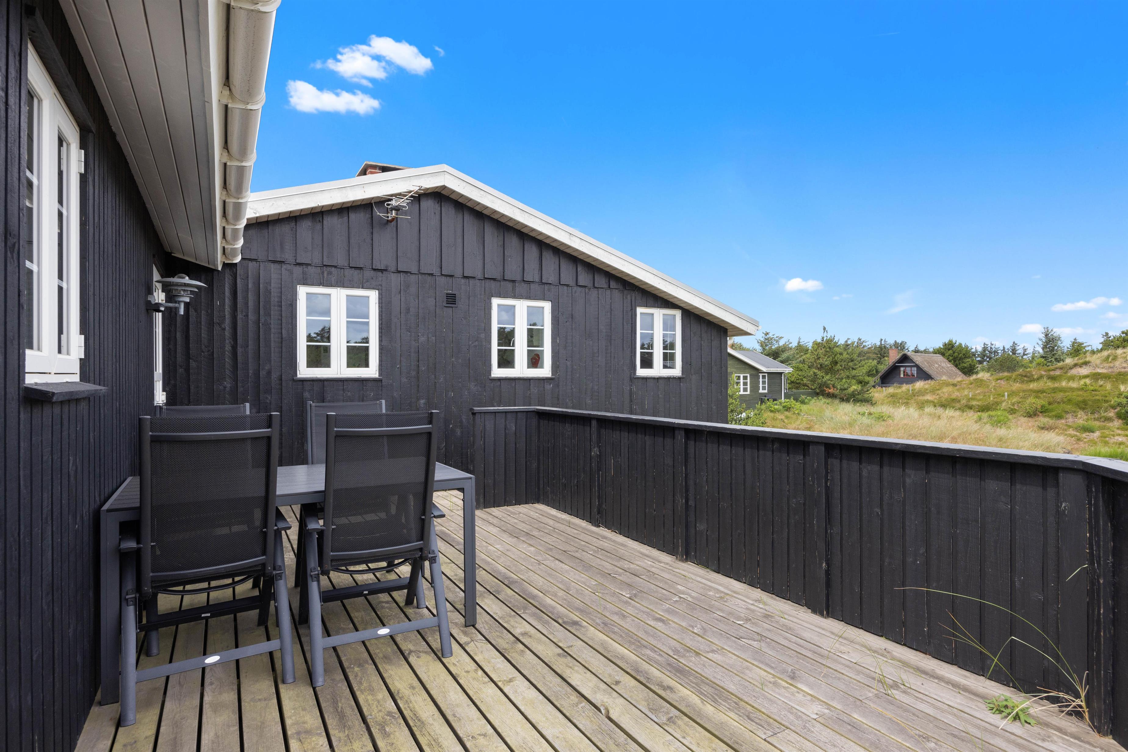 Også udenfor kan I nyde ferien; På den afskærmede terrasse står havemøbler og liggestole klar. Her kan I slappe af, læse bog og spille kort i solen. Om aftenen kan I tænde op i grillen, grille en steak og nyde den sammen med et godt glas rødvin. Fuldend aftenen på stranden, der ligger en kort gåtur herfra, hvor I kan opleve den maleriske solnedgang. Dyk ned i de blå bølger, gå en tur langs vandkanten, saml muslingeskaller eller byg sandslotte med børnene – mulighederne er mange. Stranden er også bilvenlig, så det er muligt at køre helt ned på stranden. Vandet finder I små 500 meter fra jeres ferieadresse.