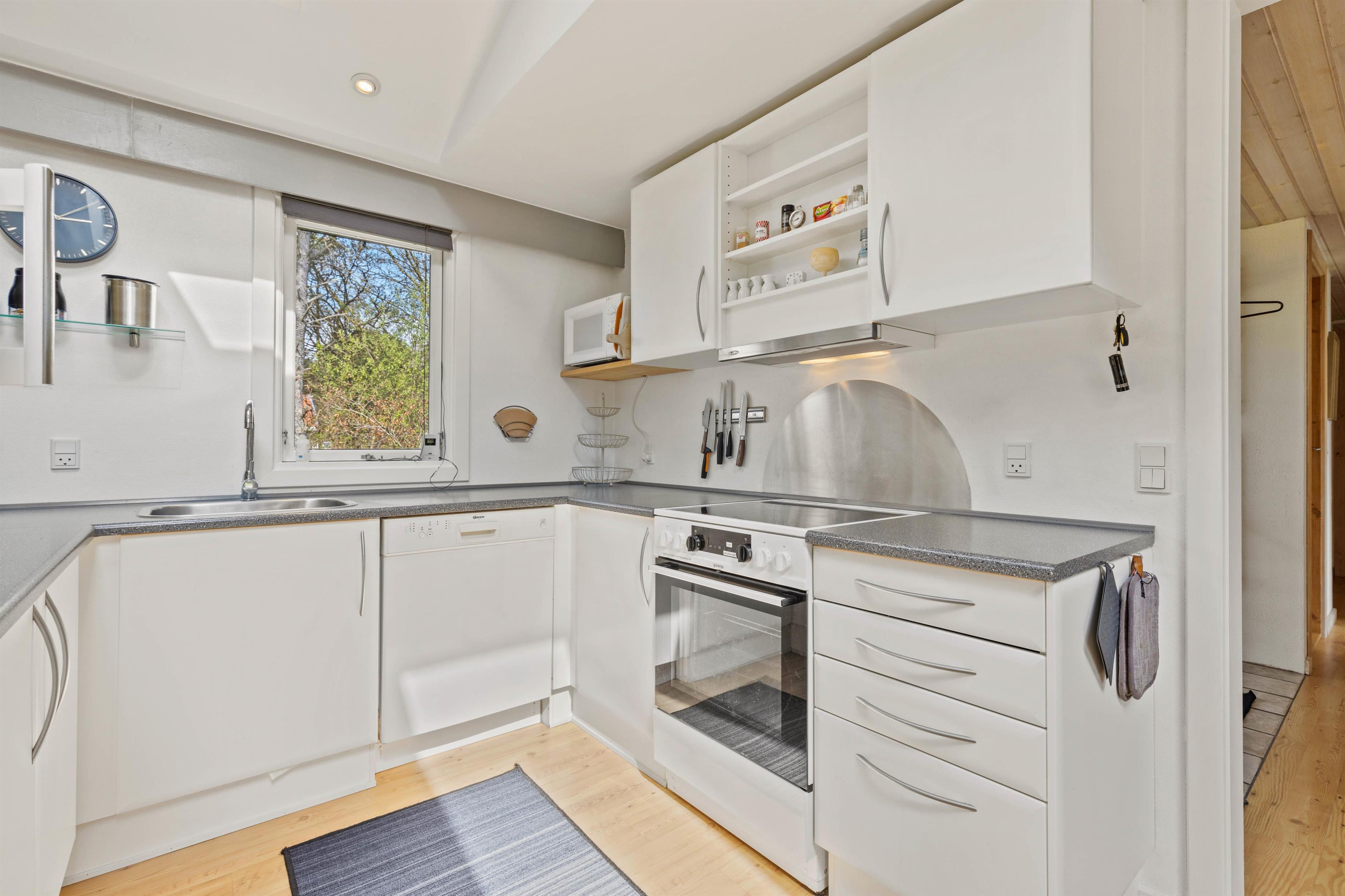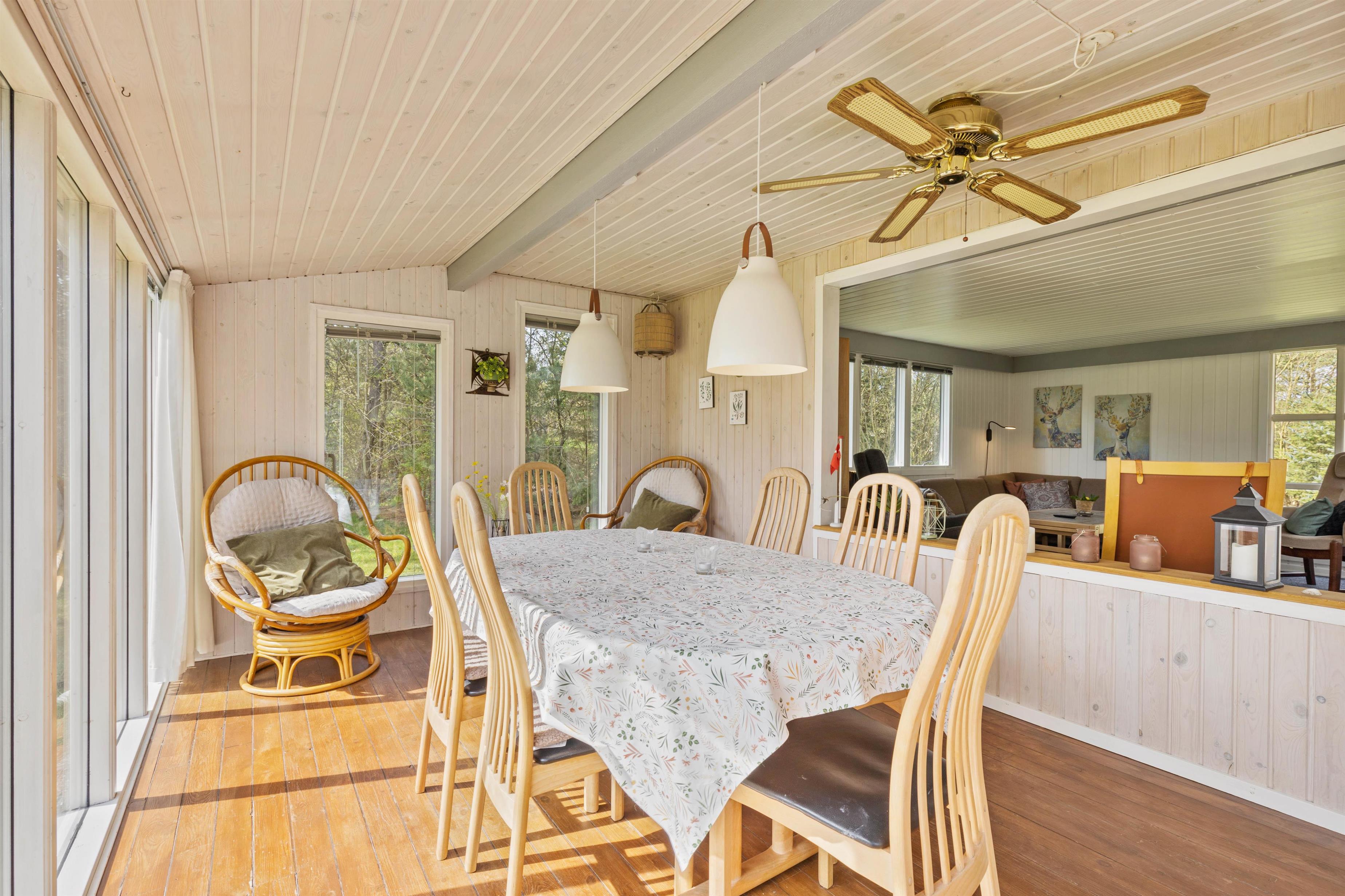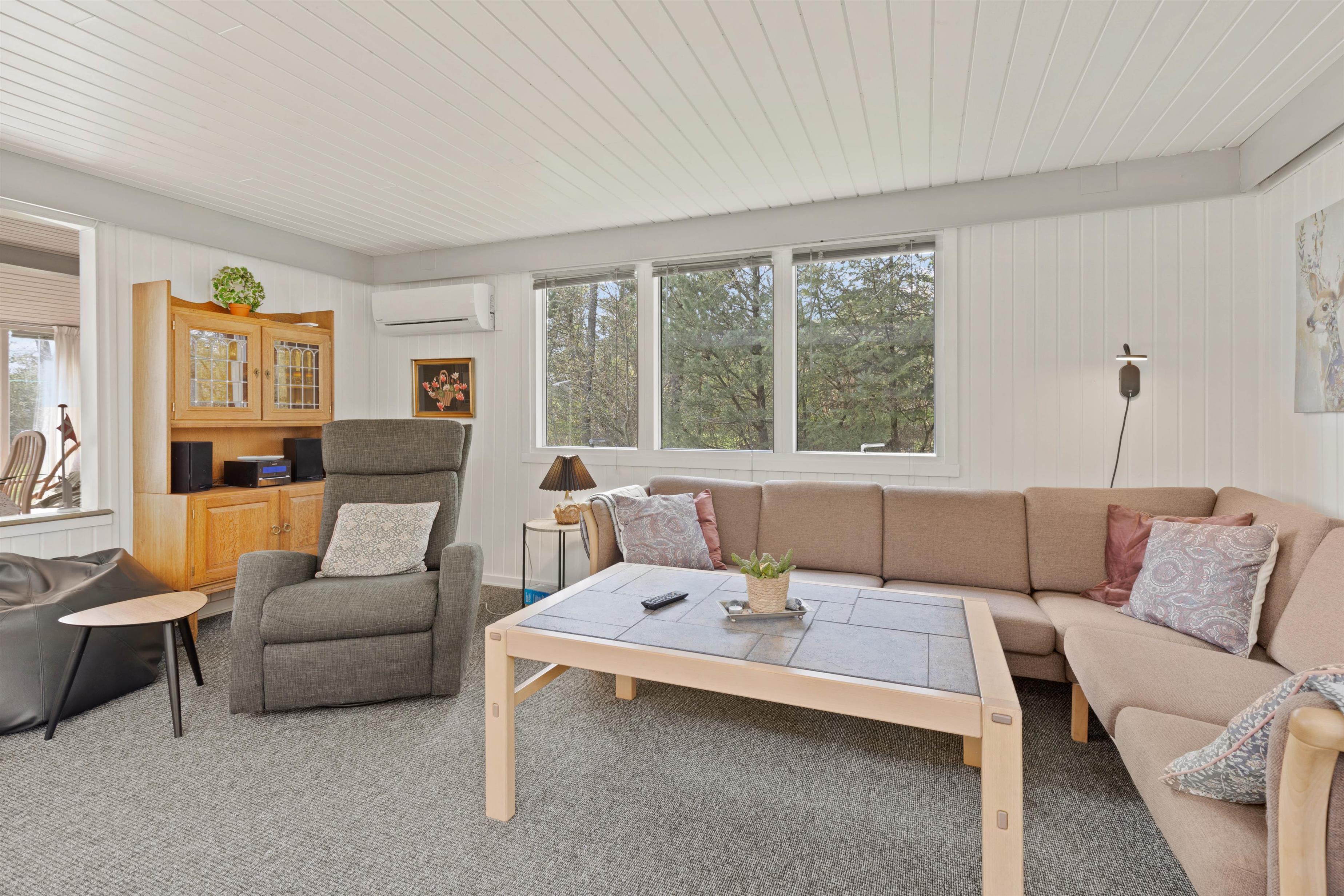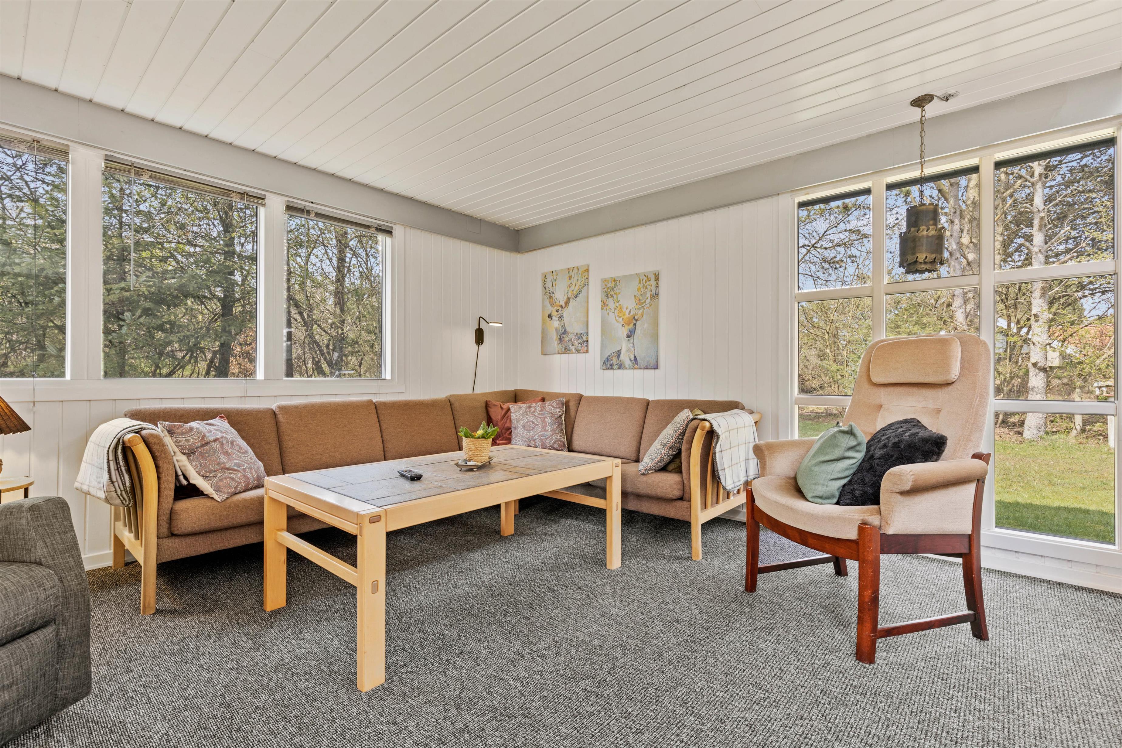 Den hjemmelavede middag kan I nyde i den lyse udestue - her sørger gulvvarmen og de store vinduespartier for en helt speciel atmosfære. Om aftenen kan I varme jer foran den hyggelige brændeovn, se en film på sofaen, eller tænde for grillen på en lun sommerdag.