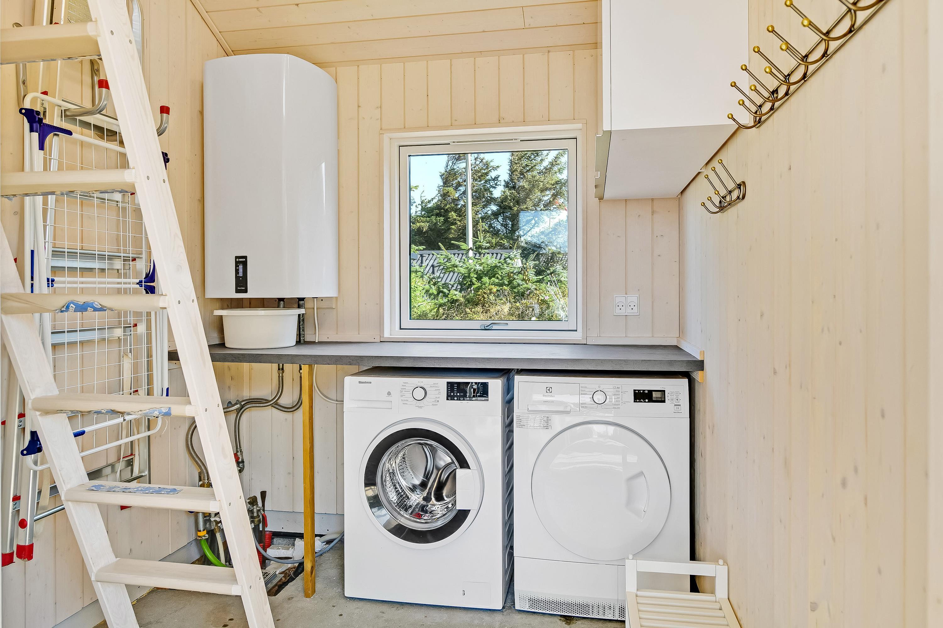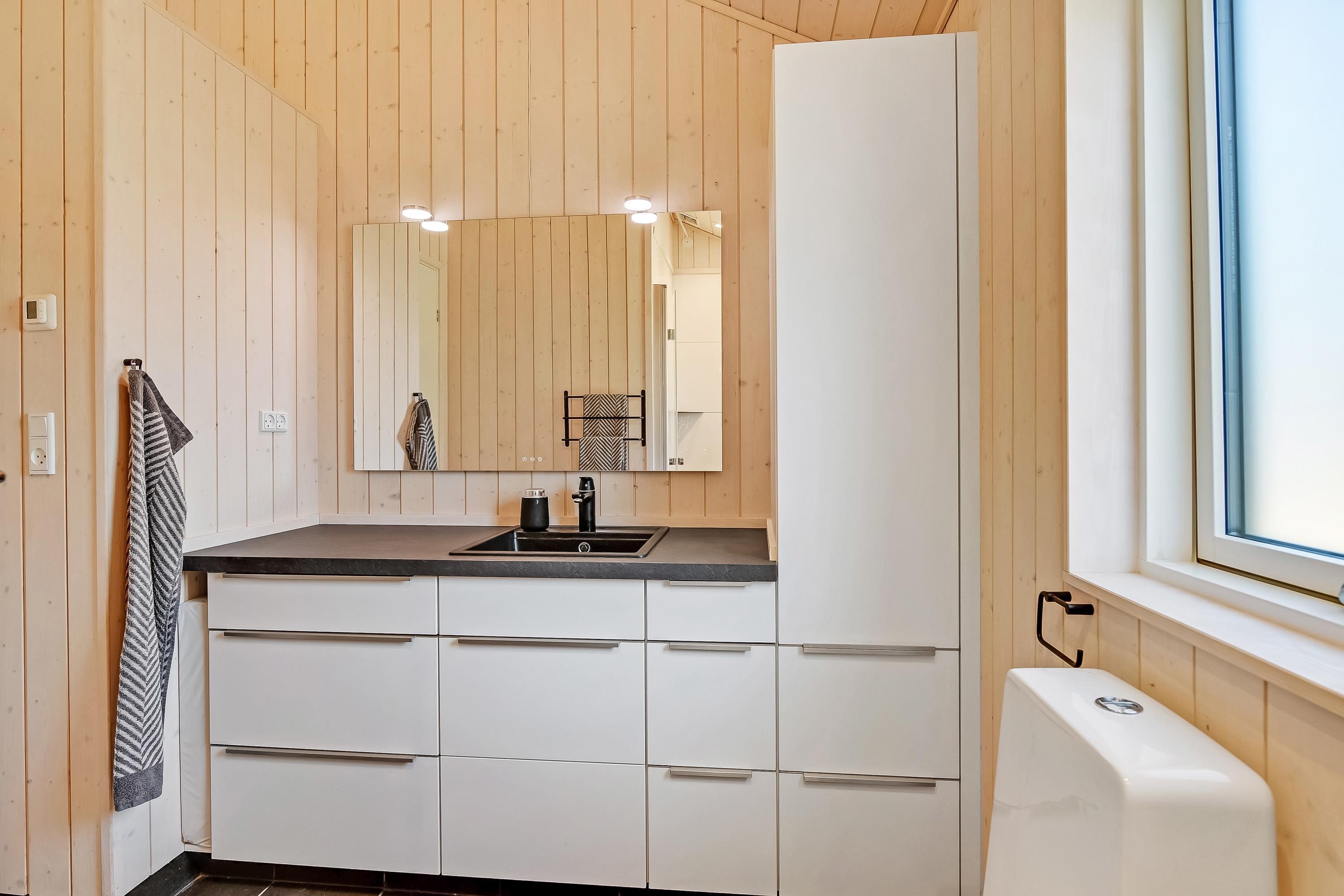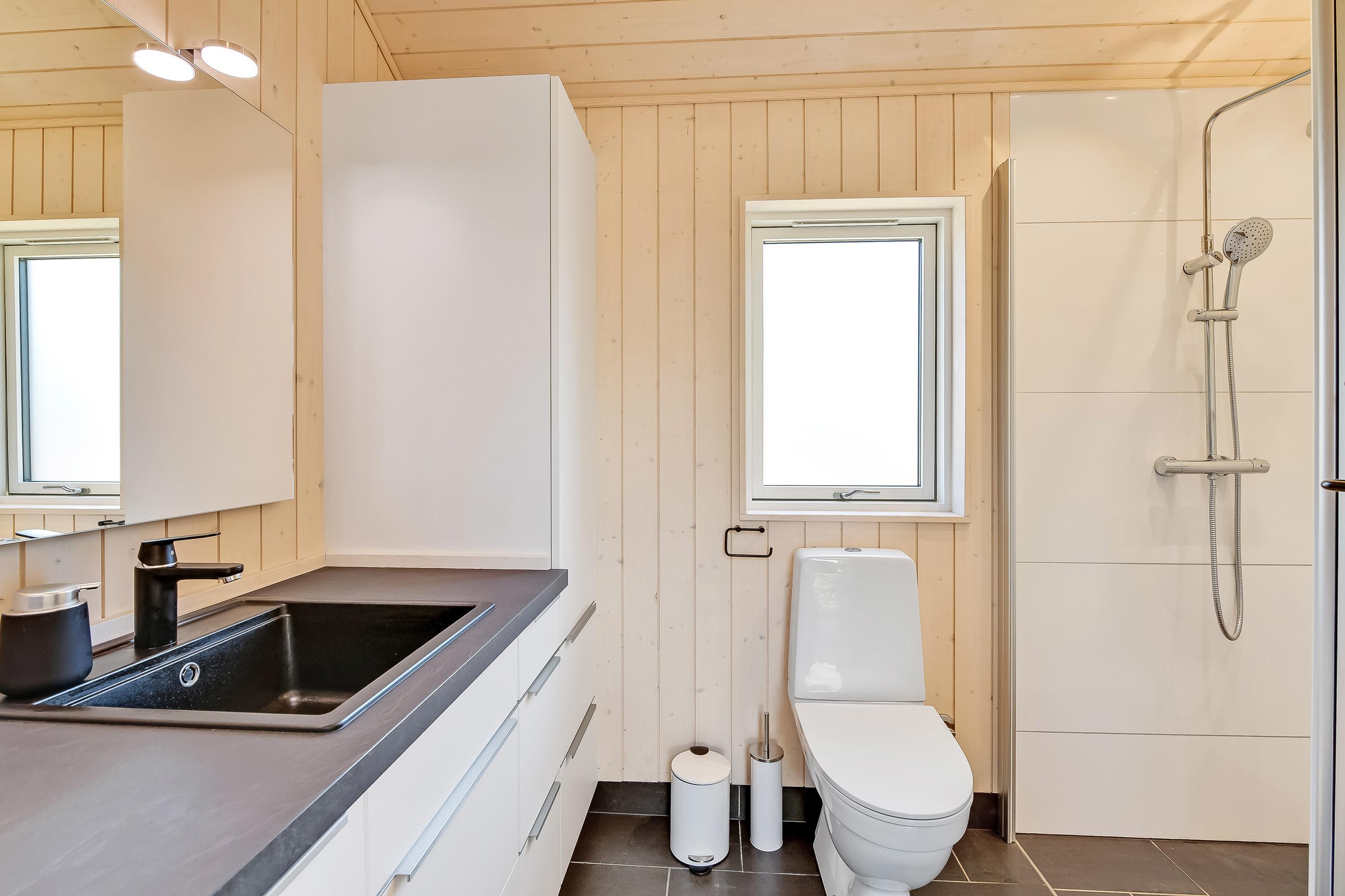 Badeværelset er udstyret med gulvvarme, og praktiske faciliteter som opvaskemaskine, vaskemaskine og tørretumbler hjælper til med oprydning og huslige pligter, så I har endnu mere tid til hinanden.