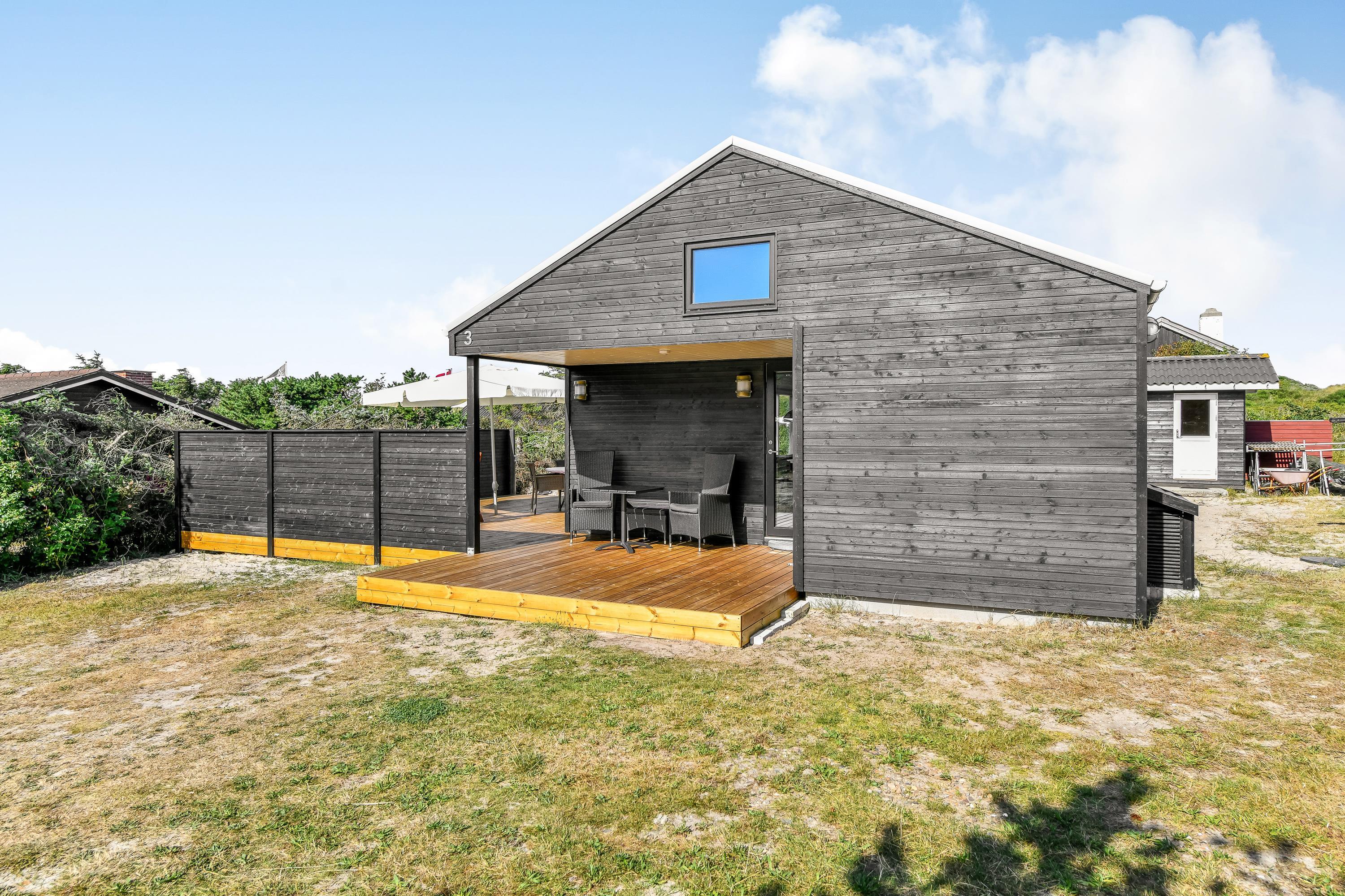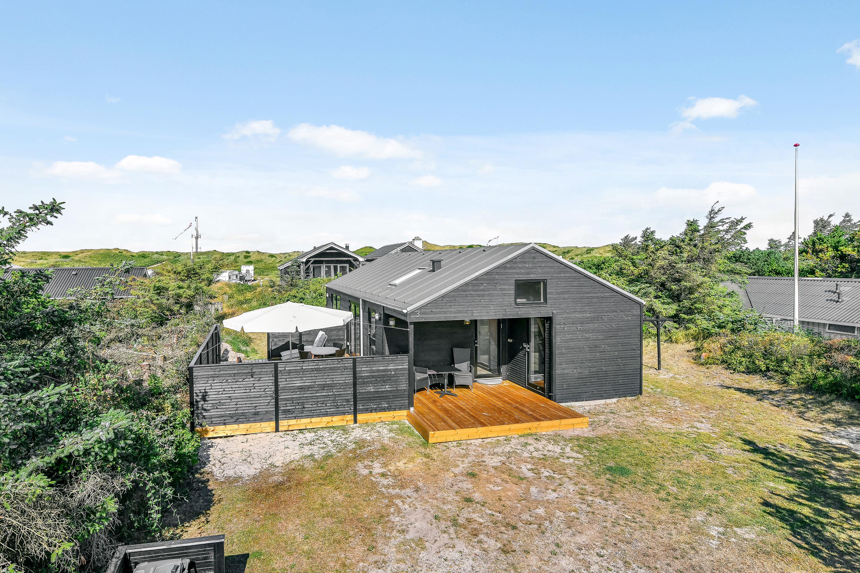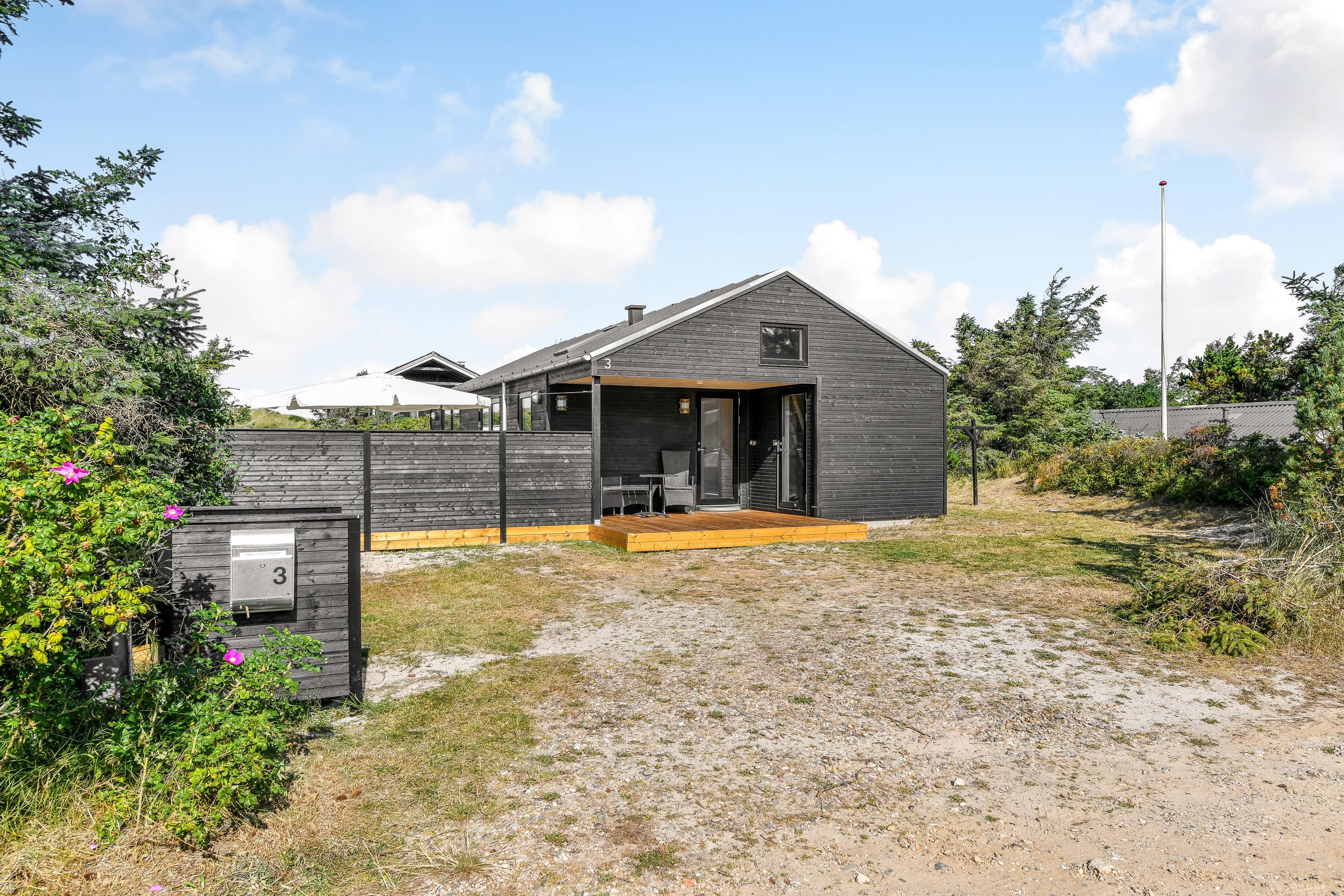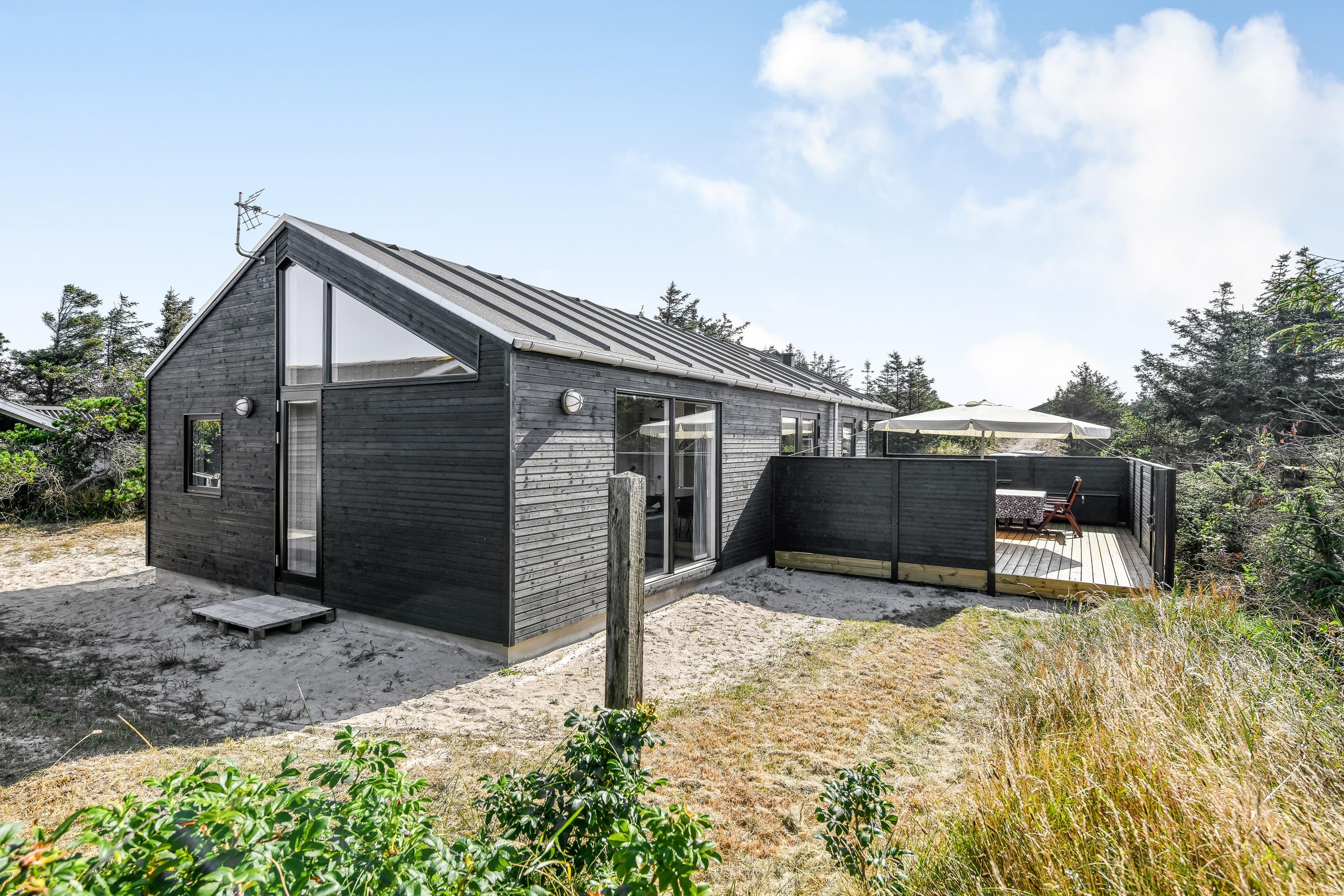Kun 300 meter fra det brusende Vesterhav ligger dette stilfulde sommerhus til 6 personer. I vil hurtigt falde til i de flotte omgivelser, der mikser det moderne og hyggelige på succesfuld vis. Den fantastiske beliggenhed midt i klitlandskabet, fem minutters gang fra stranden er prikken over i’et.