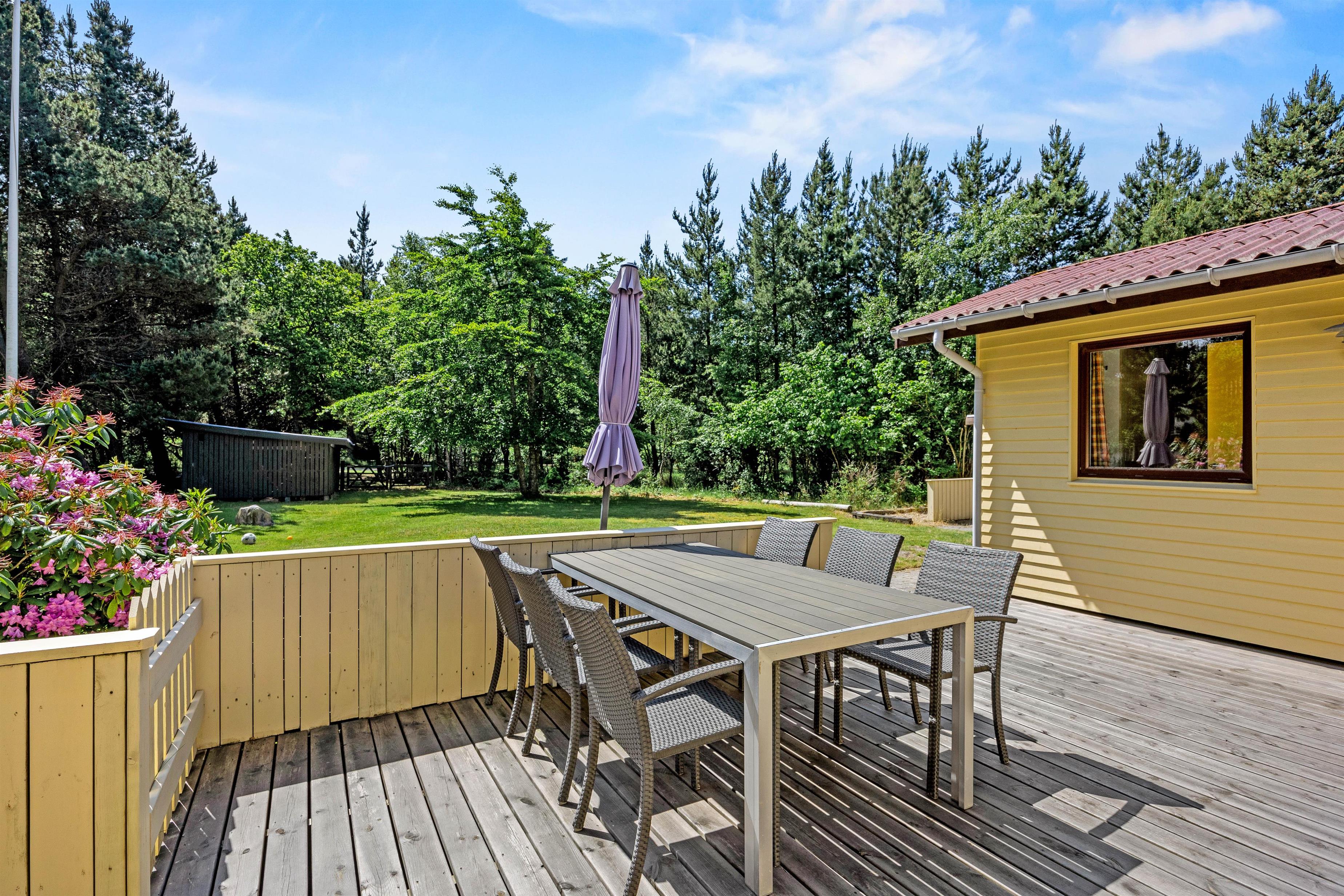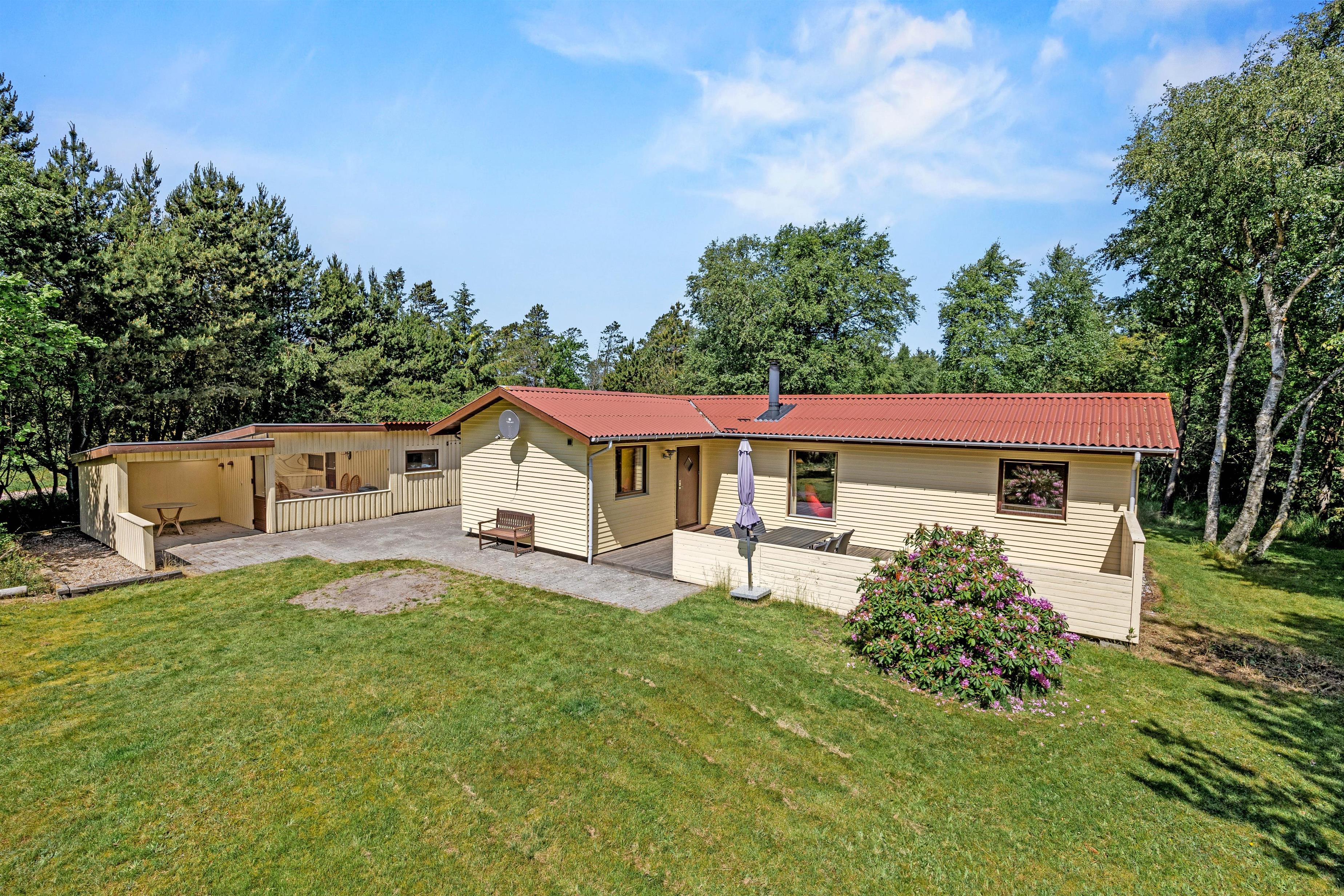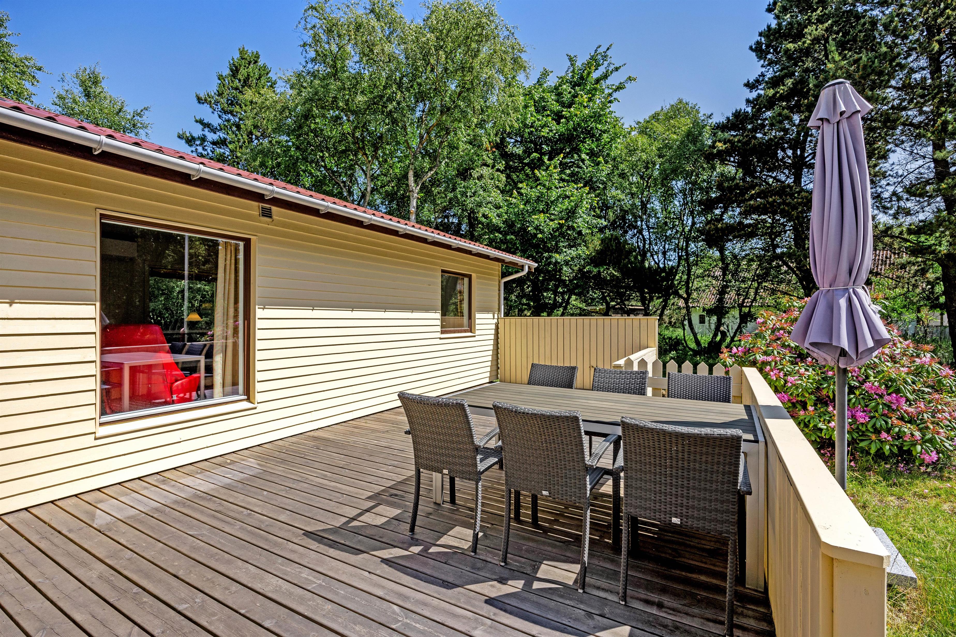 En varmepumpe sikrer en behagelig temperatur indendøre året rundt, og på terrasseområdet er der både en åben og overdækket del, hvor I kan starte dagen med en lækker morgenmad i det fri eller tænde op i grillen om aftenen og tilberede dejlig aftensmad.