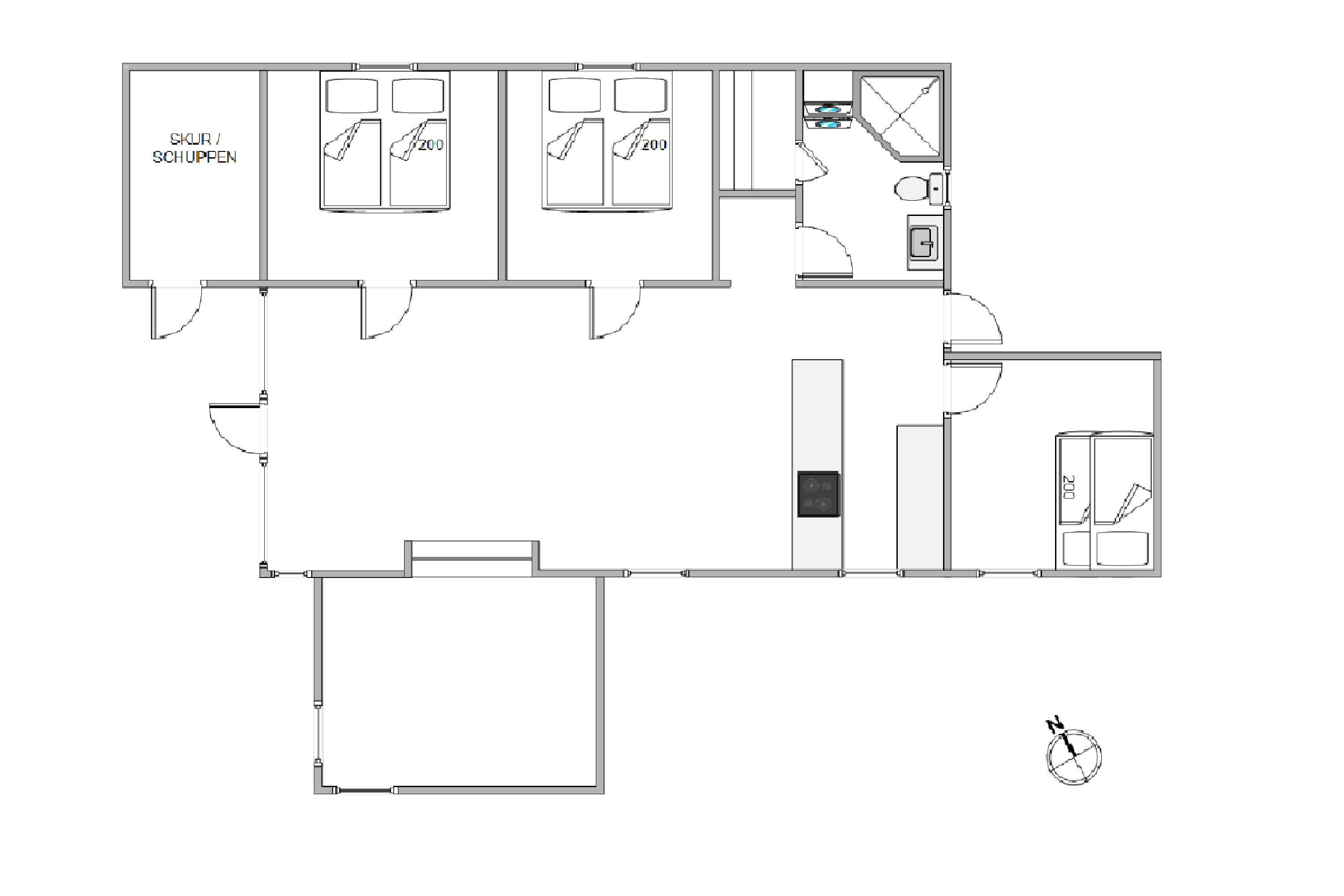 Efter en dejlig feriedag i Vejers kan I søge mod sommerhusets 3 soveværelser, hvor I kan samle ny energi til de kommende feriedage. Det ene soveværelse er indrettet med en dobbeltseng, det andet med 2 enkeltsenge og det tredje med en etageseng.