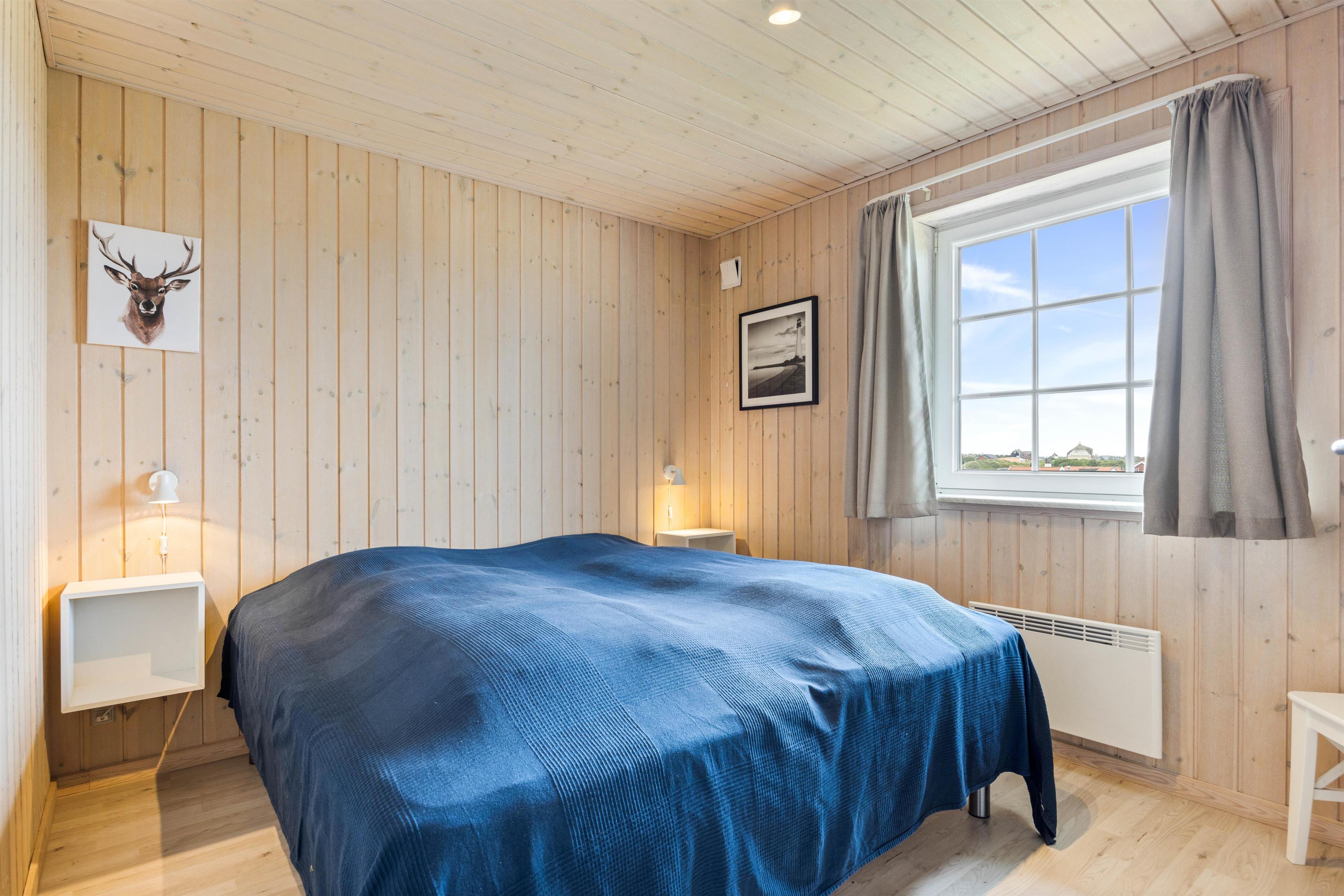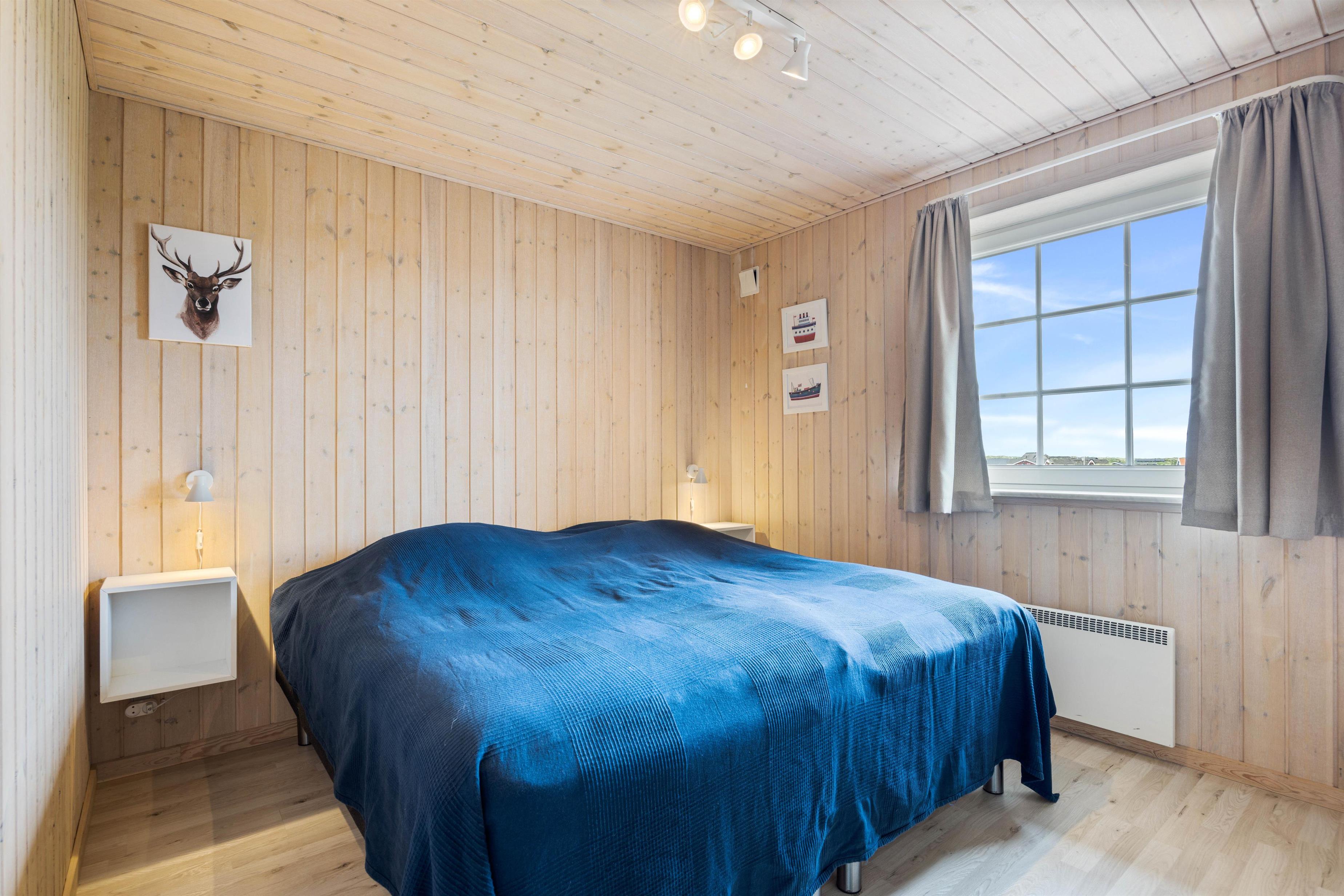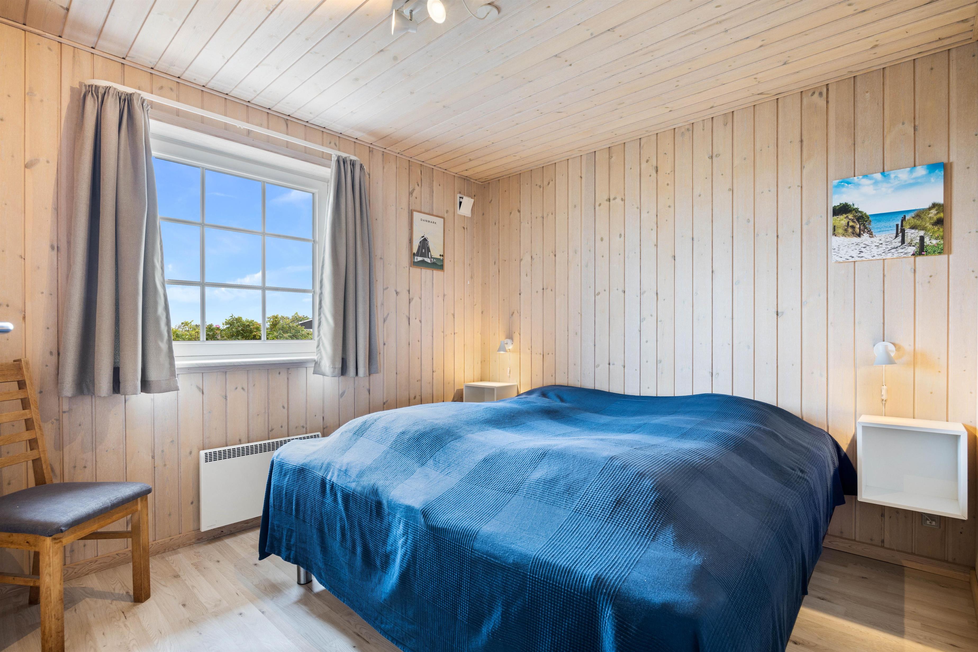 Praktisk er her 2 fine badeværelse, begge med gulvvarme og brus, så I undgår morgenkøen. På det store badeværelse finder I også feriehusets sauna og spabad. Her kan I slappe af i det varme boblende vand. De 8 sovepladser er fordelt på 4 fine værelser, som alle er udstyret med behagelige dobbeltsenge.