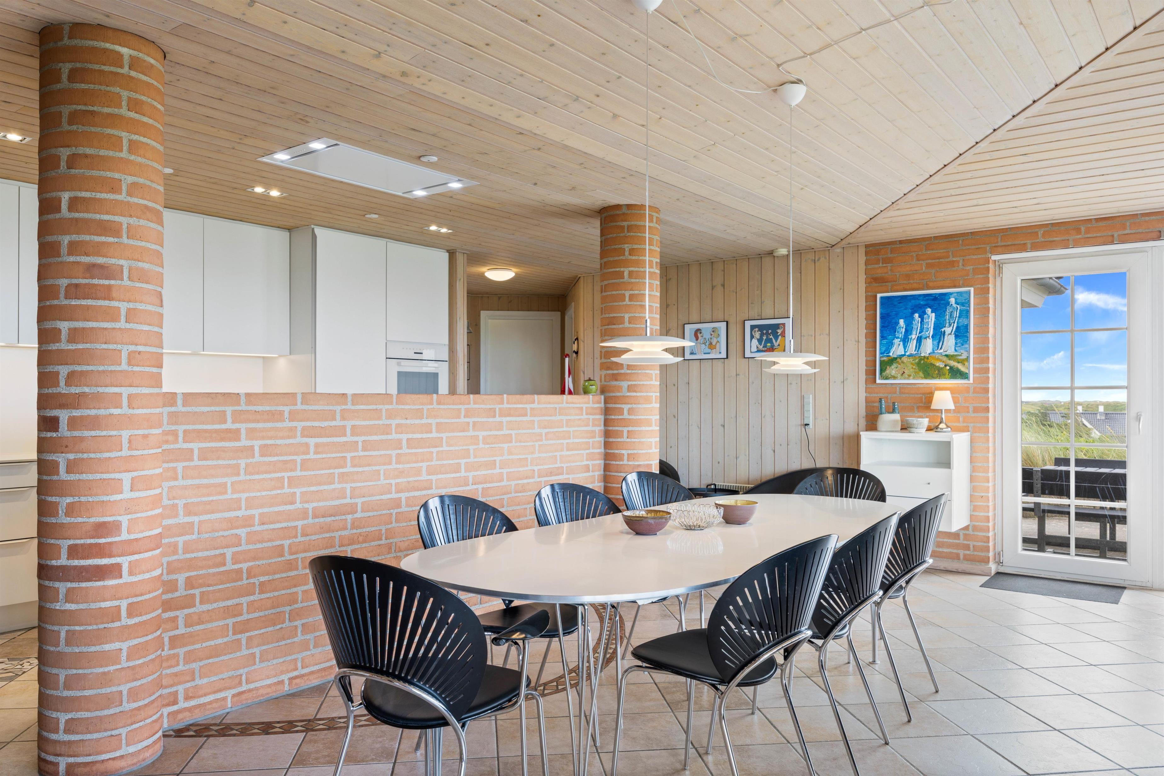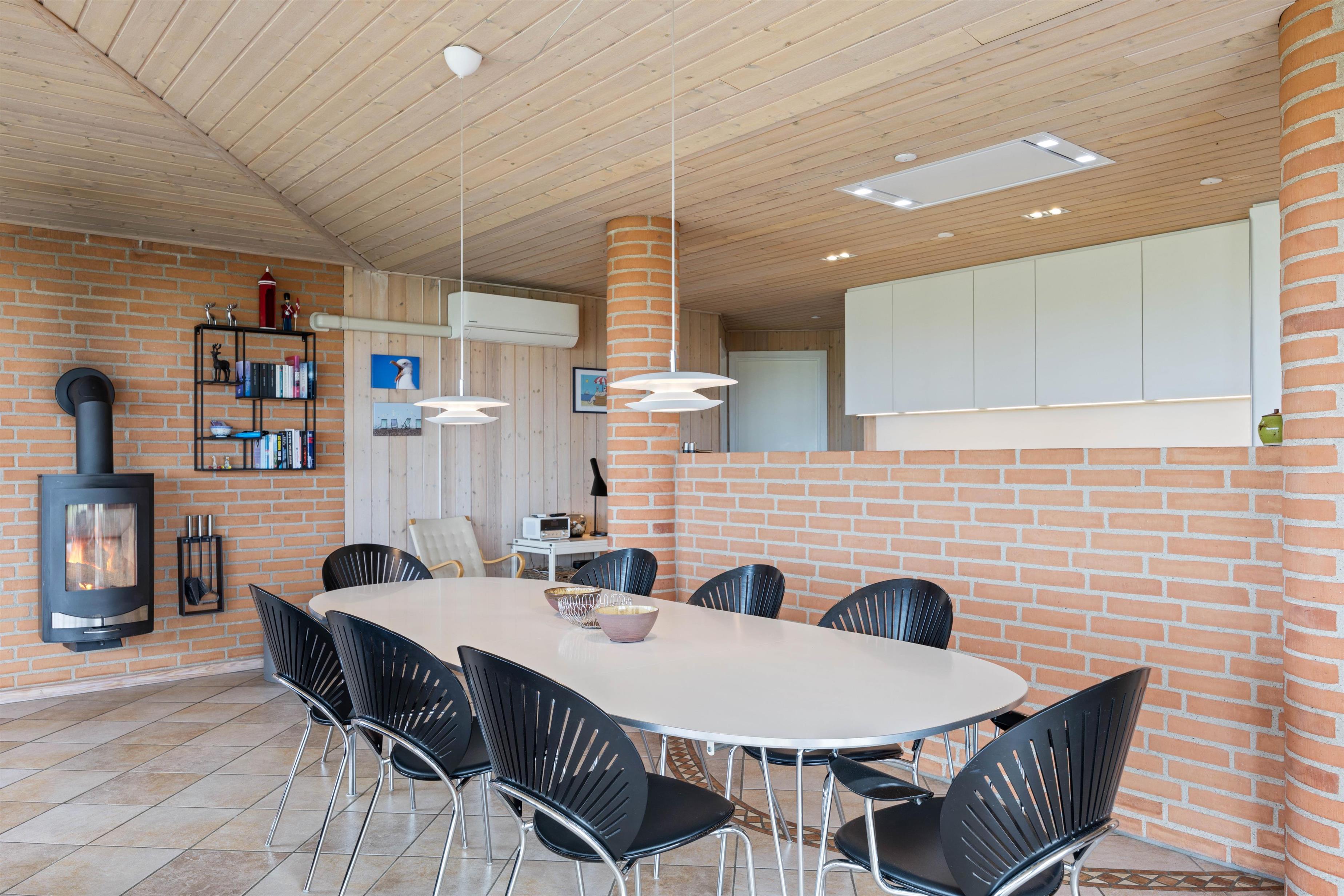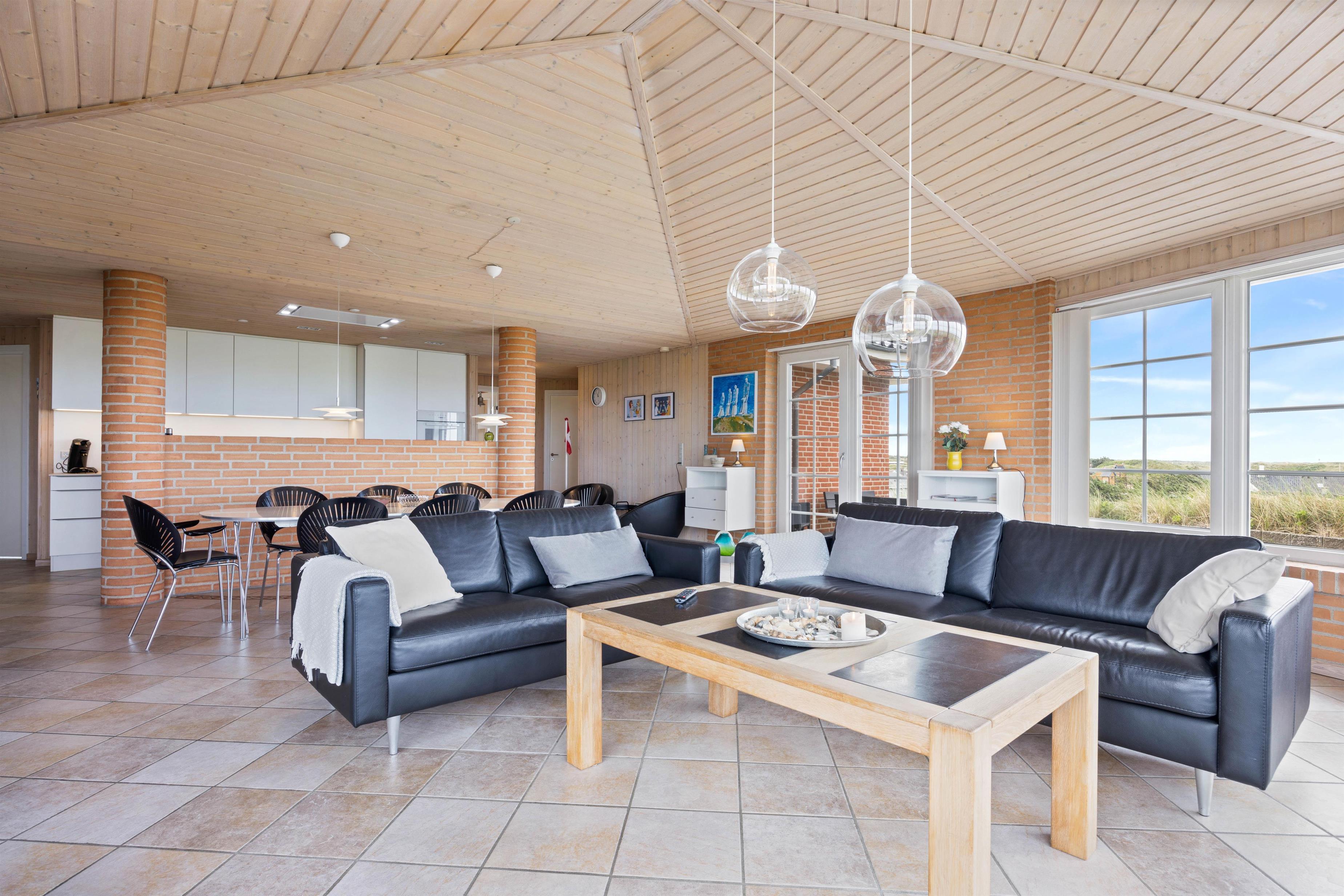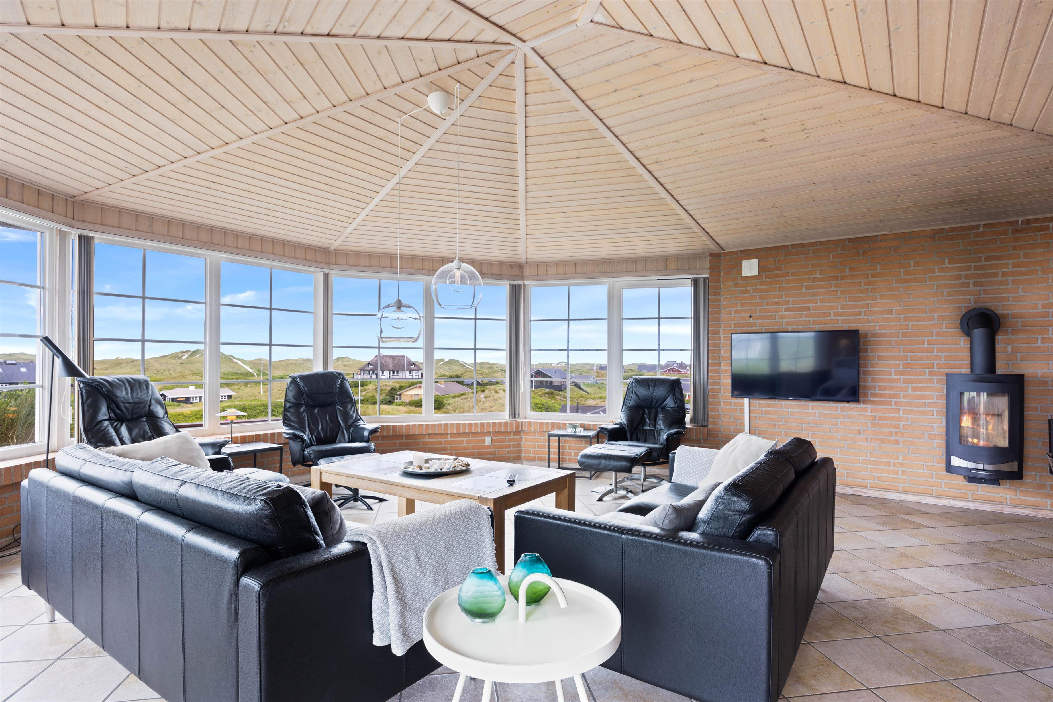 Hjerterummet er store opholdsrum med stue, spiseplads og køkken i ét. Her er et stort smukt vinduesparti, som inviterer dagslyset indenfor og giver jer en smuk udsigt udover klitterne. Her kan I nyde hinandens nærvær – også selvom i hver især laver noget forskelligt. Nogle er måske gået i køkkenet for at bage, andre nyder duften deraf, mens de læser en god bog i sofaen eller planlægger morgendagens aktiviteter. Når hyggen skal helt til tops, kan I tænde op i brændeovnen og nyde varmen breder sig. Skønt er her både gulvvarme samt en energisparende varmepumpe, som sørger for et behageligt indeklima. Køkkenet er godt indrettet og udstyret med alt, hvad der skal bruges og renoveret i 2022.
