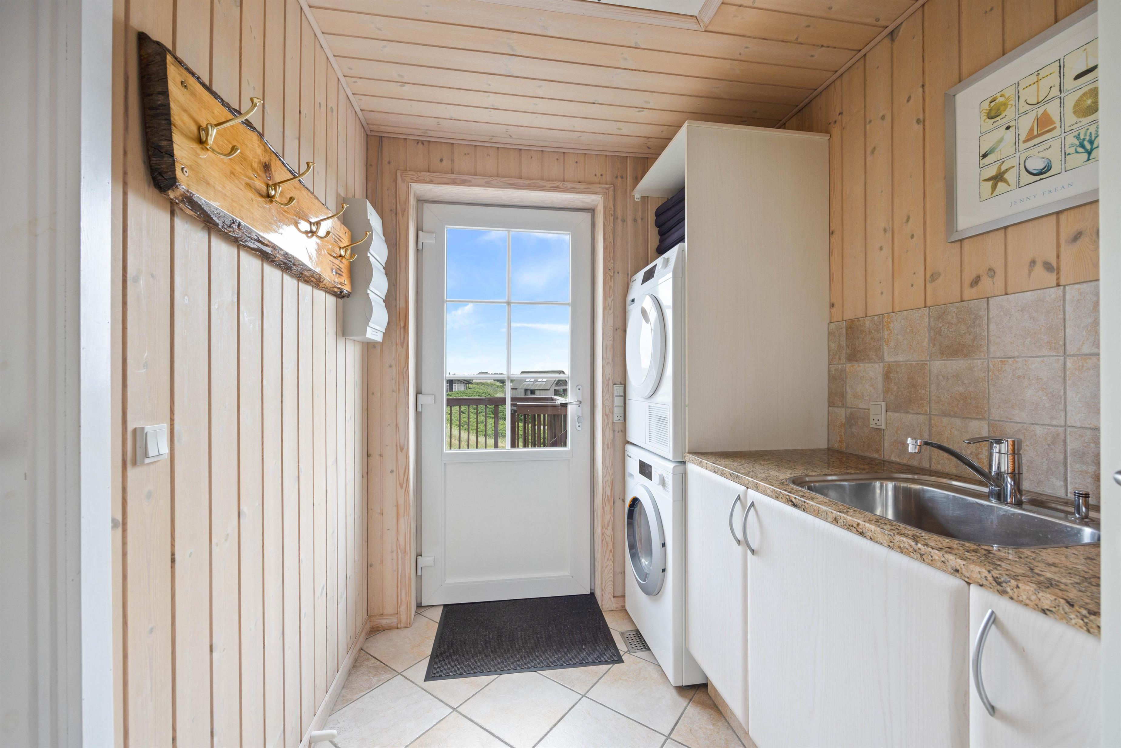 I gangen finder I vaskemaskine og tørretumbler, så I hurtigt kan opfriske strandhåndklæderne.