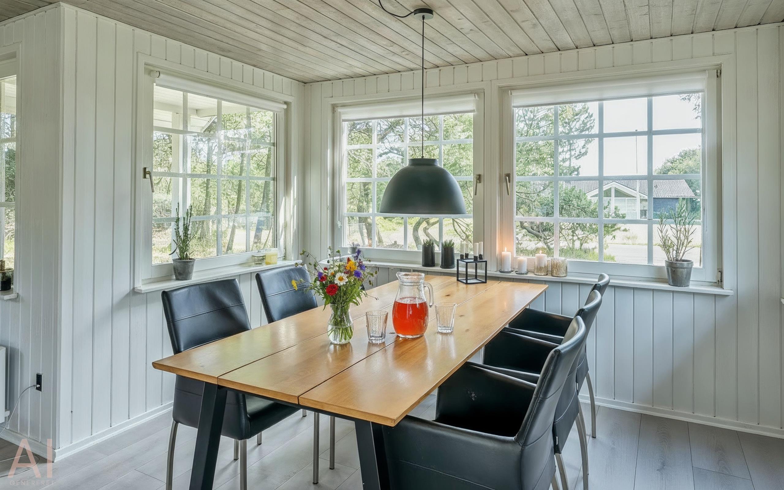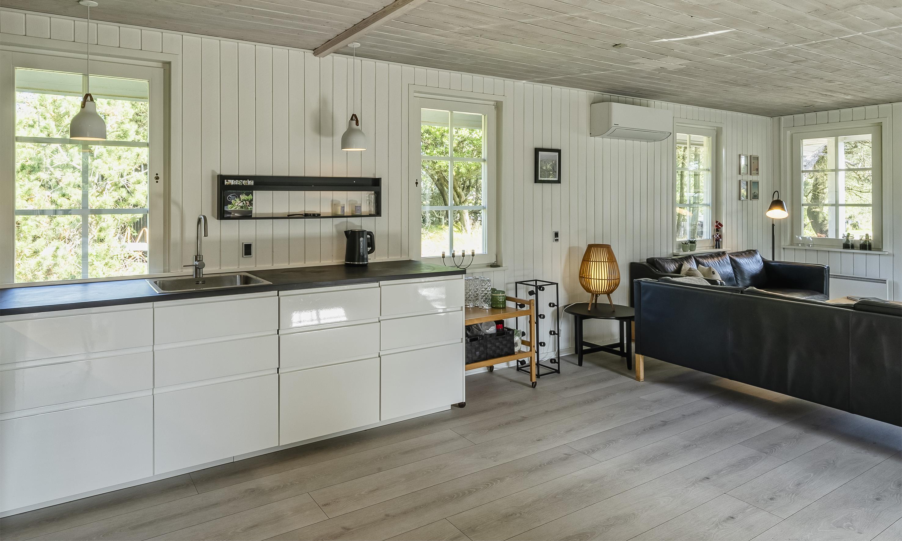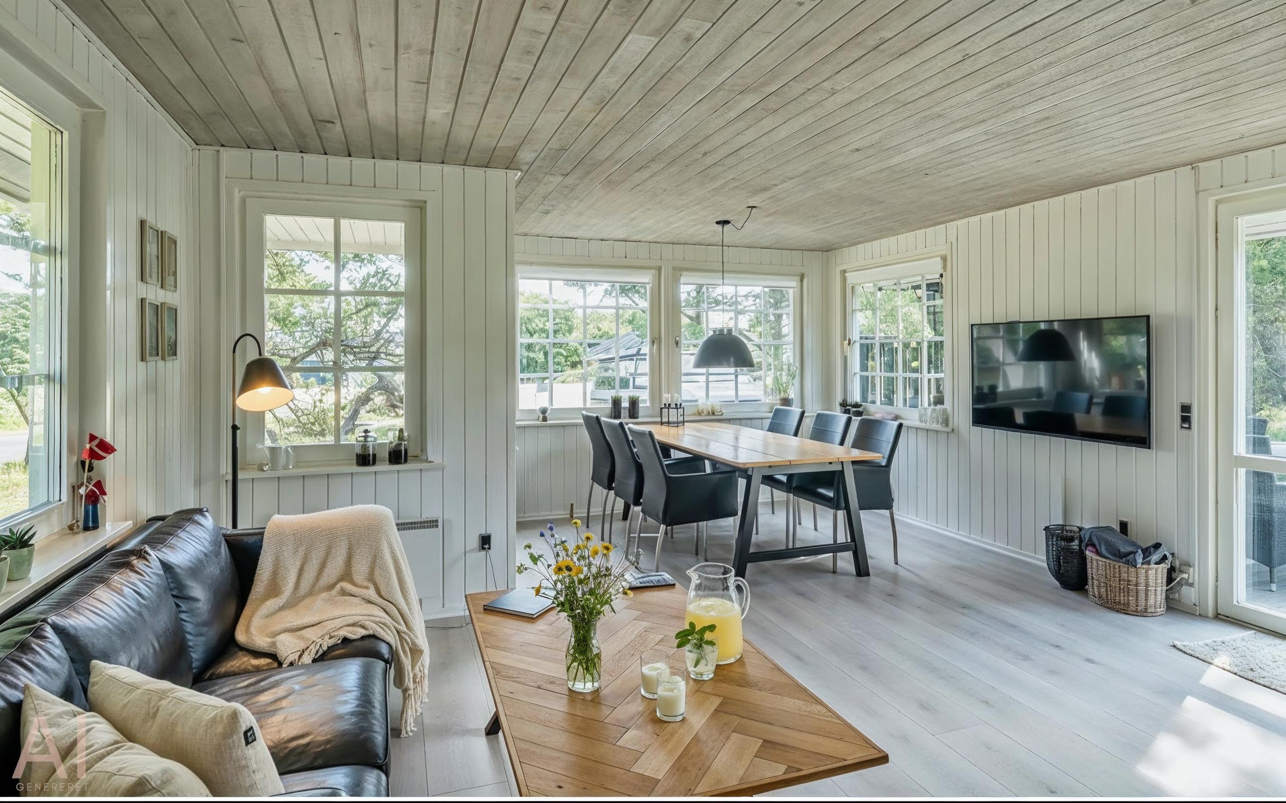 Sommerhuset, der blev totalrenoveret i 2020, er perfekt til en lille familie eller et par. Rundt om huset er der flere gode terrasser og lækroge.