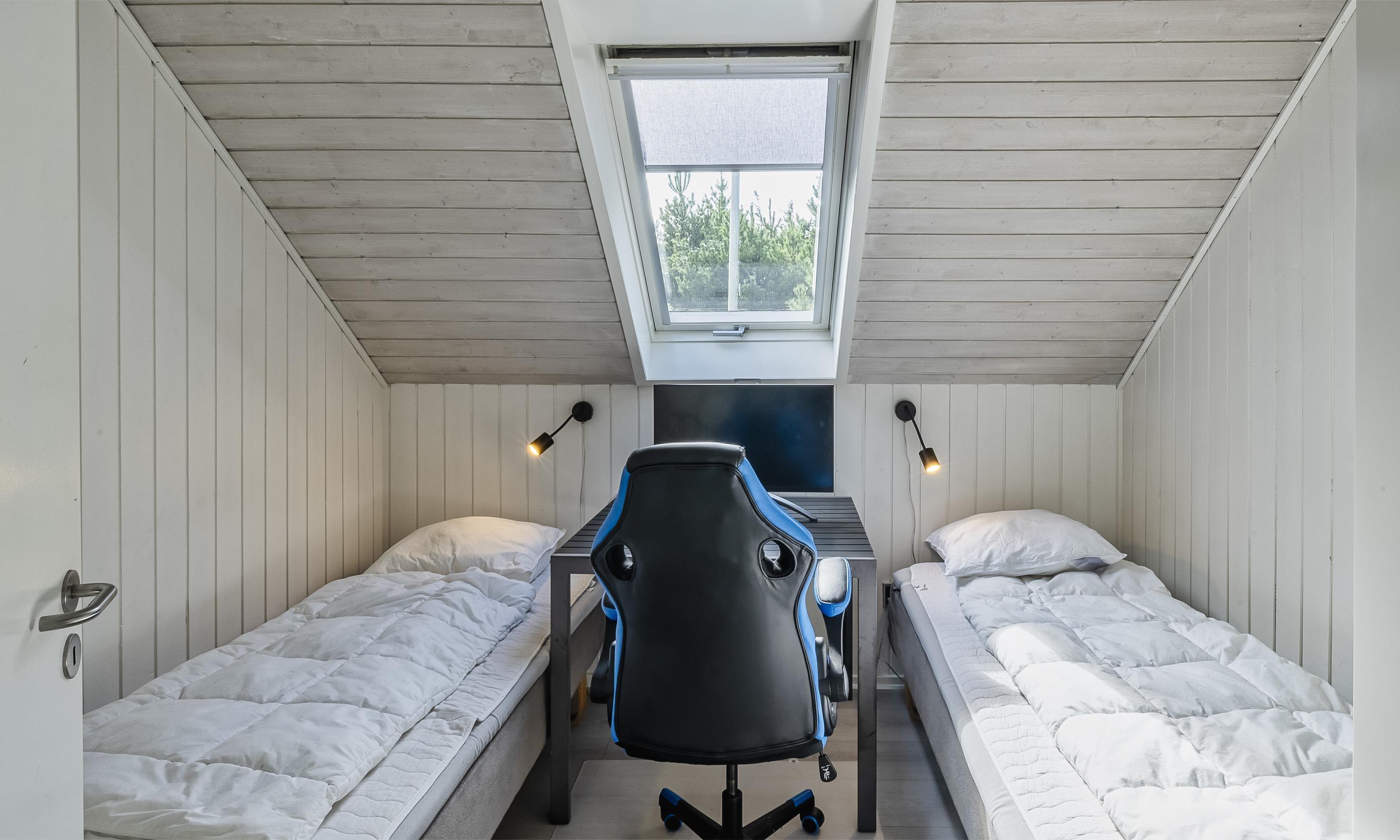 2 Soveværelser. 1 med dobbeltseng og 1 med 2 enkeltsenge (DS + 2ES).