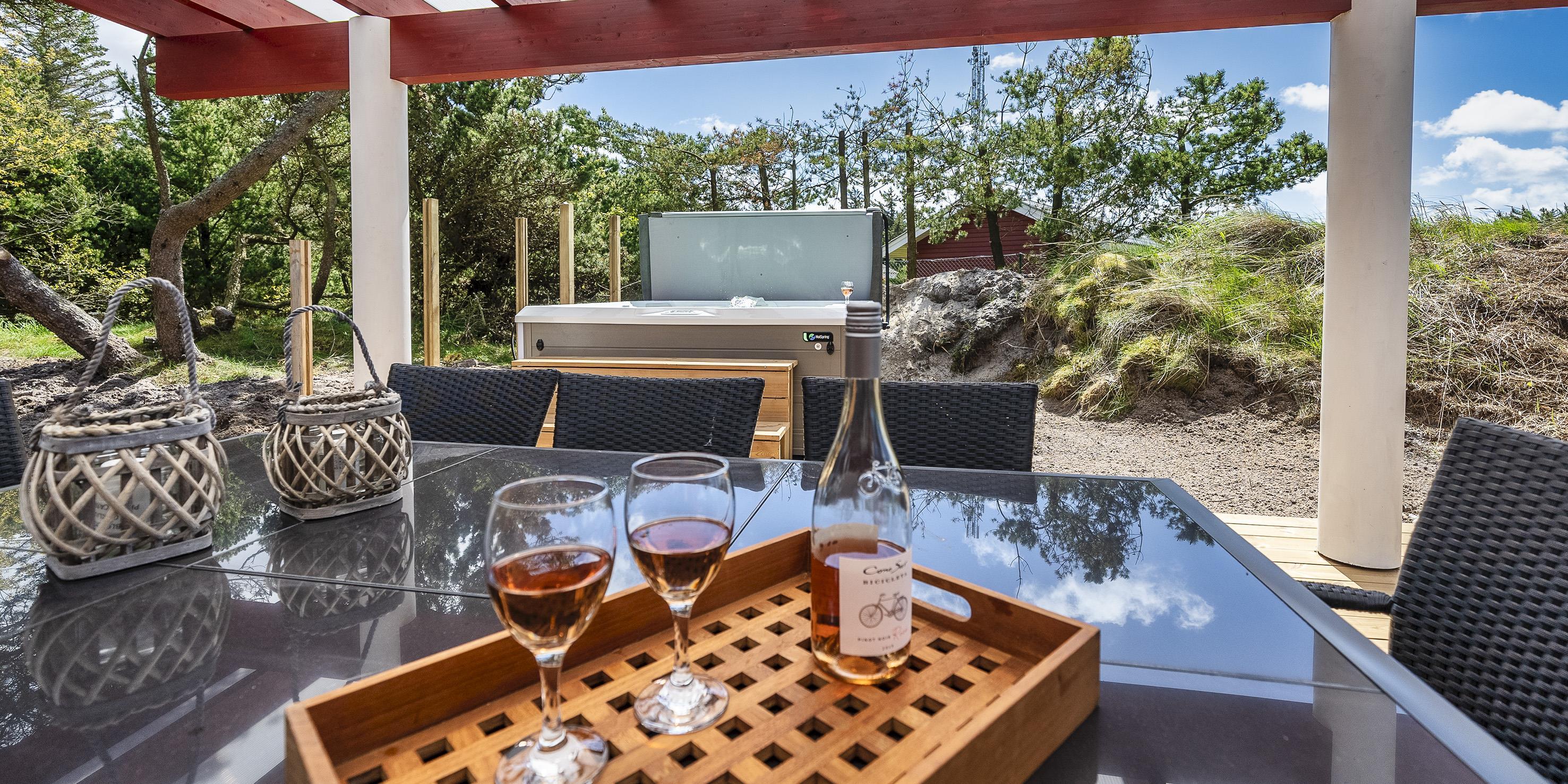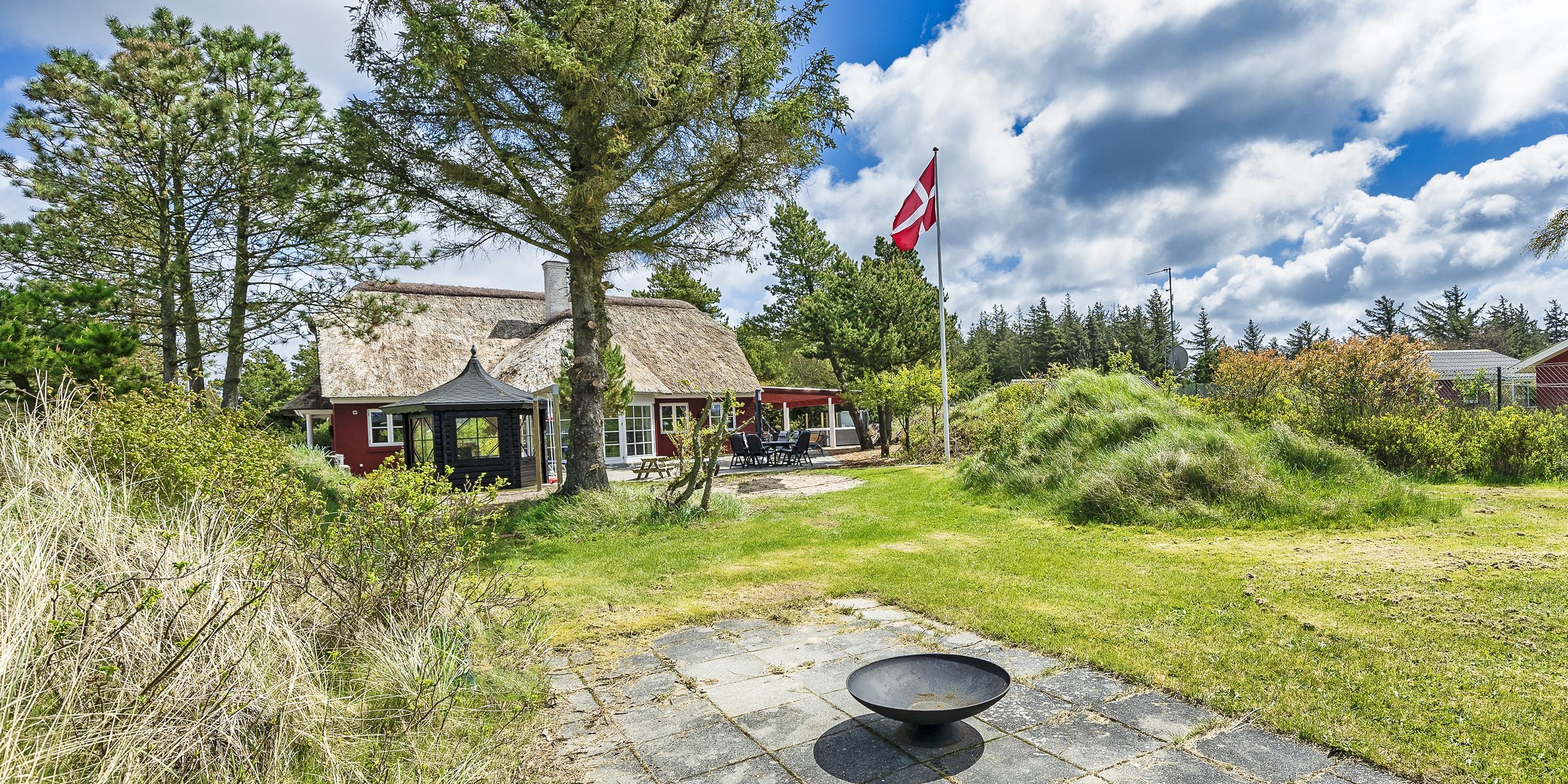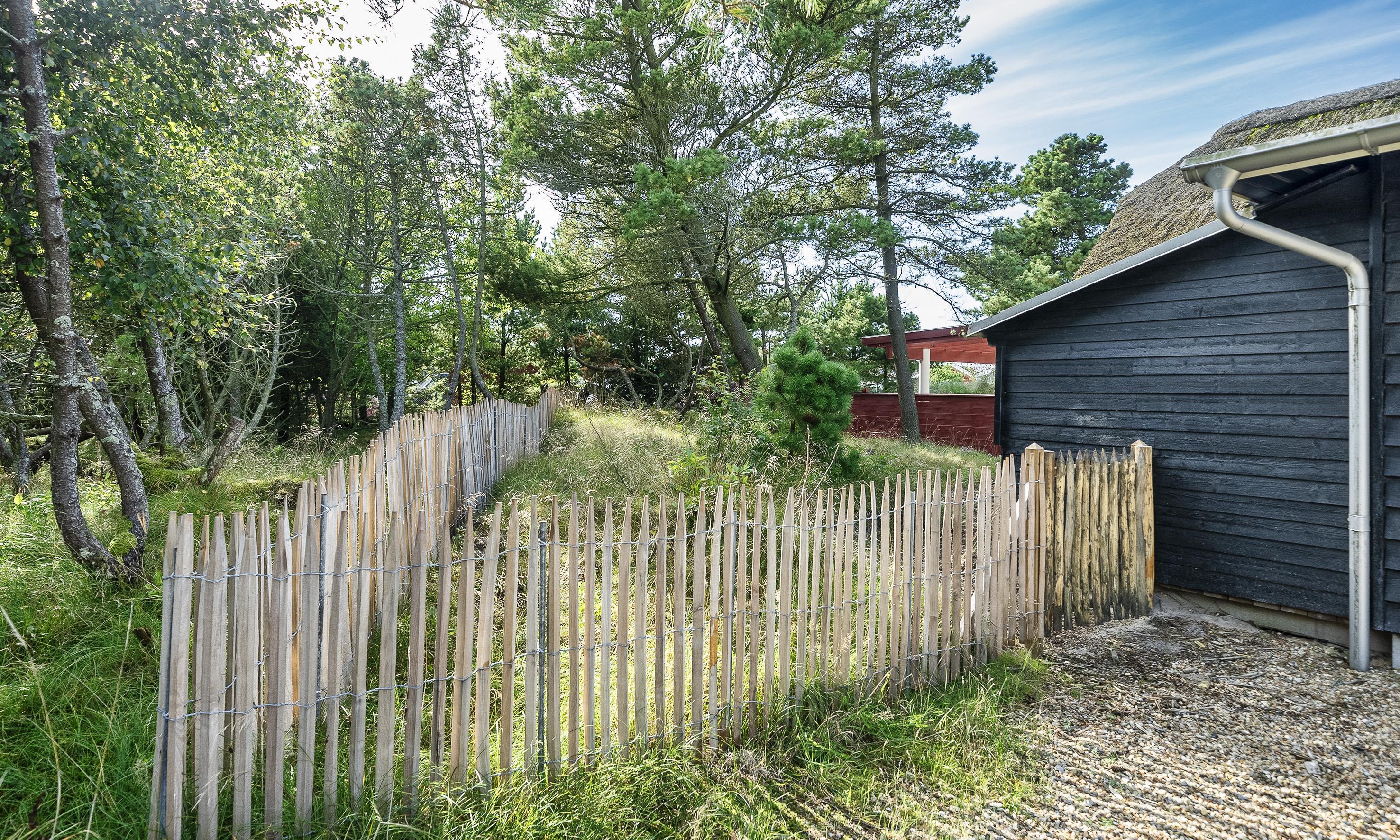 Sommerhuset byder på en skøn atmosfære, gennemgående åbent plan og med store panoramavinduer mod haven. De udvendige faciliteter byder på dejlig stor overdækket terrasse, hvor aftner som forår/efteråret kan nydes. I forbindelse med den overdækkede terrasse forefindes der en ude jacuzzi og en udebruser med kold vand. Jacuzzien er godt skærmet af med et sejl. Sommerhuset ligger på en 1663 m2 stor grund som er fuldt indhegnet, med flere terrasser, en have pavillon og en gynge til de små. Haven er afgrænset med en vold mod vejen. Hele herligheden ligger 4 min. kørsel fra Vejers bymidte der byder på flere restauranter, pizzeria, 2 købmænd, et dropskogeri med udsalg af is og softice og m.m.