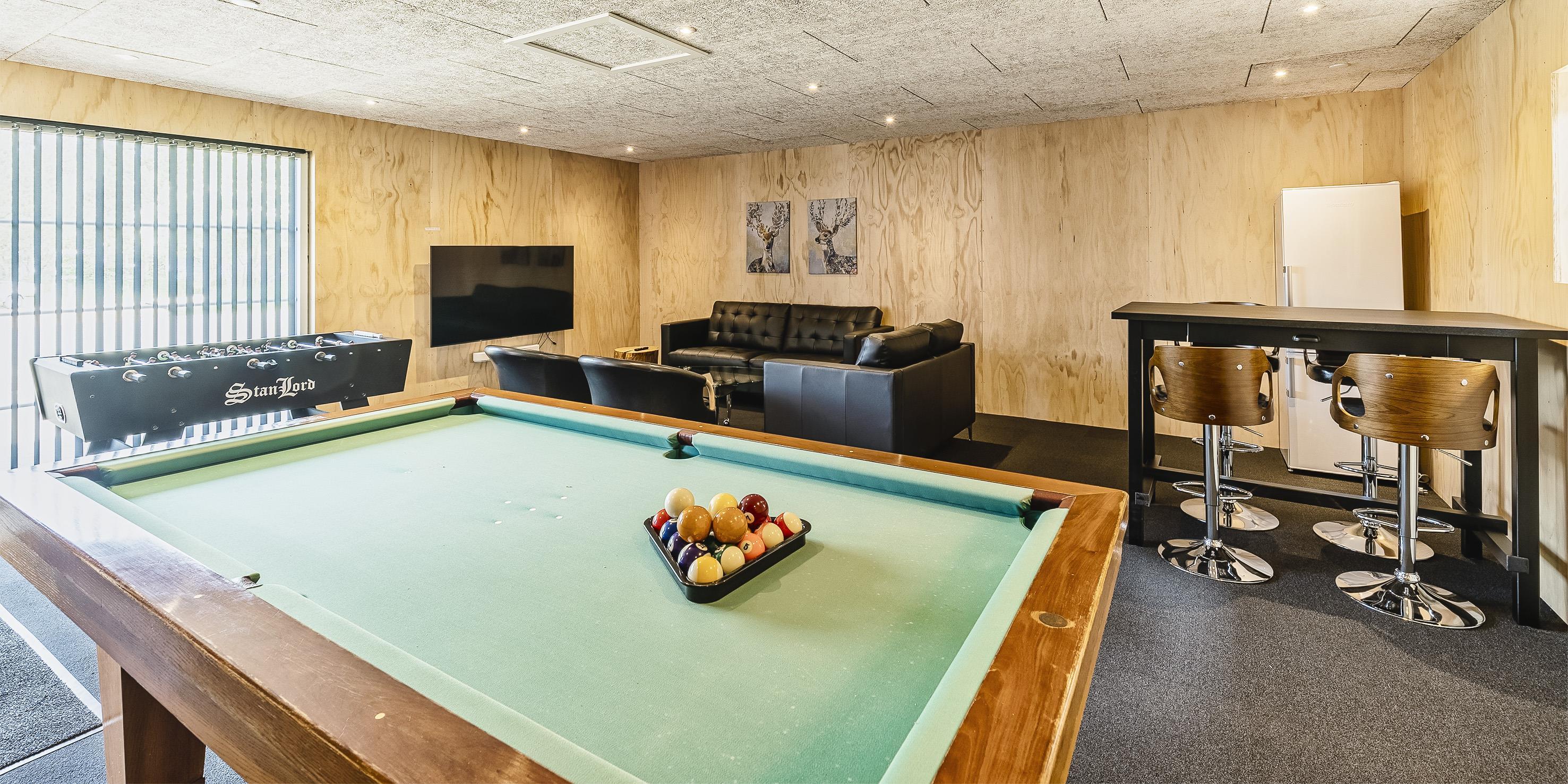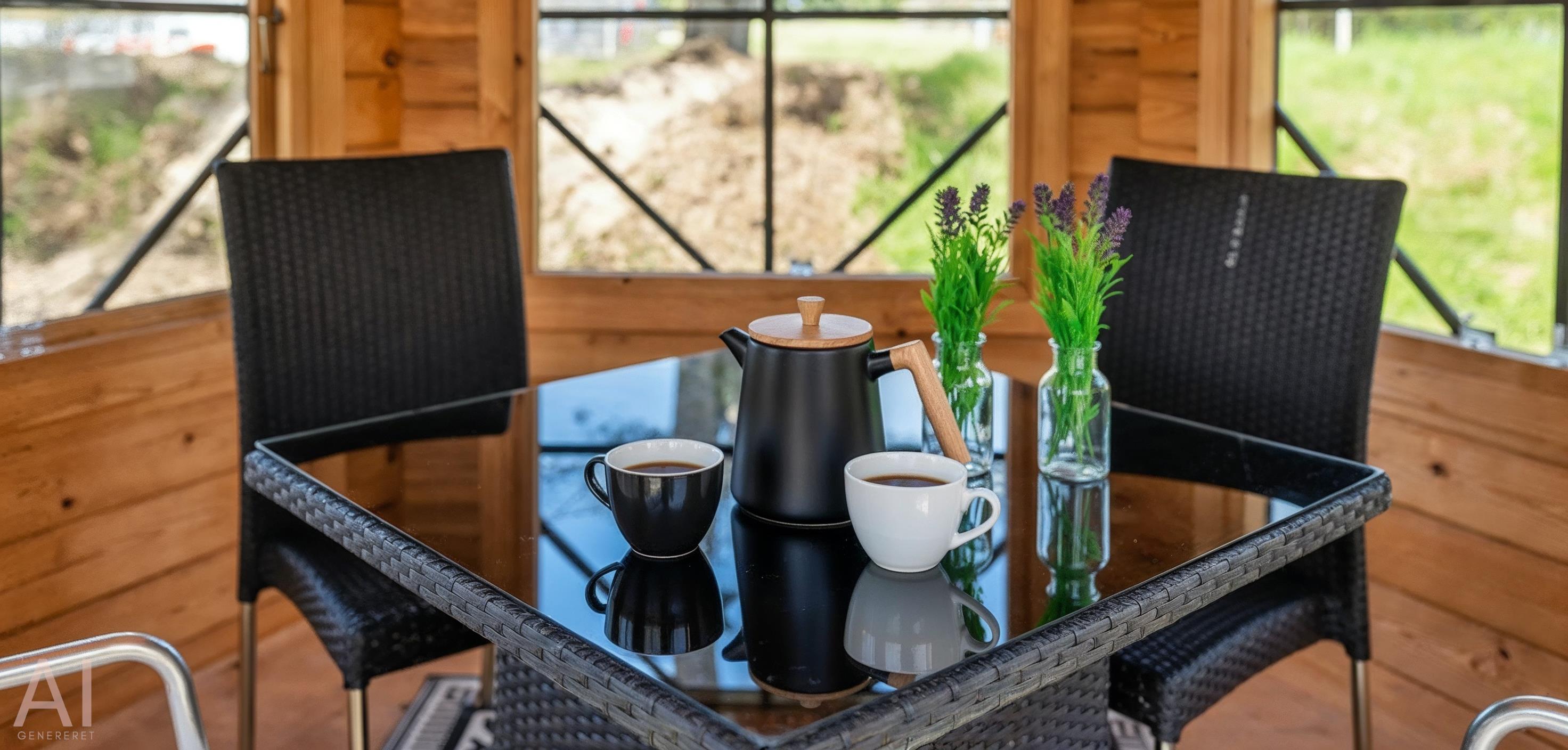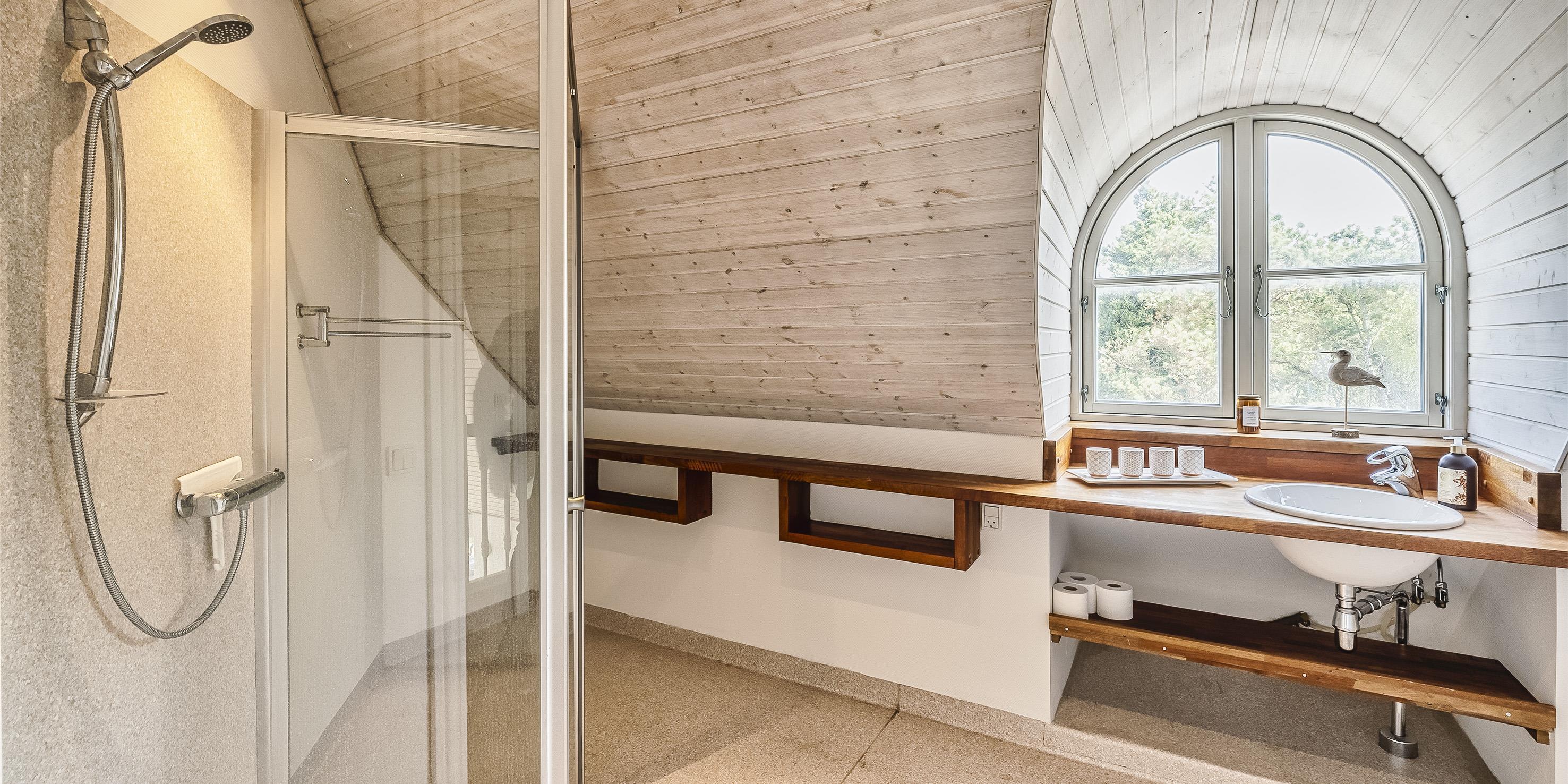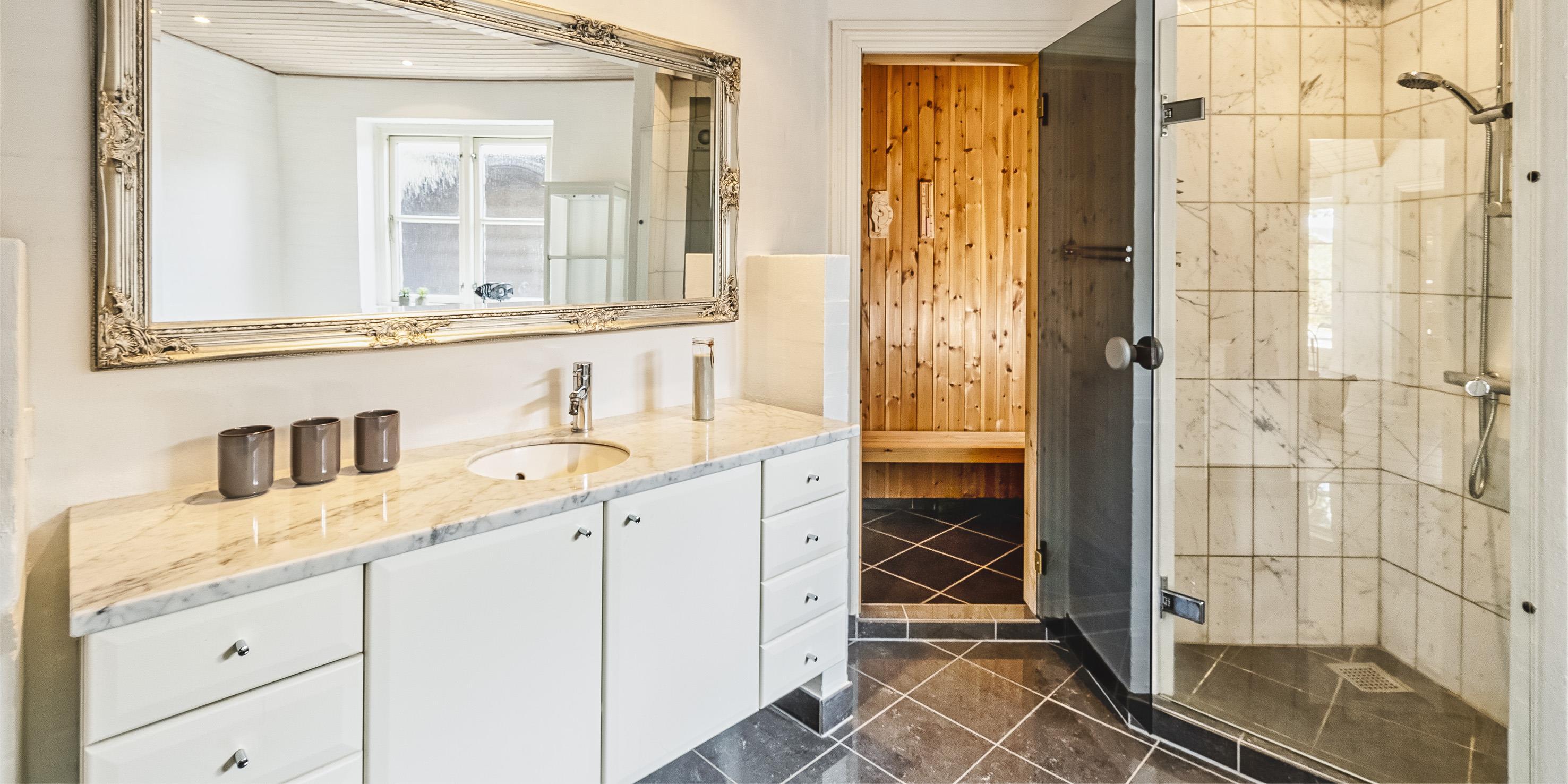 Sommerhuset: Entre indgangsparti med god plads til garderoben og ekstra opbevaring. Fra indgangspartiet forefindes der et bryggers med vaskemaskine og tørretumbler. Fra indgangspartiet kommer man ind til huset køkken-alrum med loft til kip, rummet fremstår lyst og dejligt med et stort vinduesparti. Køkkenet fremstår med alt komfort såsom opvaskemaskine, mikroovn, indbygningsovn, kogeplade, emhætte og et køleskab. Køkkenet er i åben forbindelse med alrummet. Her forefindes et stort spisebord ved det runde vinduesparti og med kig til brændeovnen. Dejlig opholdsstue med fjernsyn med google Chromecast, tv-pakke fra Stofa samt trådløs internetadgang. Herfra er der udgang til en dejlig terrasse miljø under den overdækkede terrasse og en stor ude jacuzzi. Dagen kan nydes fra morgen til aften på den store overdækkede terrasser og ydermere er der en syd-vestvendt fliseterrasse. Der er 5 rummelige soveværelser i huset: DS + DS + DS + 2S + 2S. I stueplan forefindes et stort badeværelse med wc, vask med underskab, bruseniche, sauna og en hjørnespa. Gæstetoilet med wc, bruser og bordplade med vask. Ydermere forefindes der et 49 kvm. aktivitetshus, der fremstår med en lille bar, billardbord, bordtennis, dartspil og et fodboldbord. Ydermere er rummet indrettet med en sofahjørne med smart-TV. Her forefindes en køl- og fryseskab.