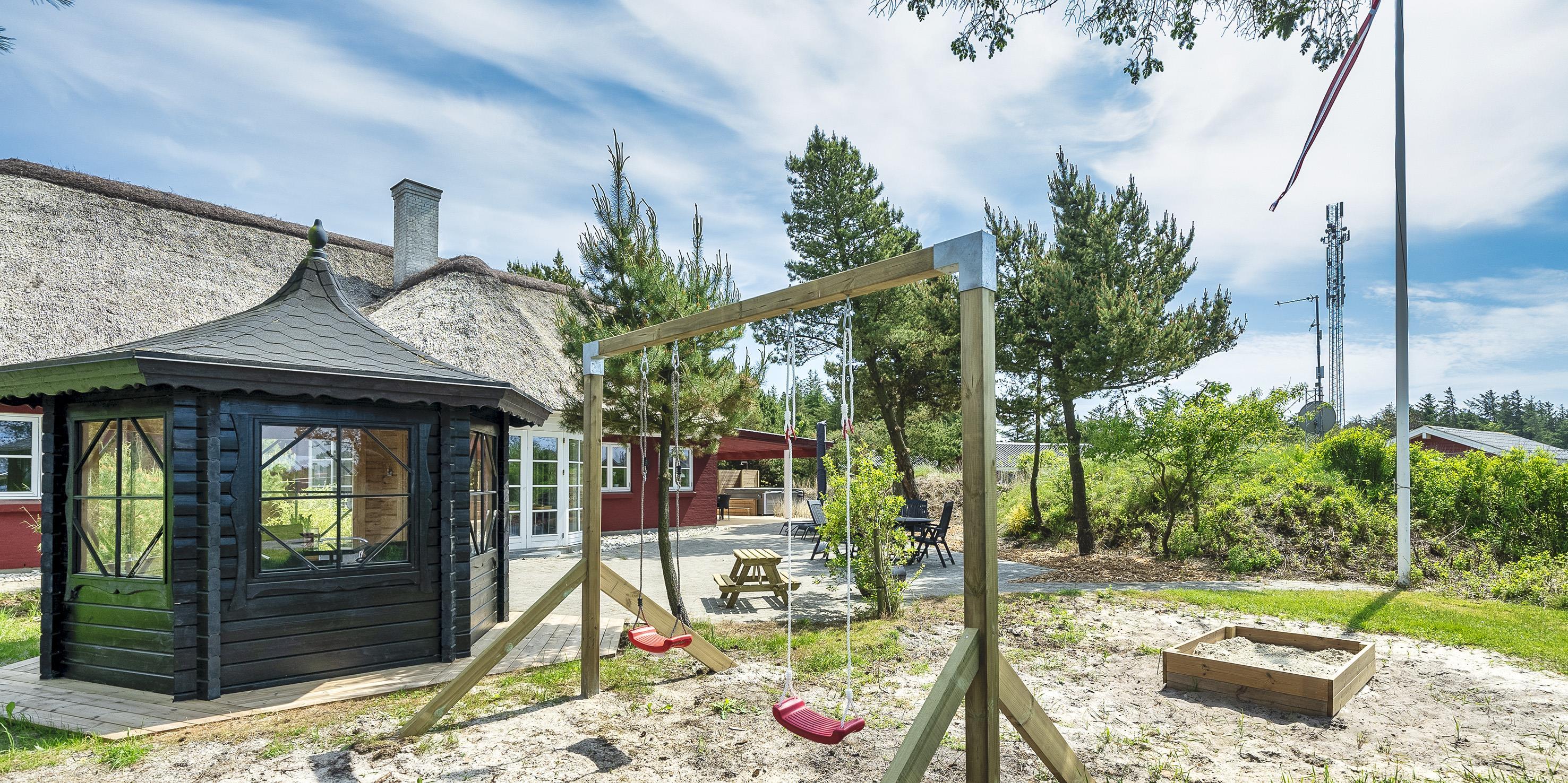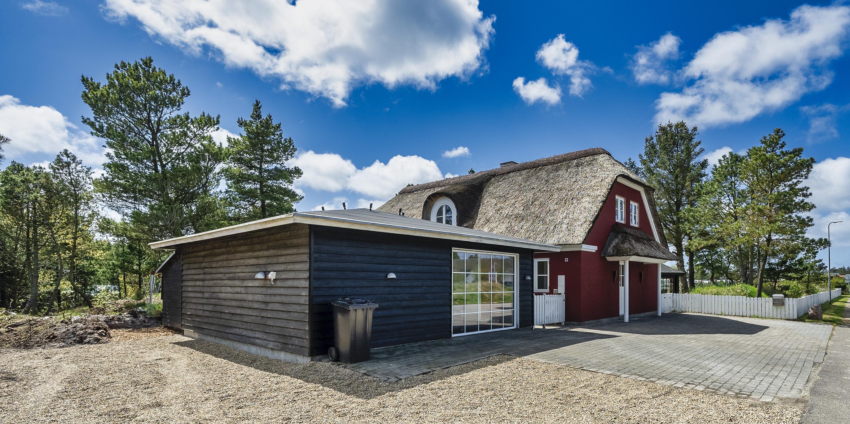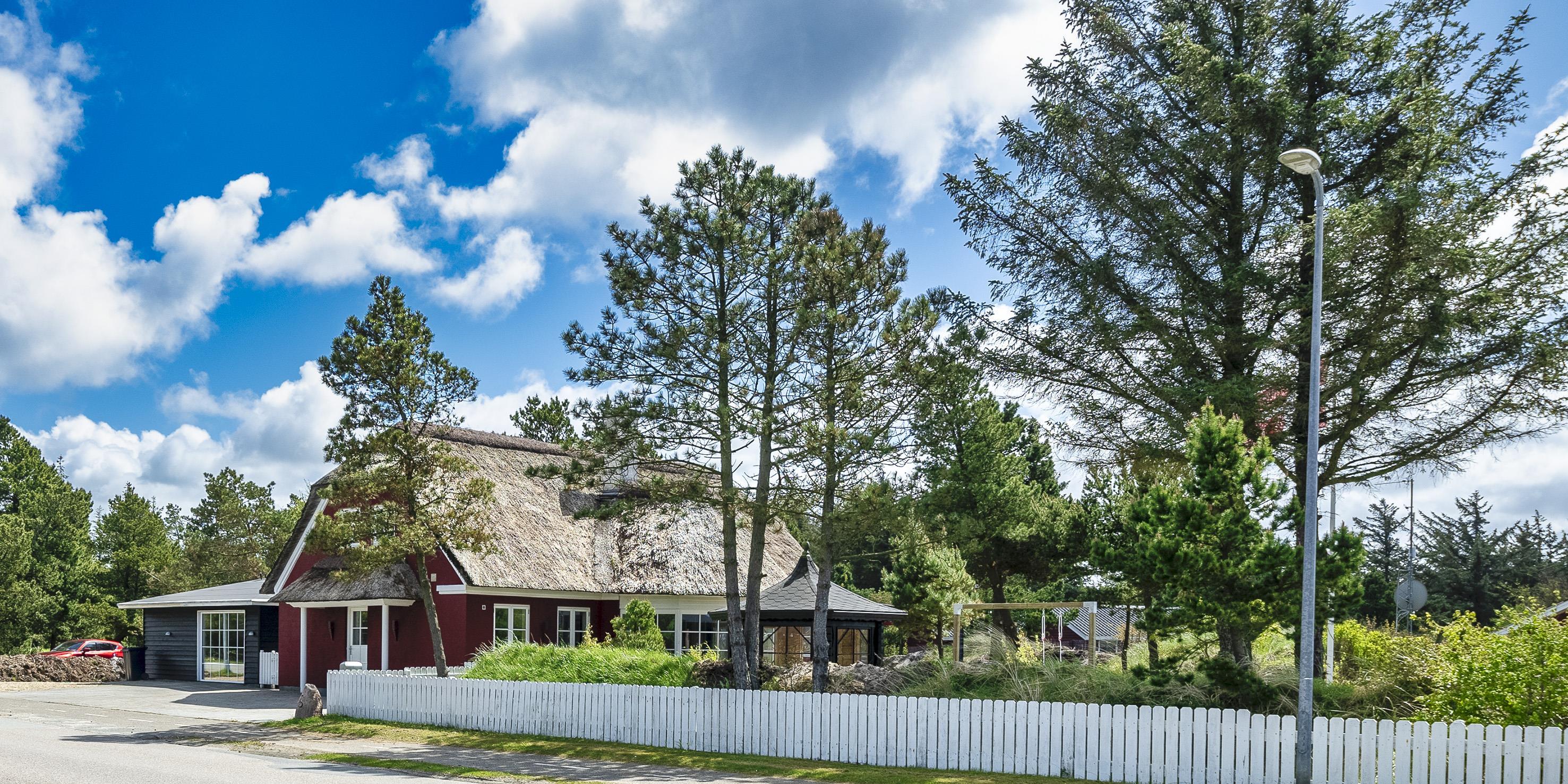 Nyrenoveret spændende aktivitets sommerhus i Vejers Strand. Sommerhuset et idyllisk stråtækt stenhus, med en spændende planløsning på 195 kvm. Huset ligger tæt på indkøb og restaurant. Få meter fra Vejers nordplantage og ca. 1850 meter fra stranden.