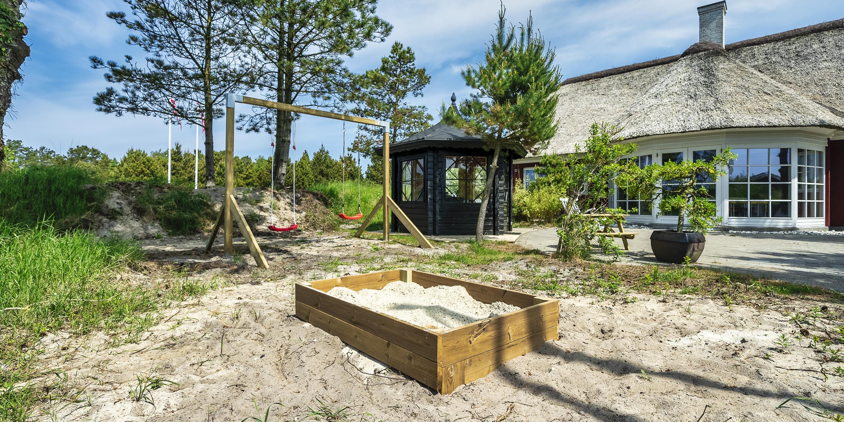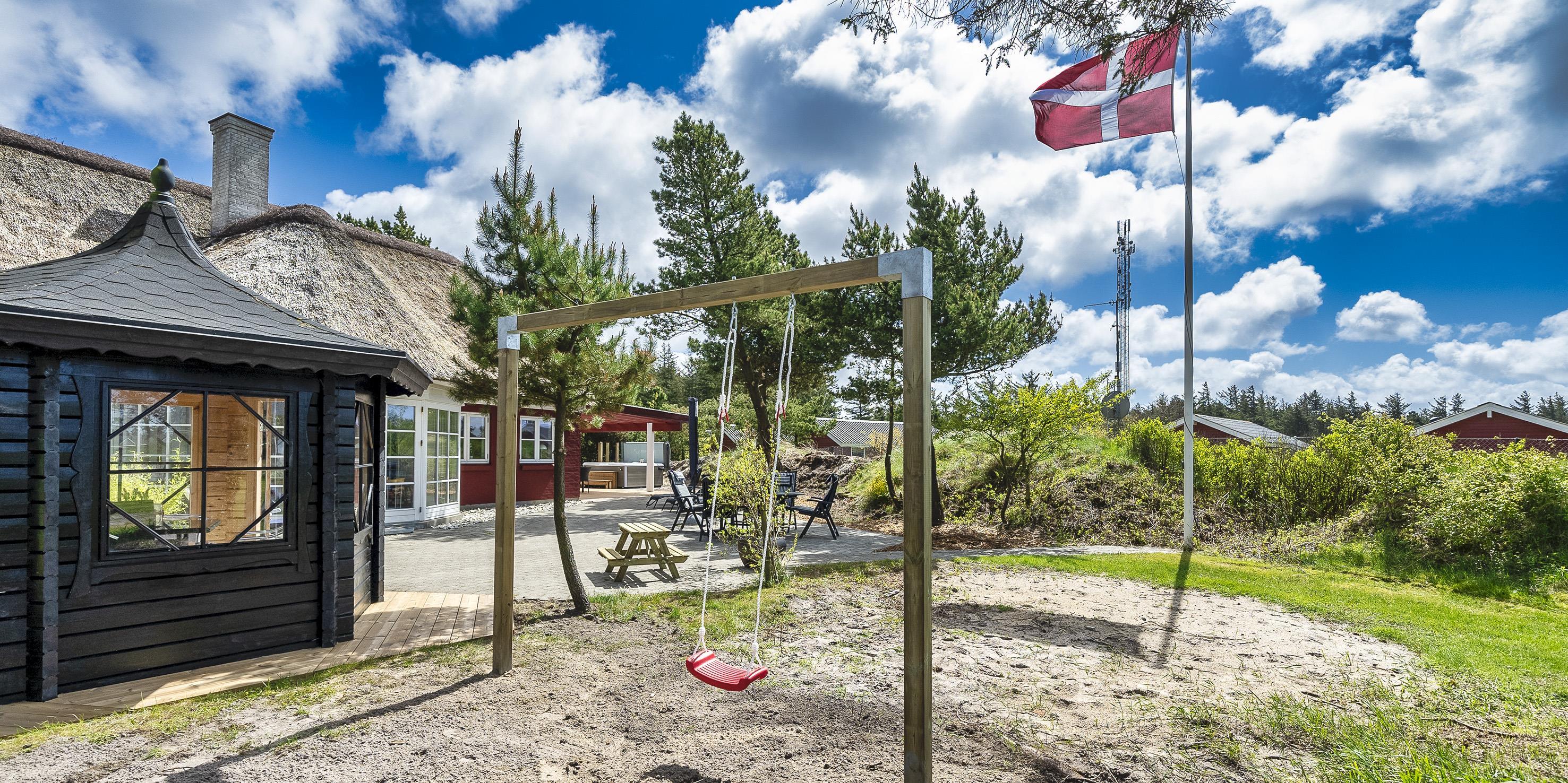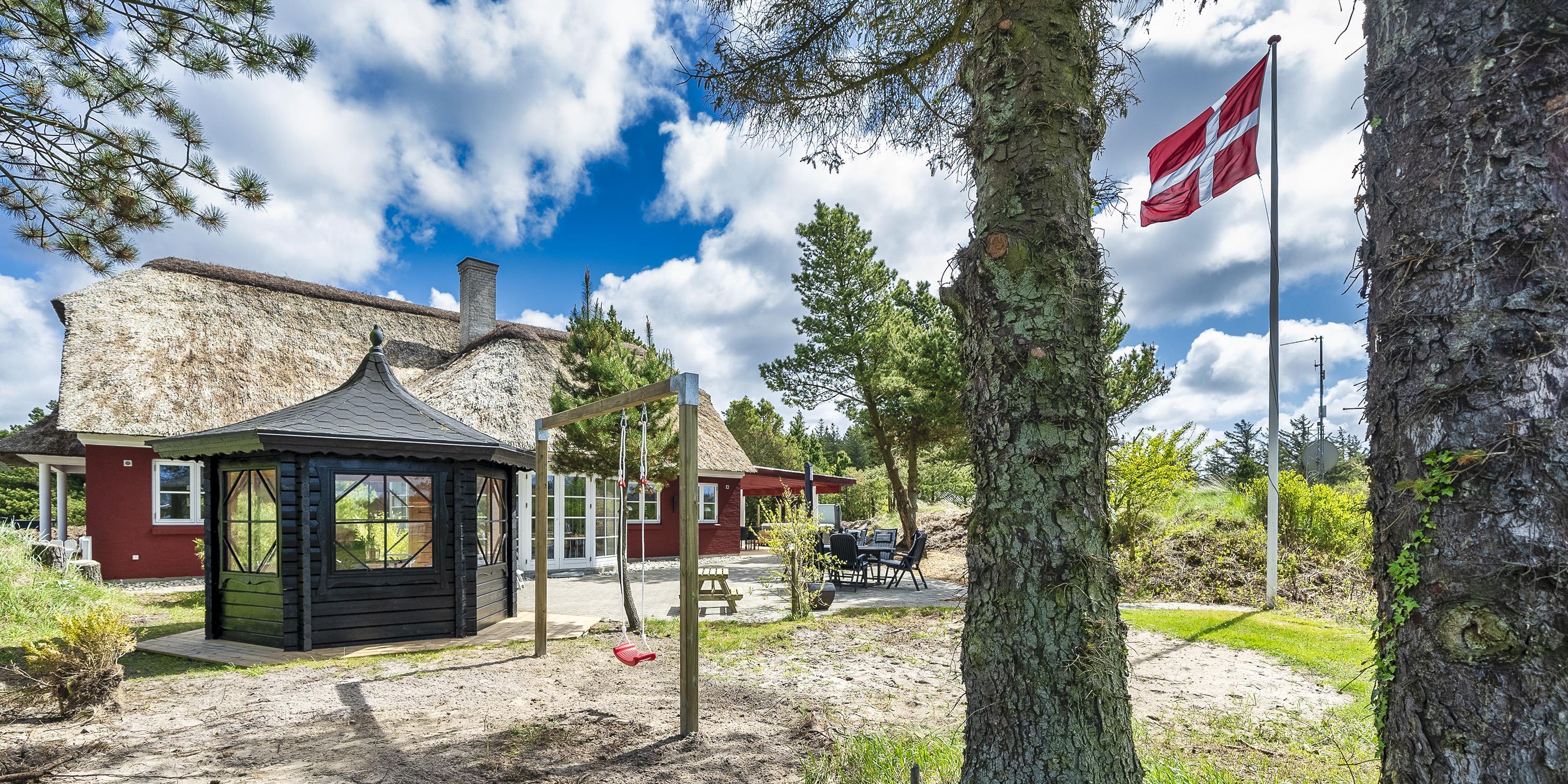 Nyrenoveret spændende aktivitets sommerhus i Vejers Strand. Sommerhuset et idyllisk stråtækt stenhus, med en spændende planløsning på 195 kvm. Huset ligger tæt på indkøb og restaurant. Få meter fra Vejers nordplantage og ca. 1850 meter fra stranden.