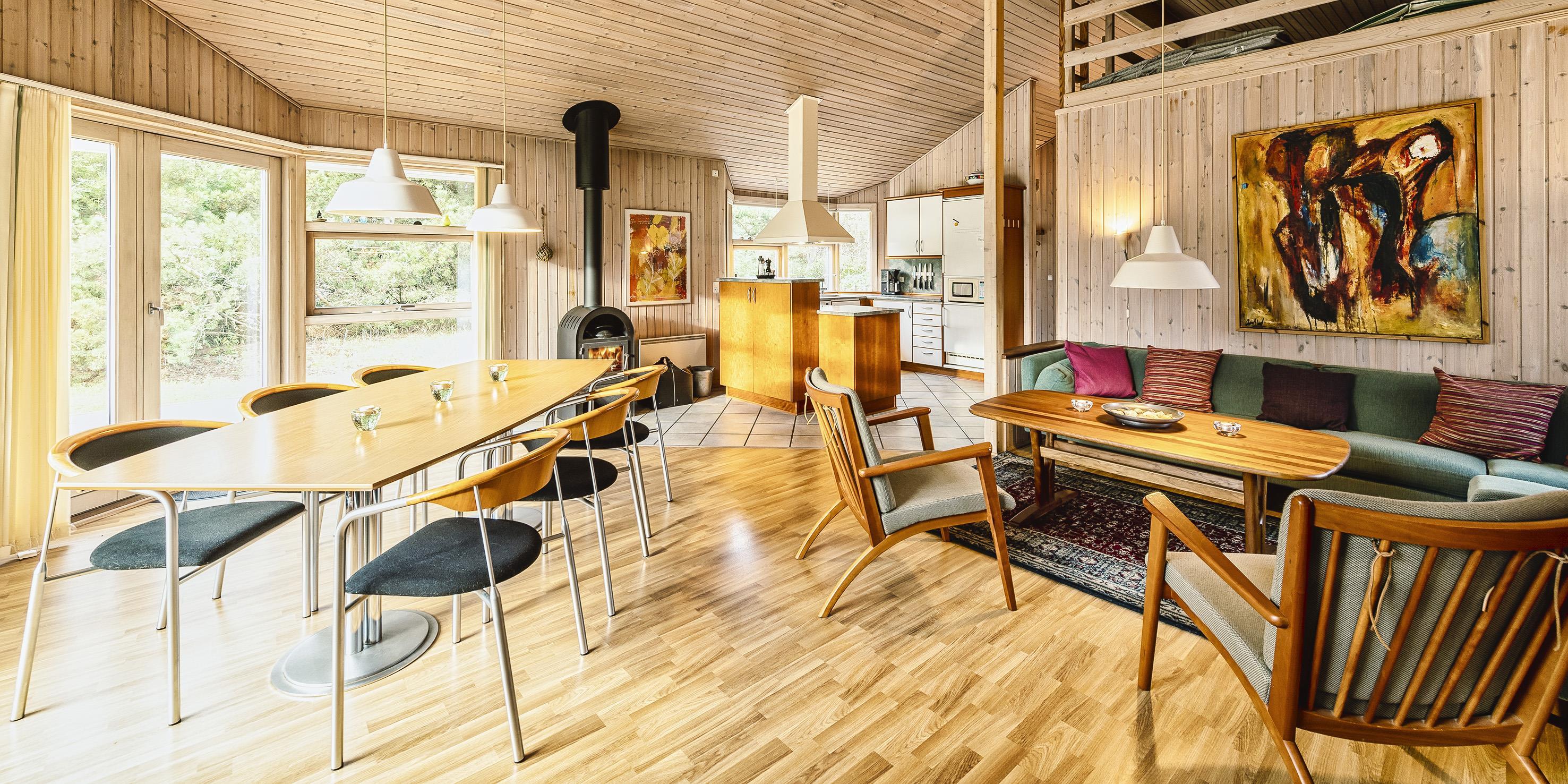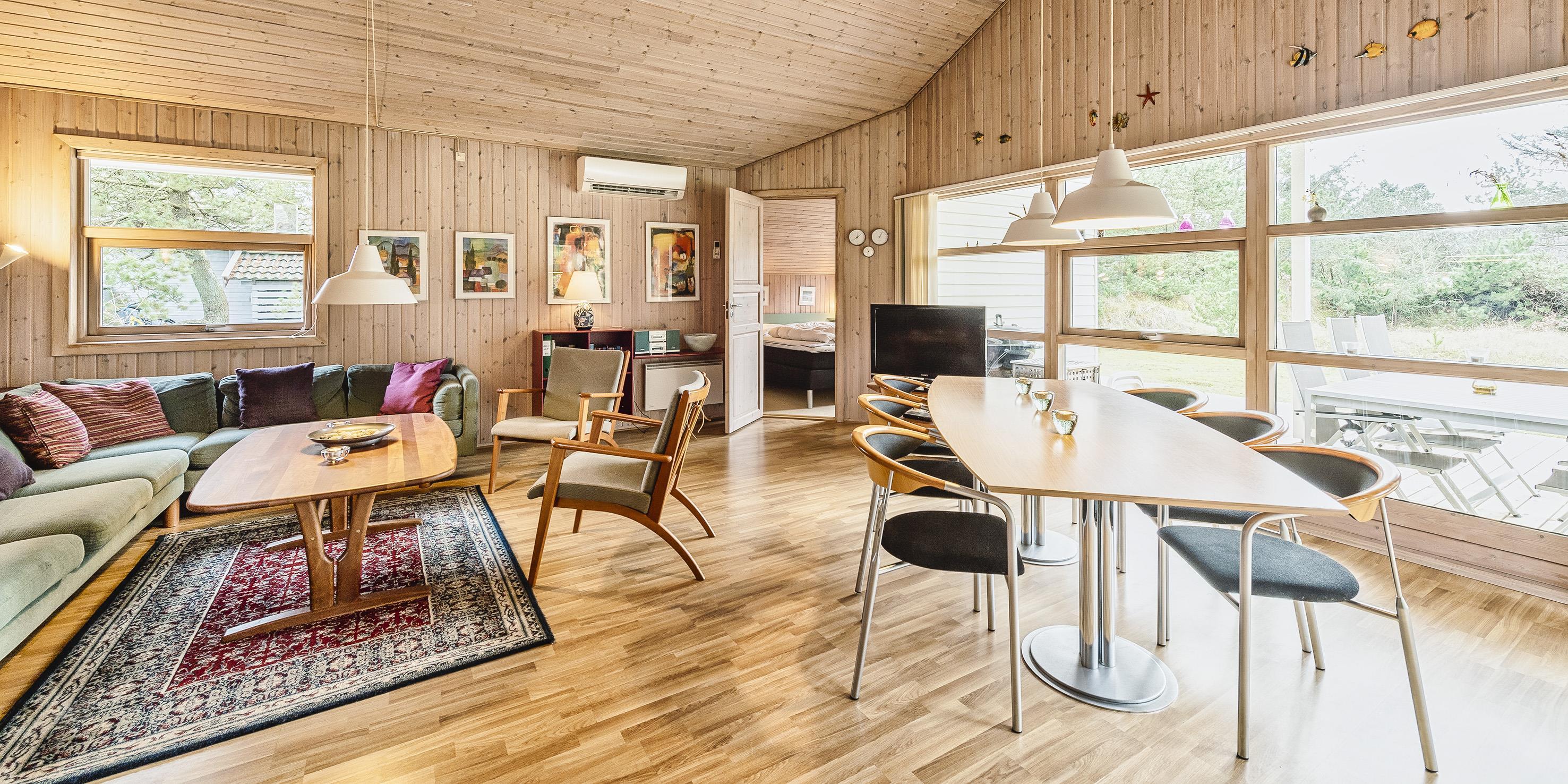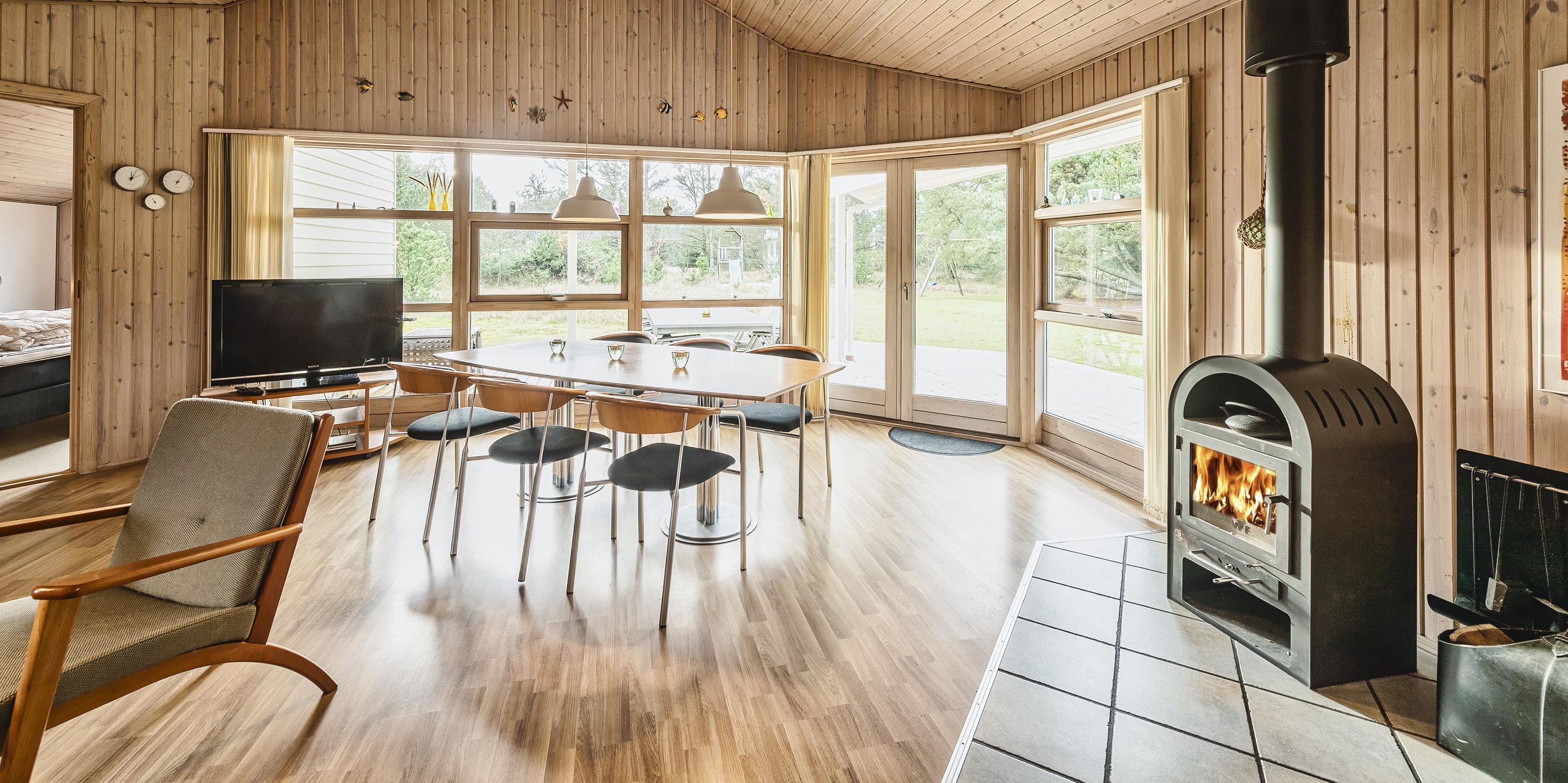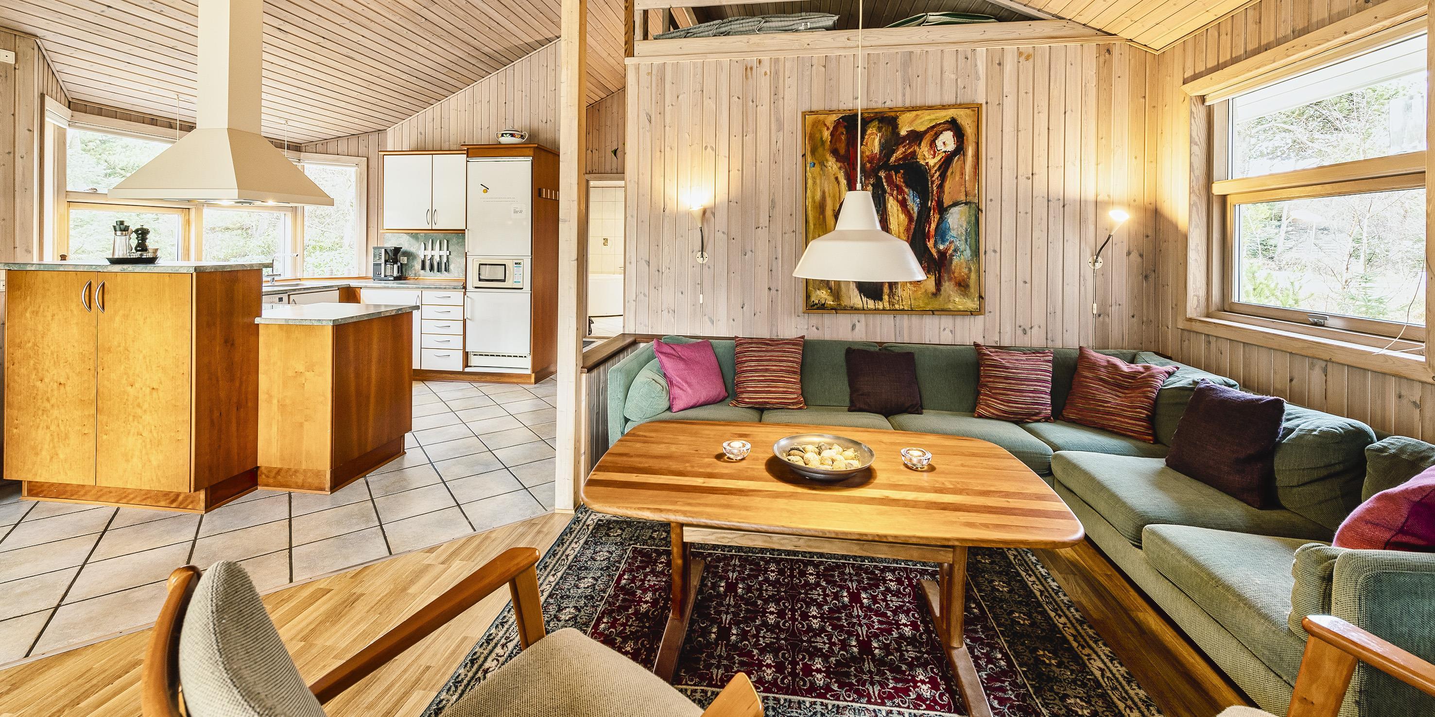 Smagfuldt sommerhus til 6 personer, beliggende på ugeneret naturgrund, ca. 1.500 meter fra stranden. Stue med brændeovn, DVD-afspiller, Google Chrome Cast, fjernsyn og parabol (ingen danske programmer). Varmepumpe. Åbent køkken med opvaskemaskine, køle-/fryseskab og mikroovn. Badeværelse med bruser/wc, spa og sauna. Vaskemaskine og tørretumbler. 3 soveværelser: DS + DS + 2S. Rygning er ikke tilladt. Stor terrasse. Legetårn i haven. Carport. Gratis træ til brændeovnen. Trådløs internet. Byggeår 2001.