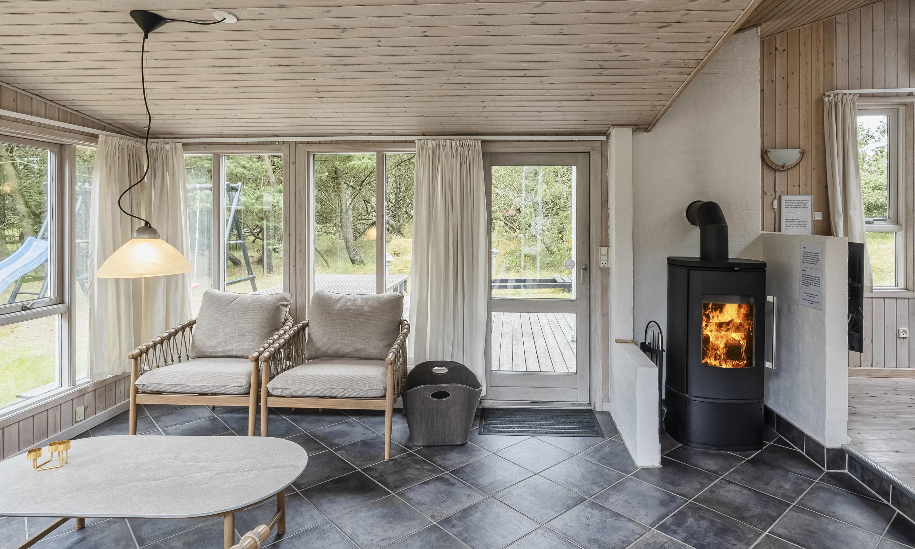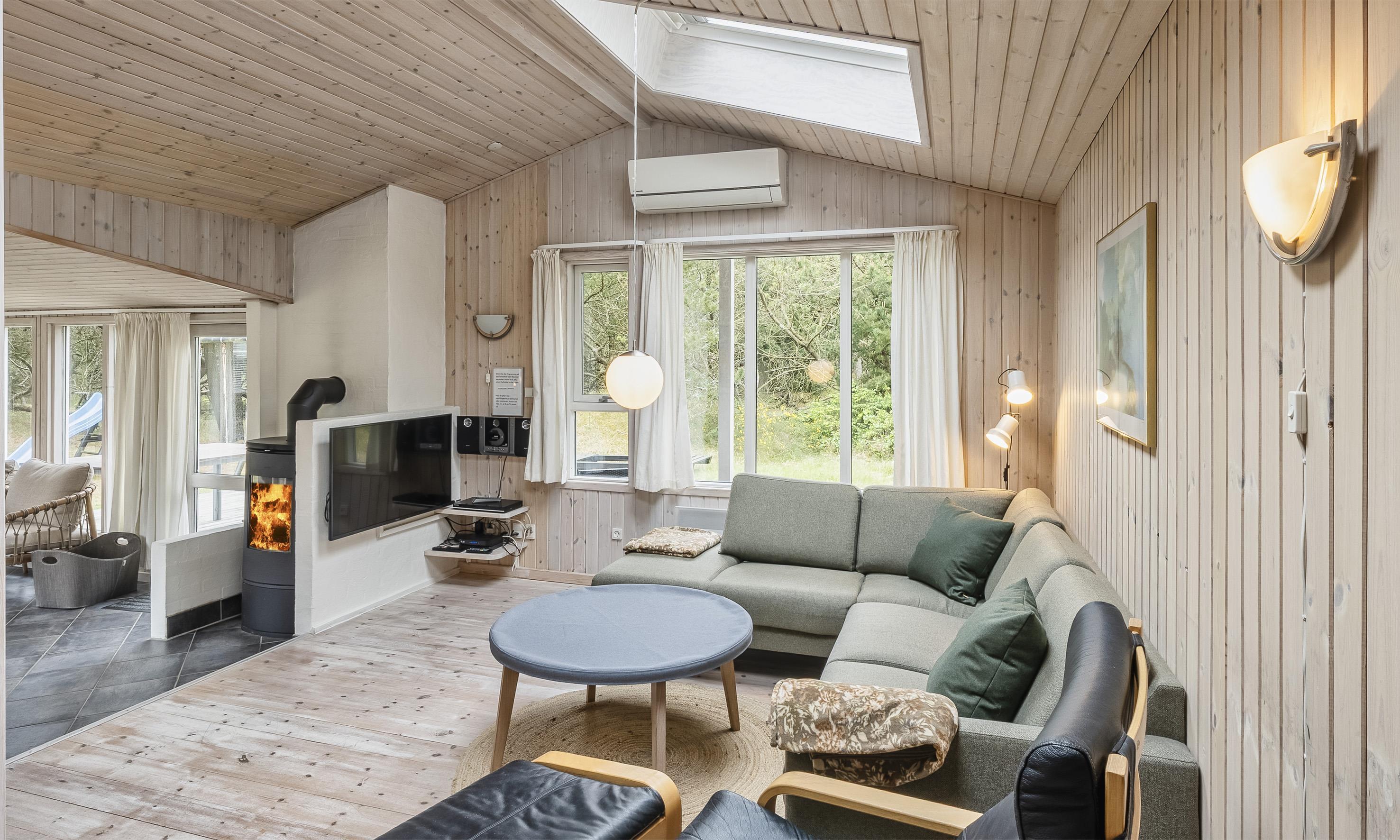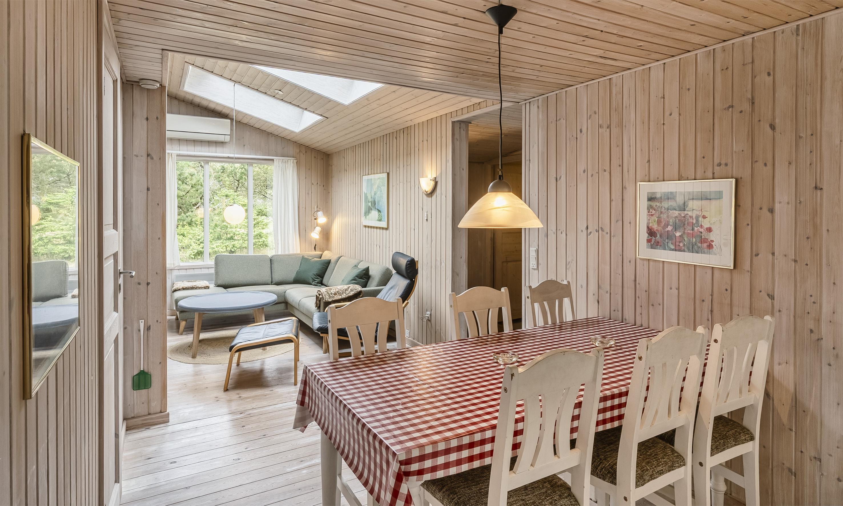 Smagfuldt sommerhus til 6 personer, beliggende på lukket naturgrund, ca. 1.000 meter fra stranden. Køkken med opvaskemaskine og spisestue. Stue med brændeovn, trådløs internet, fjernsyn og parabol (ingen danske programmer). Varmepumpe. Havestue. Badeværelse med bruser/wc. 3 soveværelser: DS + DS + 2S. Vaskemaskine, tørretumbler og sauna er placeret i annekset 10 meter fra huset. Terrasse. Husdyr er ikke tilladt - dog med undtagelse af én lille hund! Venligst bemærk: hunden må ikke være i møblerne eller sengene. Rygning er ikke tilladt i huset. Byggeår 1955, renoveret 2010. Ekstra udgift for vandforbrug!