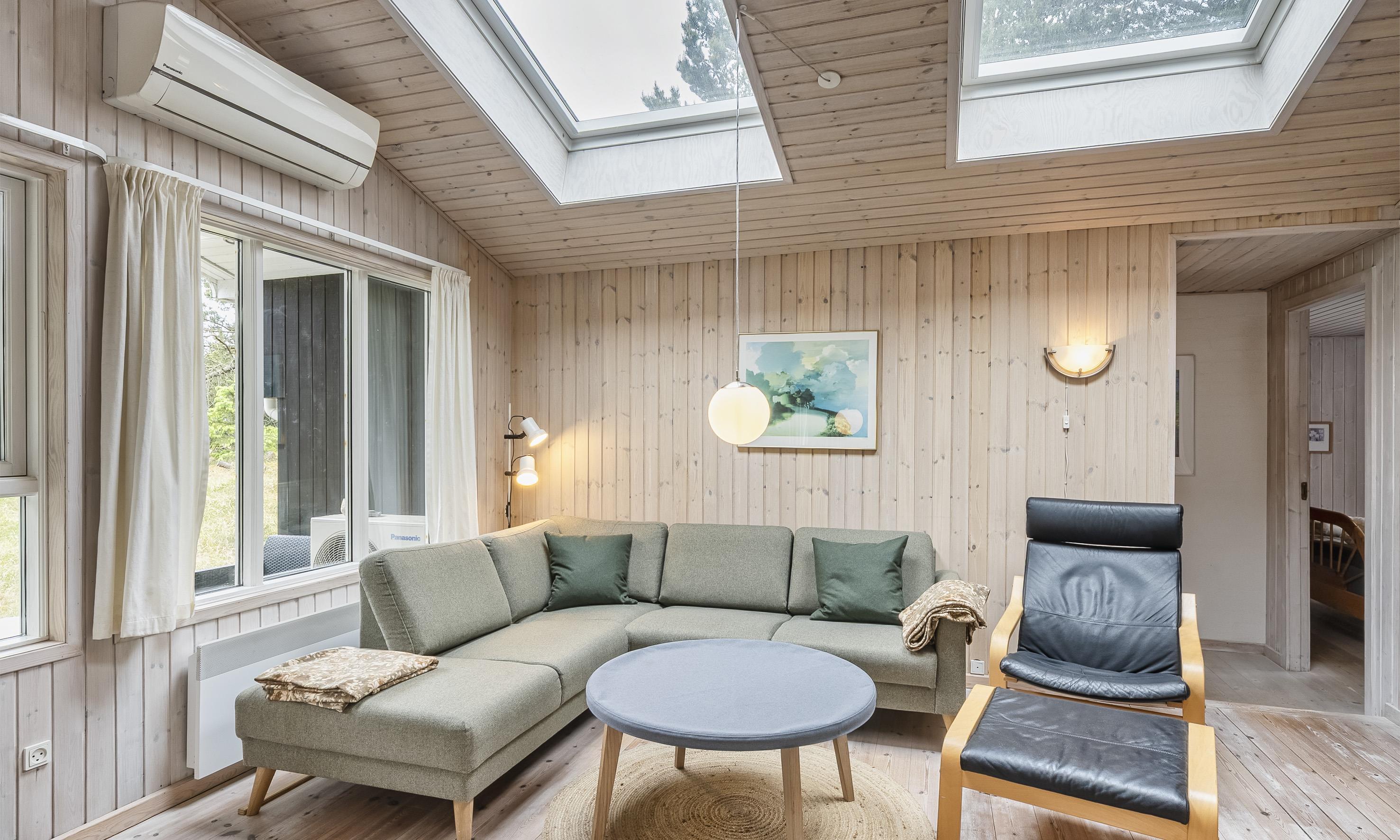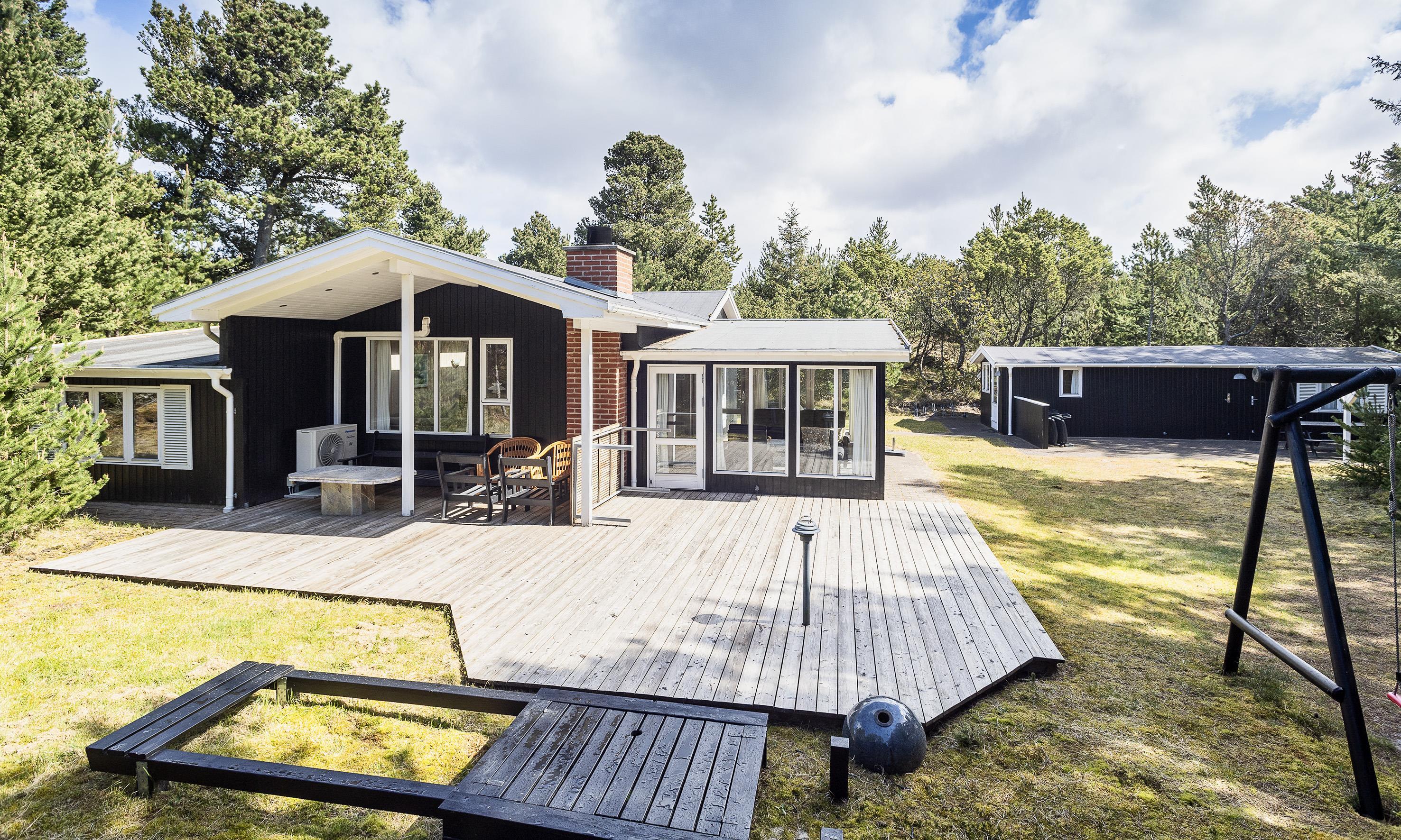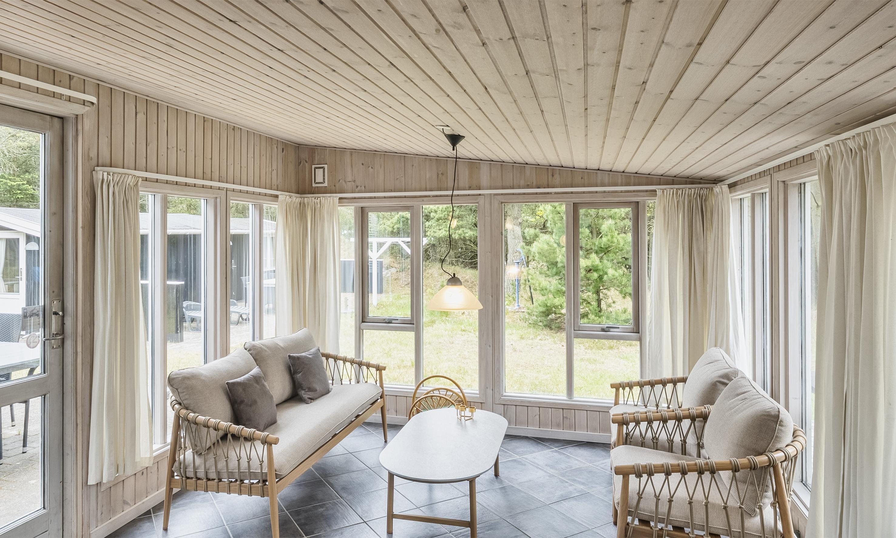 Smagfuldt sommerhus til 6 personer, beliggende på lukket naturgrund, ca. 1.000 meter fra stranden. Køkken med opvaskemaskine og spisestue. Stue med brændeovn, trådløs internet, fjernsyn og parabol (ingen danske programmer). Varmepumpe. Havestue. Badeværelse med bruser/wc. 3 soveværelser: DS + DS + 2S. Vaskemaskine, tørretumbler og sauna er placeret i annekset 10 meter fra huset. Terrasse. Husdyr er ikke tilladt - dog med undtagelse af én lille hund! Venligst bemærk: hunden må ikke være i møblerne eller sengene. Rygning er ikke tilladt i huset. Byggeår 1955, renoveret 2010. Ekstra udgift for vandforbrug!