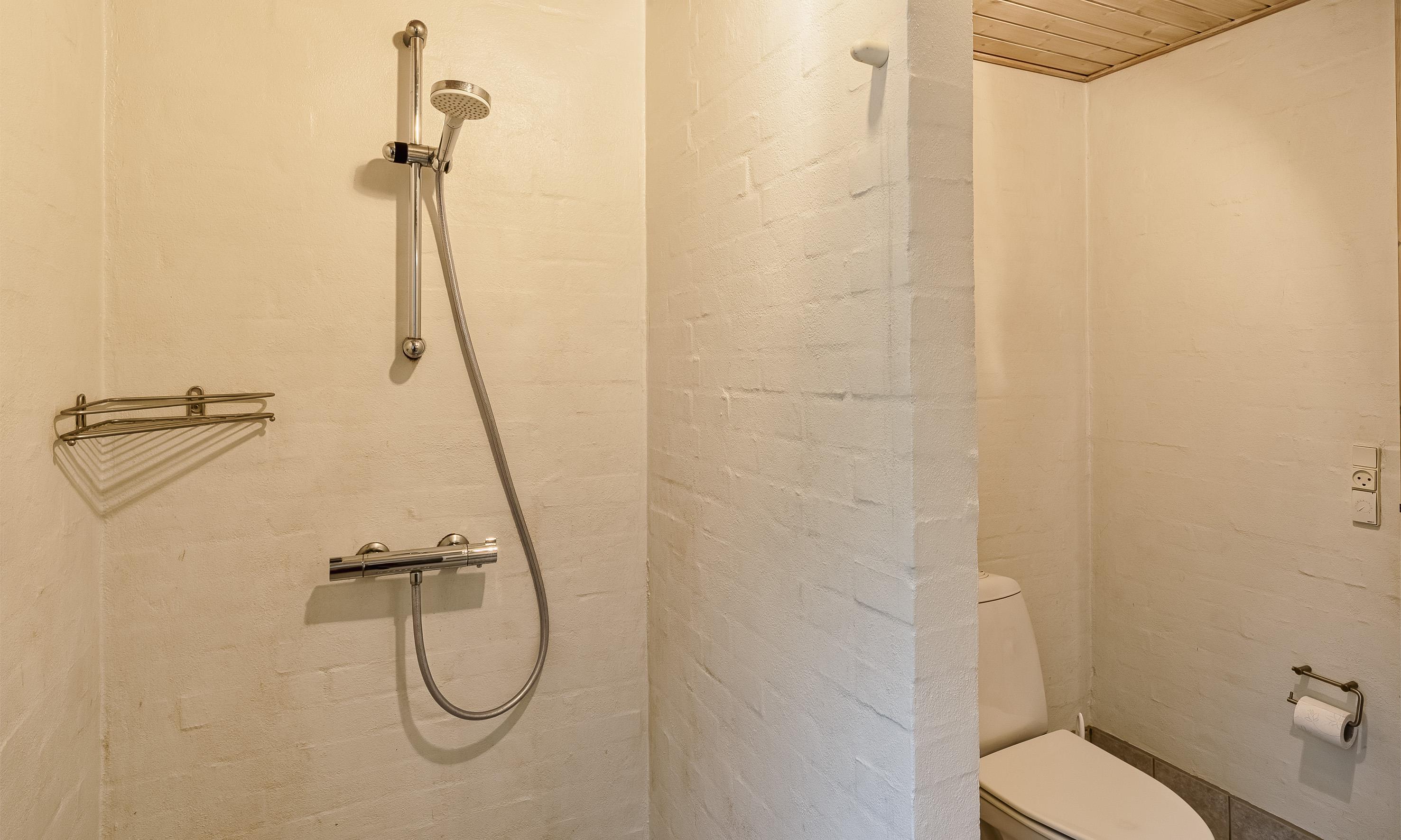 Bad med toilet, bruser og vask