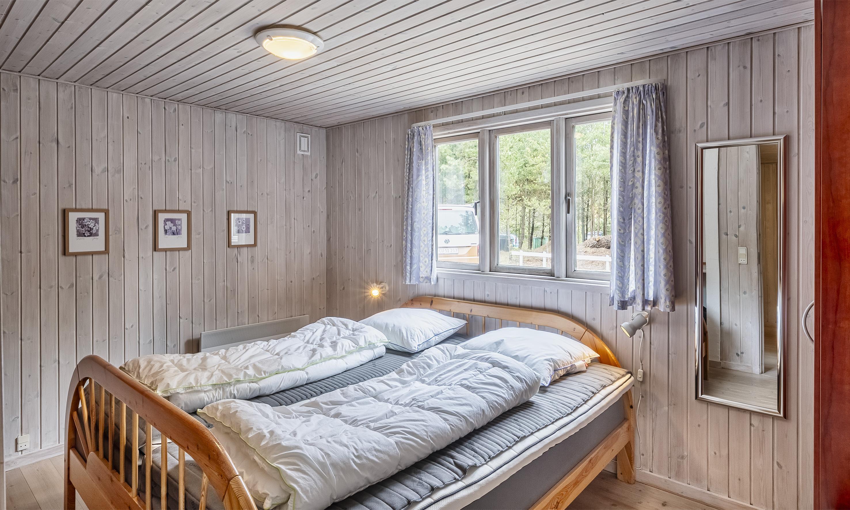 3 soveværelser. 2 med dobbeltseng 180x200 cm. 1 med 2 enkeltsenge (á 90x200 cm)