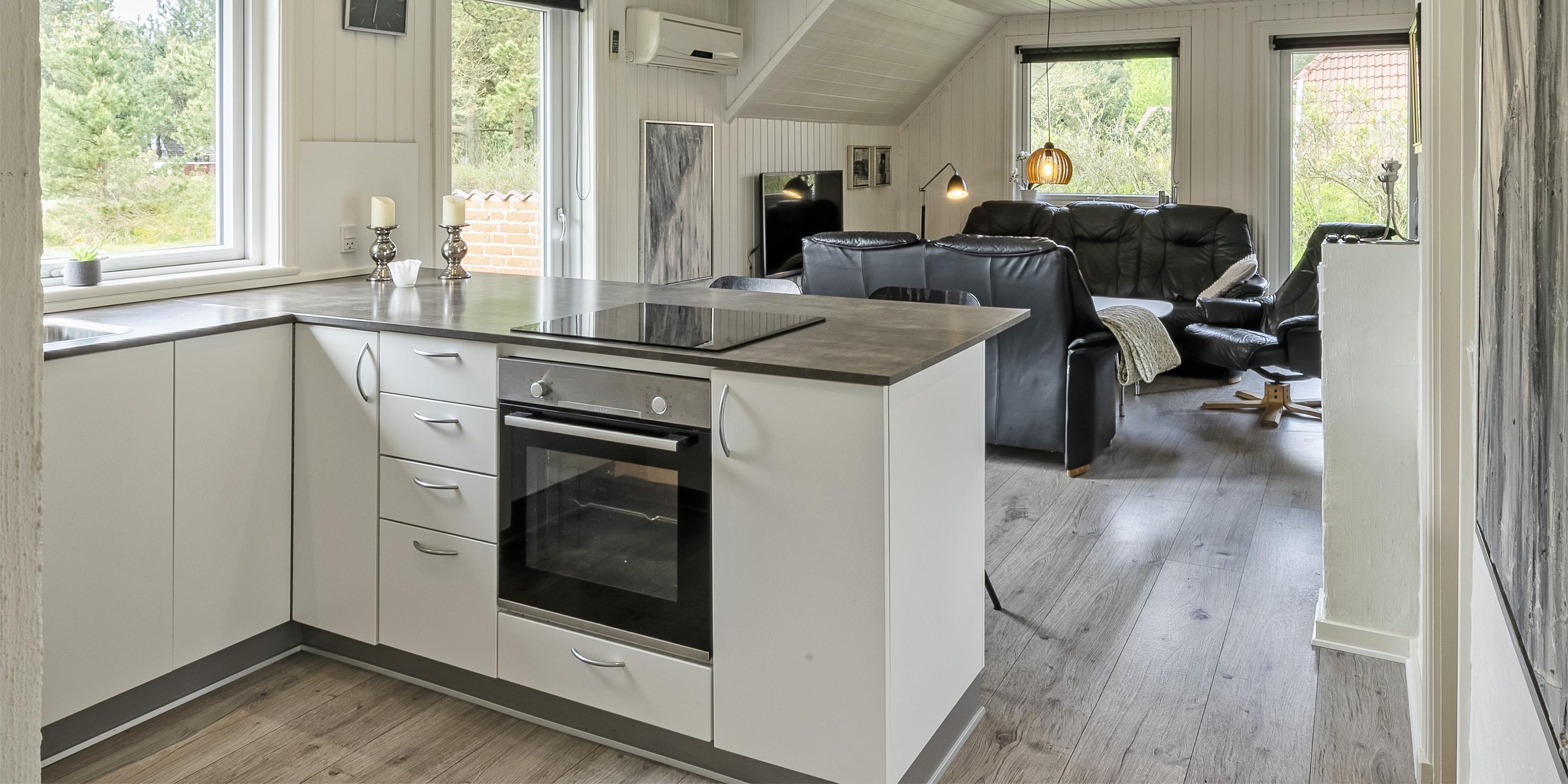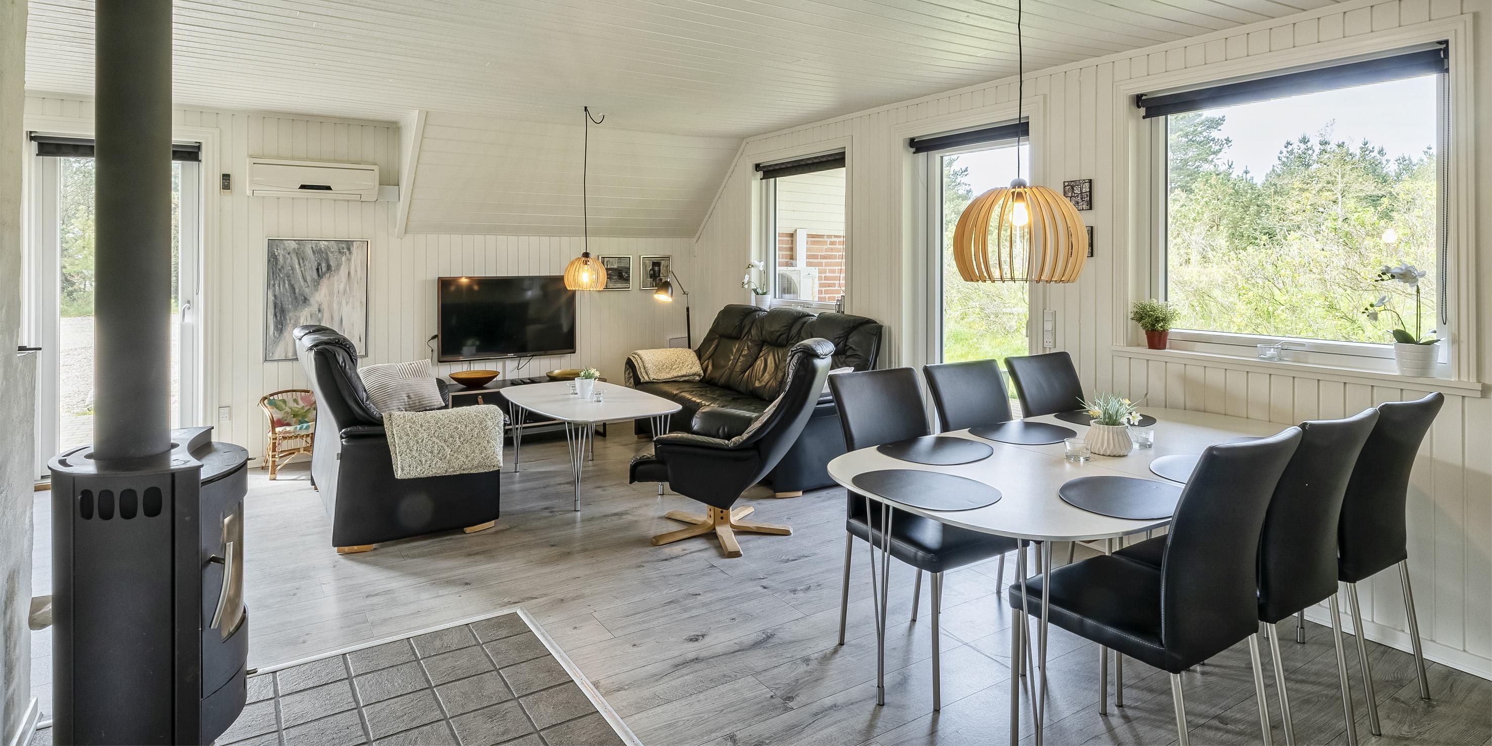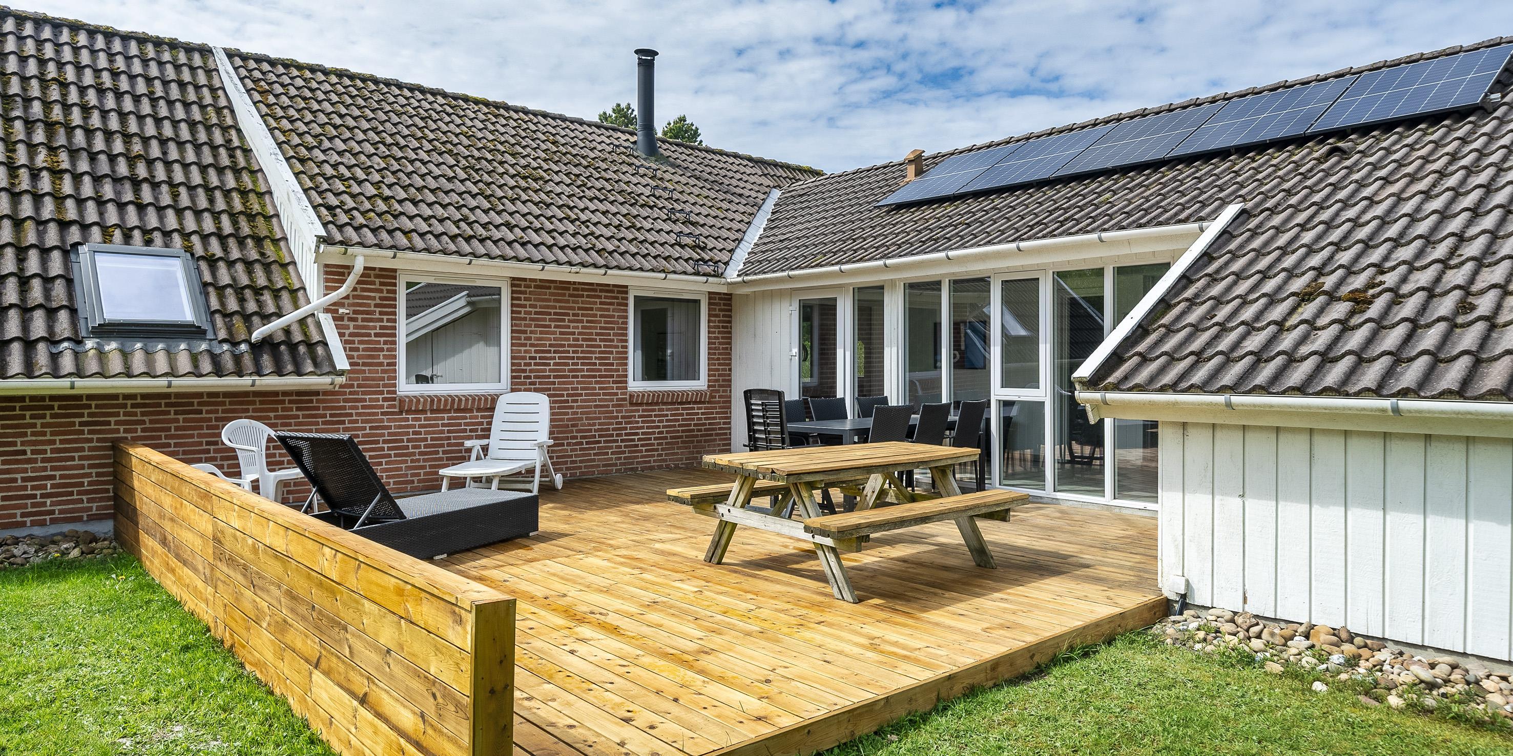Huset indeholder: Indgang igennem stor entre med vaskemaskine, tørretumbler og god plads til garderoben. Herfra er der adgang til 2 værelser, ét med en dobbeltseng og ét værelse med en smal dobbeltseng. Nyt badeværelser med bruser/wc og vaskearrangement, der er kun adgang til badeværelset igennem værelset med den smalle dobbeltseng. Fra entreen kommer man over i huset opholdsrum med nyere køkken med køle-/fryseskab, opvaskemaskine, indbygningsovn, keramiskkogeplade og mikroovn. Dejlig lys stue i åben forbindelse med køkkenet. Stuen er indrettent med brændeovn, fjernsyn, parabol og Chromecast (ingen danske programmer). Trådløs Internetadgang. Spisestue afdeling med udgang til vestvendt terrasse samt kig til poolrummet. Poolrummet er med ca. 5,4 x 3,5 x 1,15 meter (længde x brede x dybde) stor bassin og spa til selvbetjening. Huset har luft til vand varmepumpe til opvarmning af poolen for reduktion af strømforbruget. Badeværelse med toilet, bruser, vaskearrangement og sauna. Huset byder ydermere på 2 soveværelser med hver 1 smal dobbeltseng. 4 soveværelser: DS + DS + DS + DS. De udvendige forhold byder på flere små terrasser, så både mogen middag og aftensolen kan nydes på et af terrasserne. Der forefindes en sandkasse og en gynge til de mindre børn. Adgang til Oksbøl Badeland 2026. Huset er tilladt med max. 2 hunde. Rygning er ikke tilladt i huset! Byggeår 1986, renoveret 2019 og 2020.