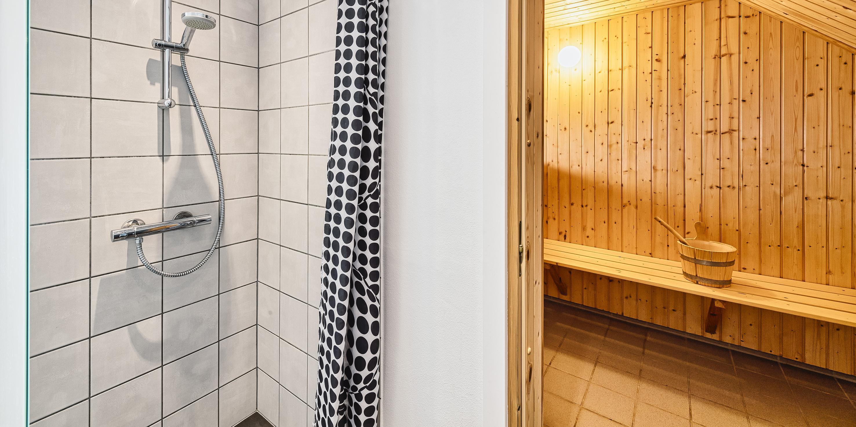 4 soveværelser. 1 med dobbeltseng 180x200 cm. 3 med smal dobbeltseng ( 140x200 cm)