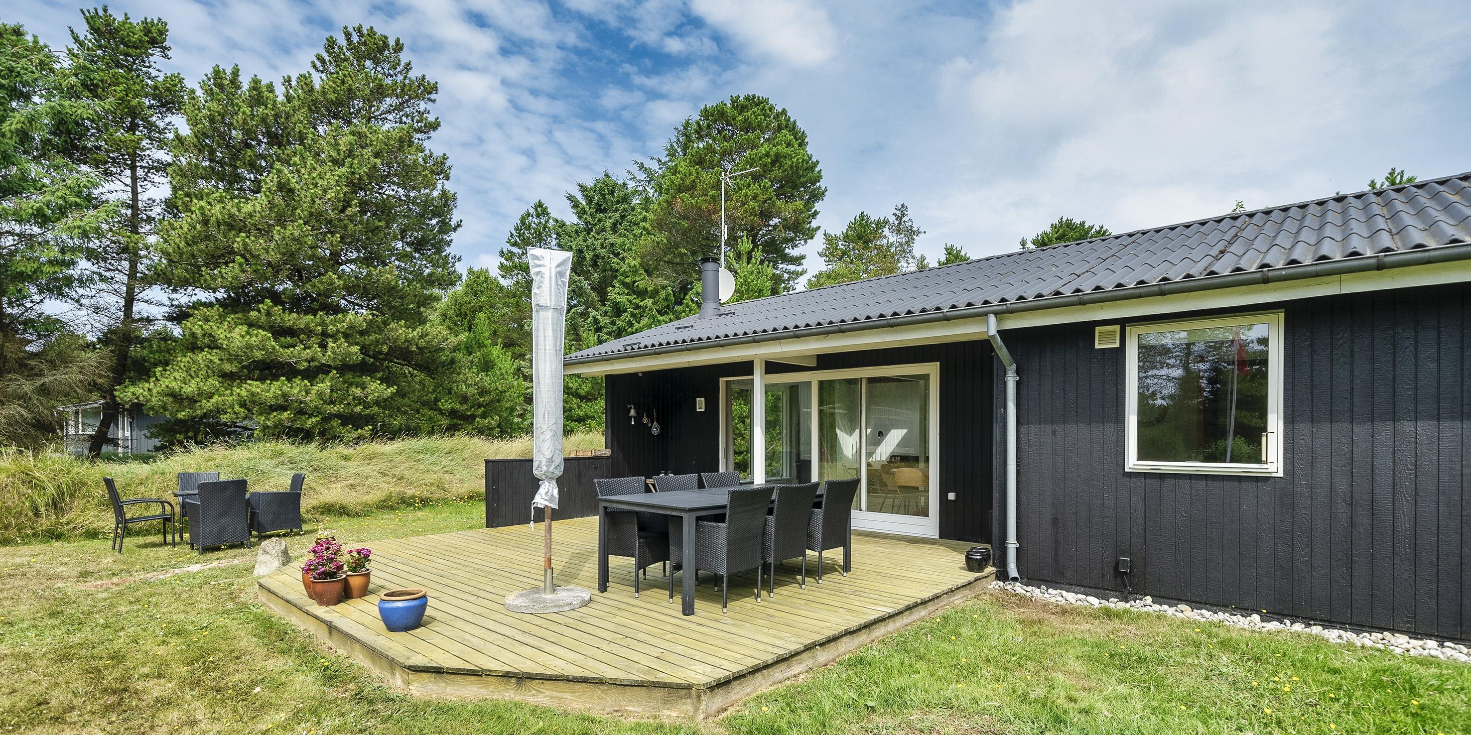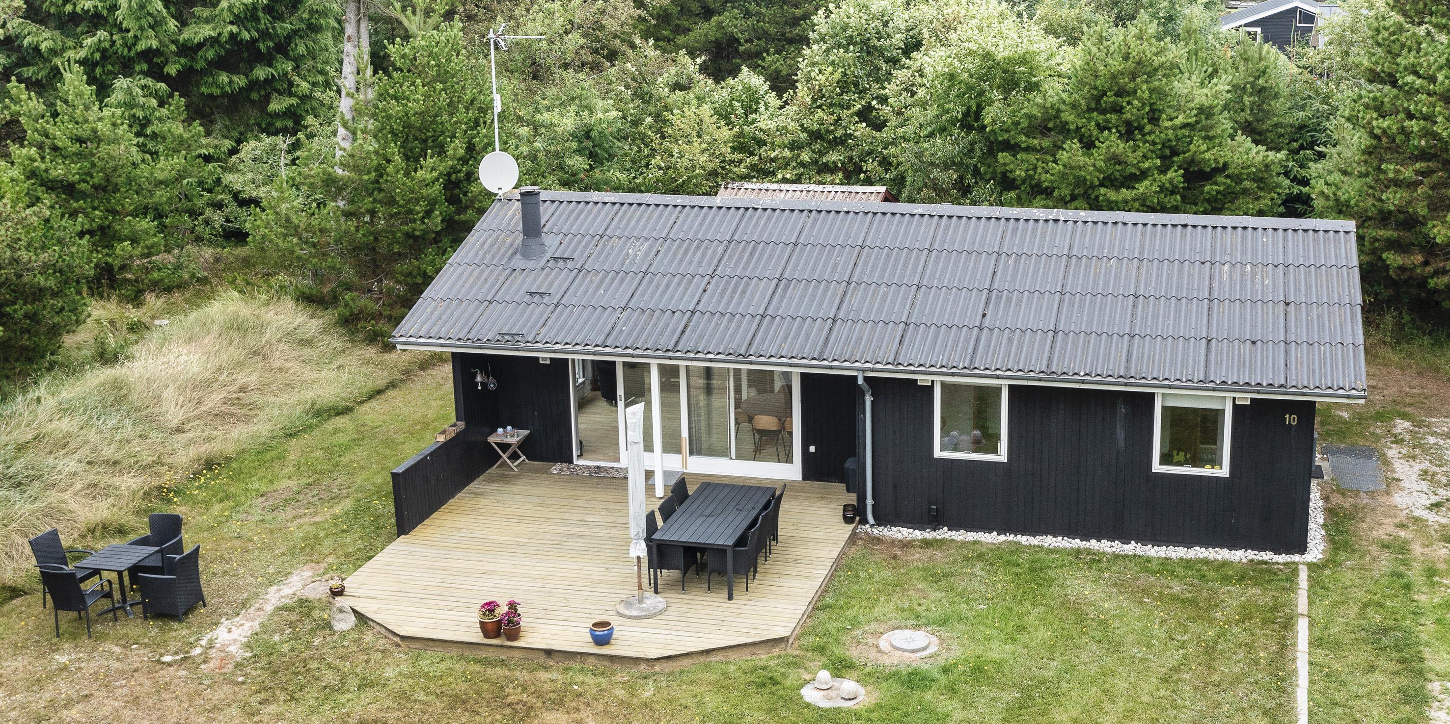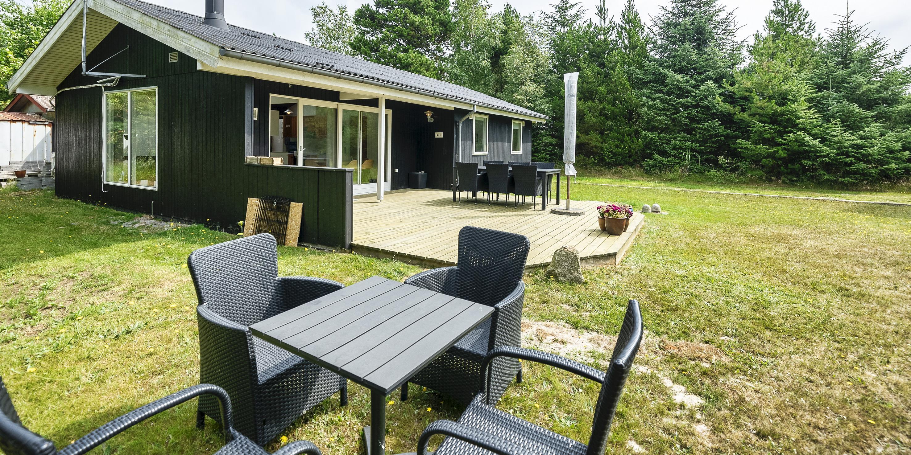 Hyggeligt sommerhus til 6 personer, beliggende på naturskøn delvis lukket grund, ca. 1.800 meter fra stranden. Stue med brændeovn, fjernsyn og parabol (DR programmer). Køkken med opvaskemaskine, køle-/fryseskab og mikroovn. Ny renoveret badeværelse med bruser/wc. Vaskemaskine. 3 soveværelser: DS + 2S + 2S. Terrasse. På grunden er der en shelter med mulighed hygge og overnatning. Sandkasse. Varmepumpe. Trådløs Internetadgang. Rygning er ikke tilladt. Byggeår 1979.