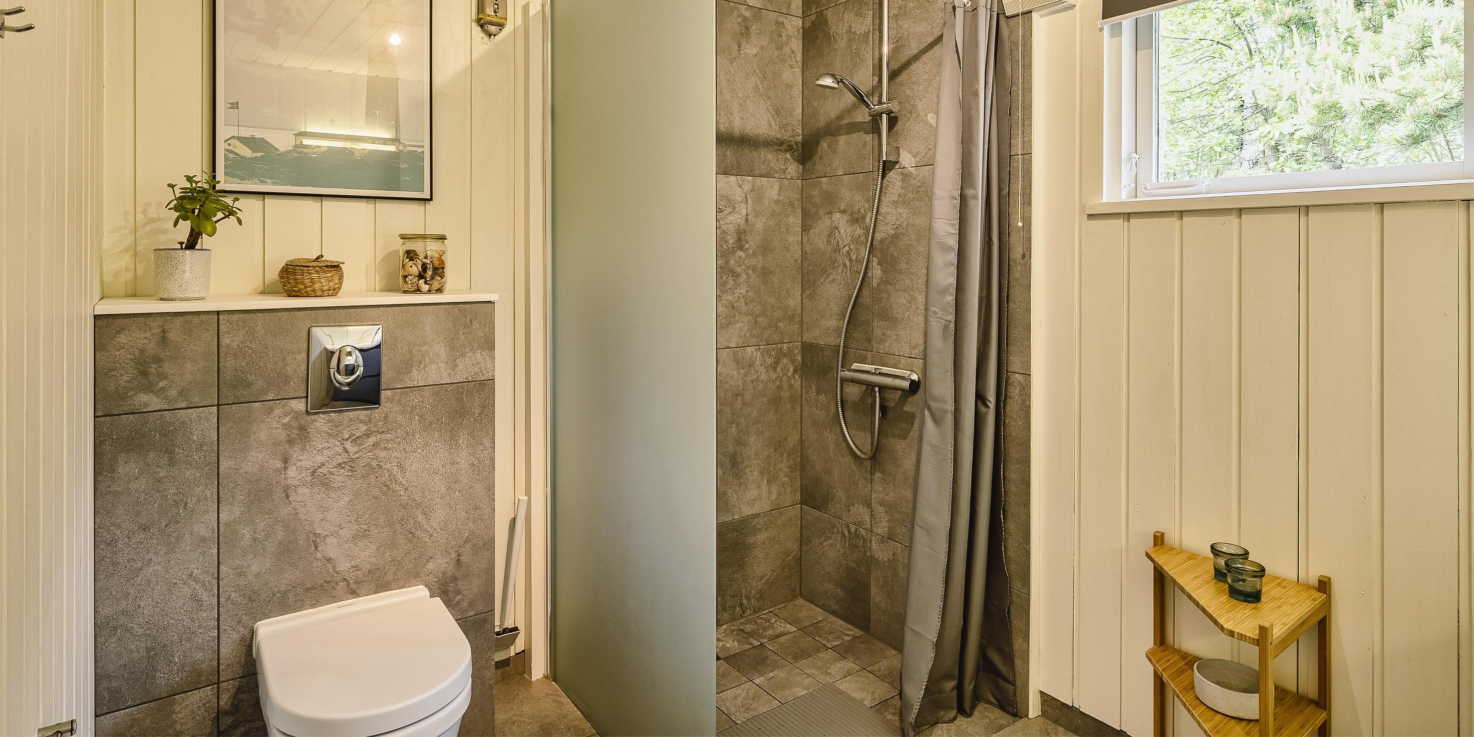 Bad med toilet, bruser og vask