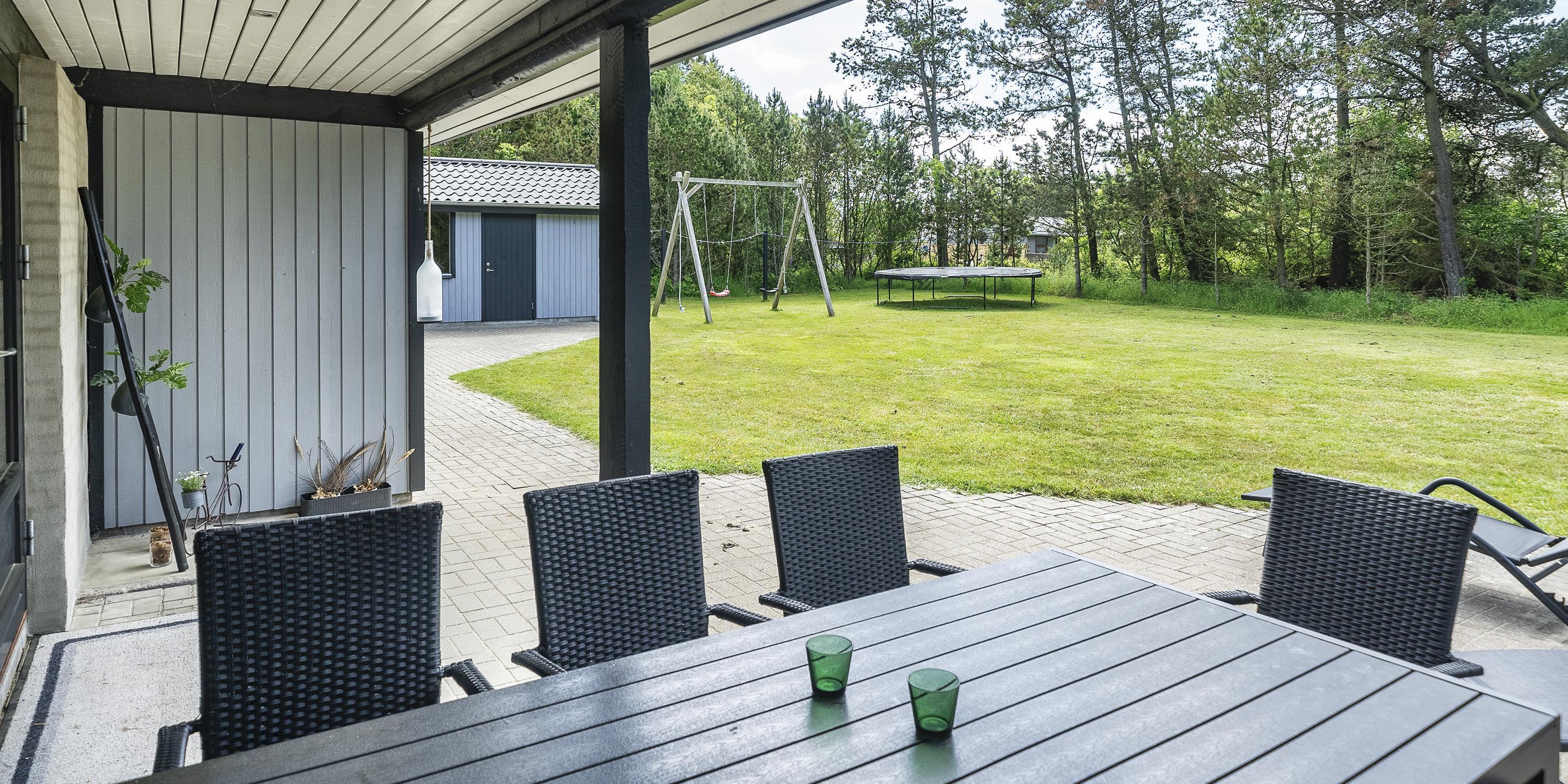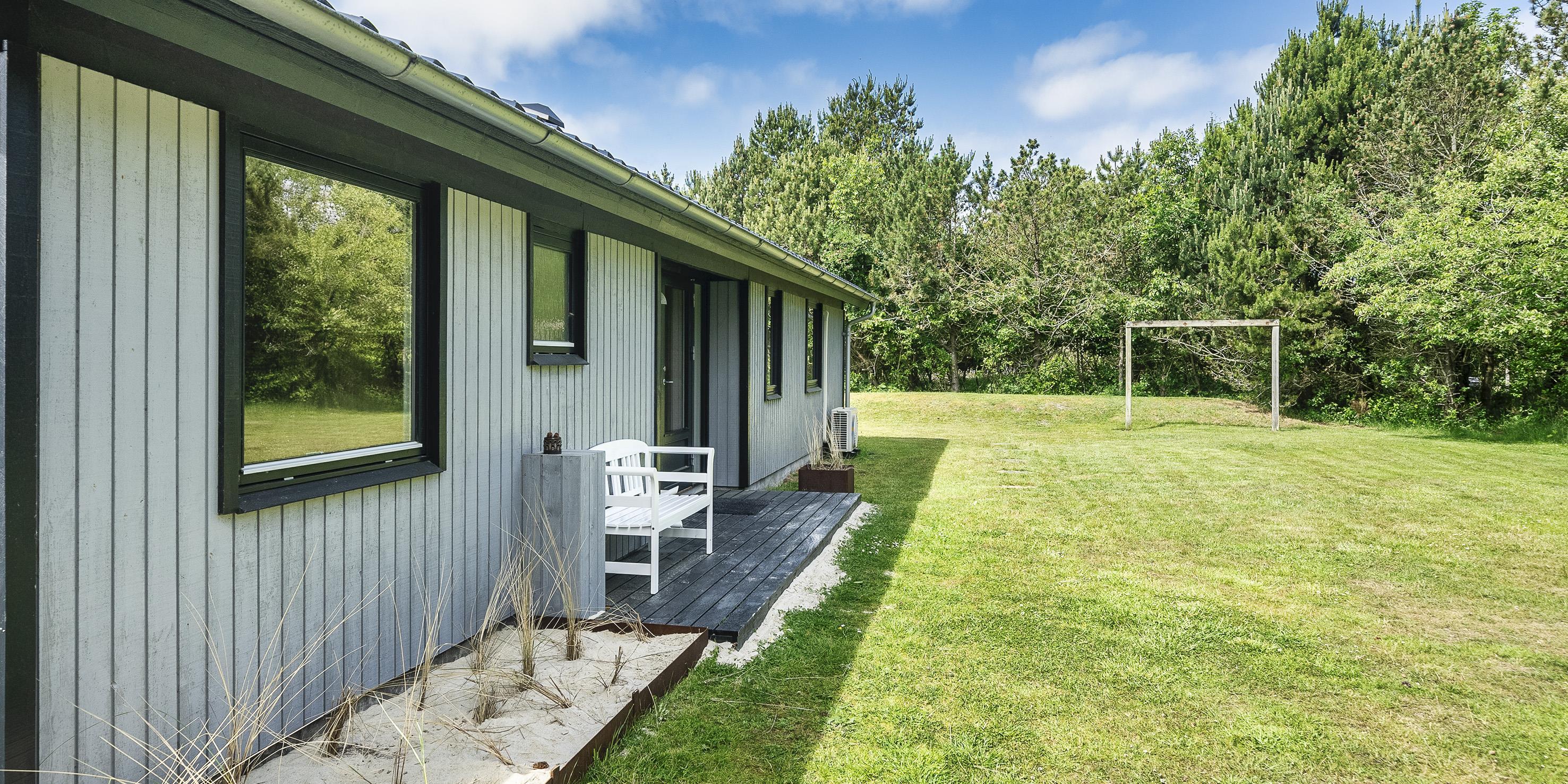 Dejligt og rummeligt sommerhus til 7 personer. Huset er beliggende på en skøn lukket grund, tæt ved skovområde, hvor der er gode stiforbindelse indtil Vejers sydlige plantagehede. Grunden er en stor naturgrund på 1733 kvm som er omkranset med fyrtræer.