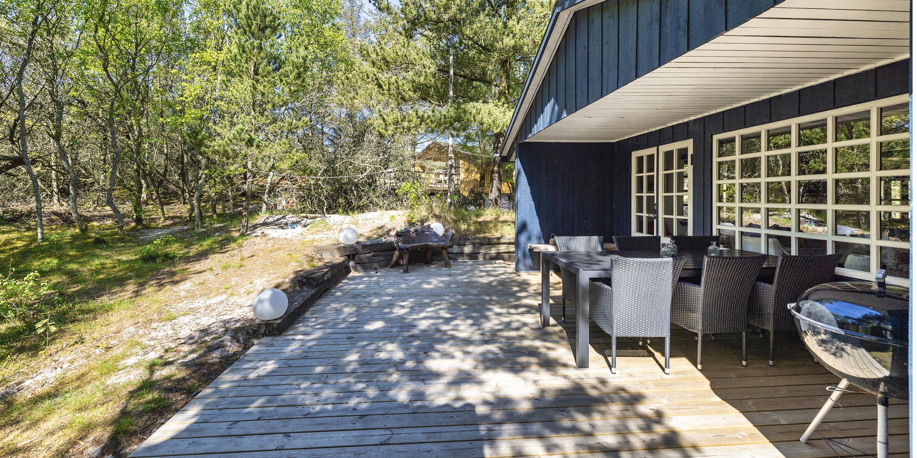 Hyggeligt sommerhus til 6 personer, beliggende på naturskøn skovgrund, ca. 900 meter fra stranden. Stue med brændeovn og fjernsyn , chromecast samt køkken med opvaskemaskine og mikroovn. 3 soveværelser: DS + DS + KS. Ny badeværelse med bruser/wc (renoveret 2020), vaskemaskine og tørretumbler. Terrasse. Husdyr er ikke tilladt - dog med undtagelse af én lille hund! Rygning er ikke tilladt. Byggeår 1963. Hus er løbende renoveret. Trådløs Internet.