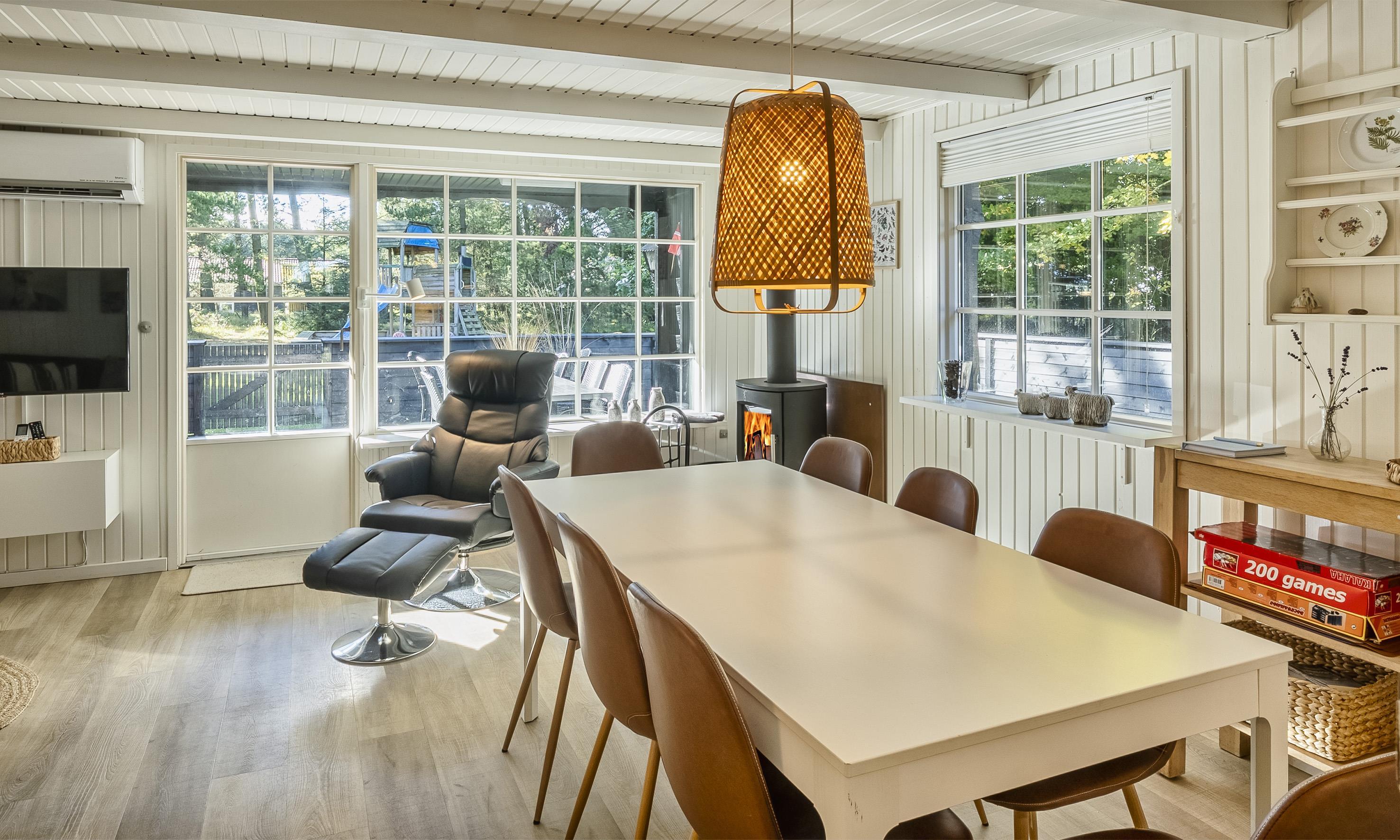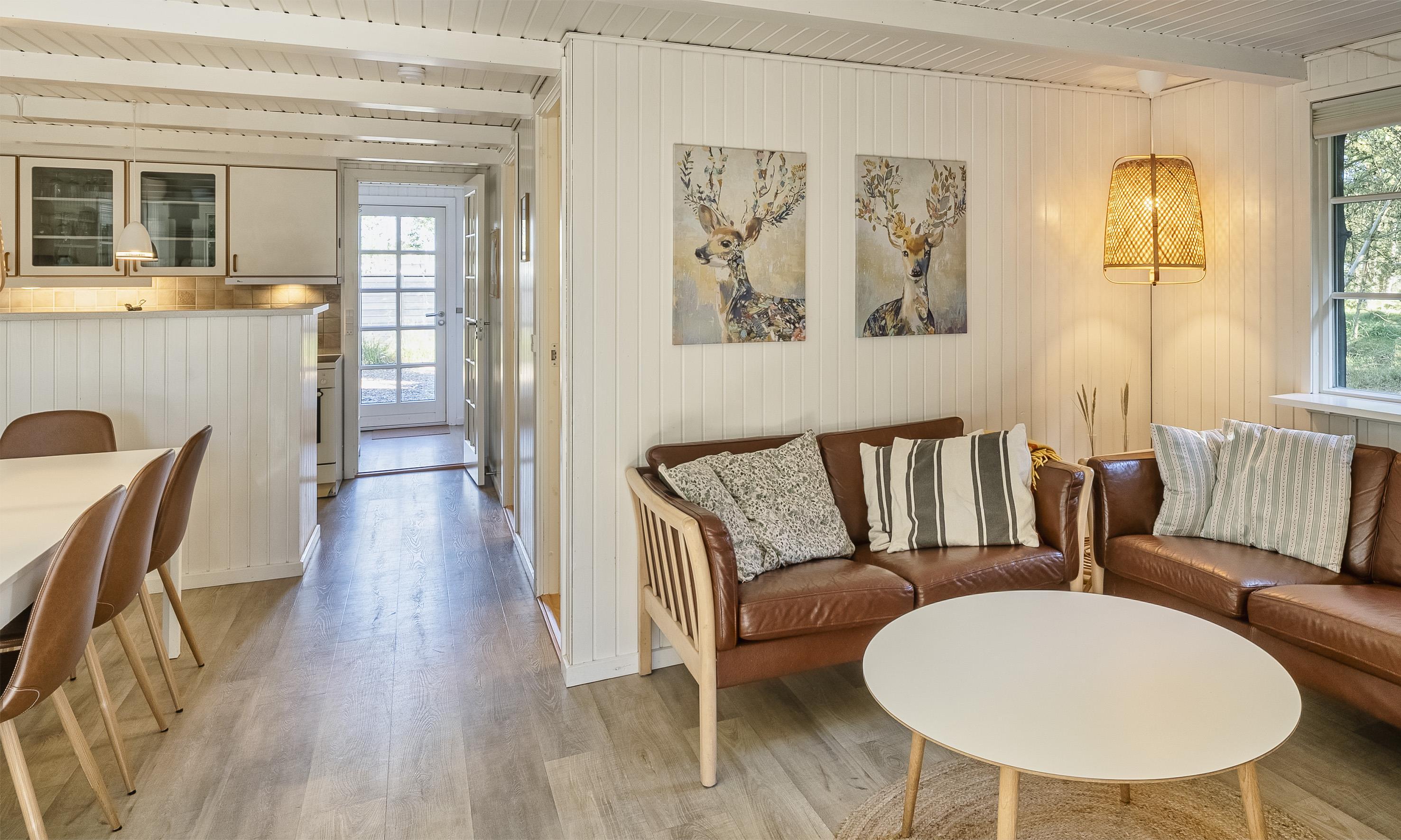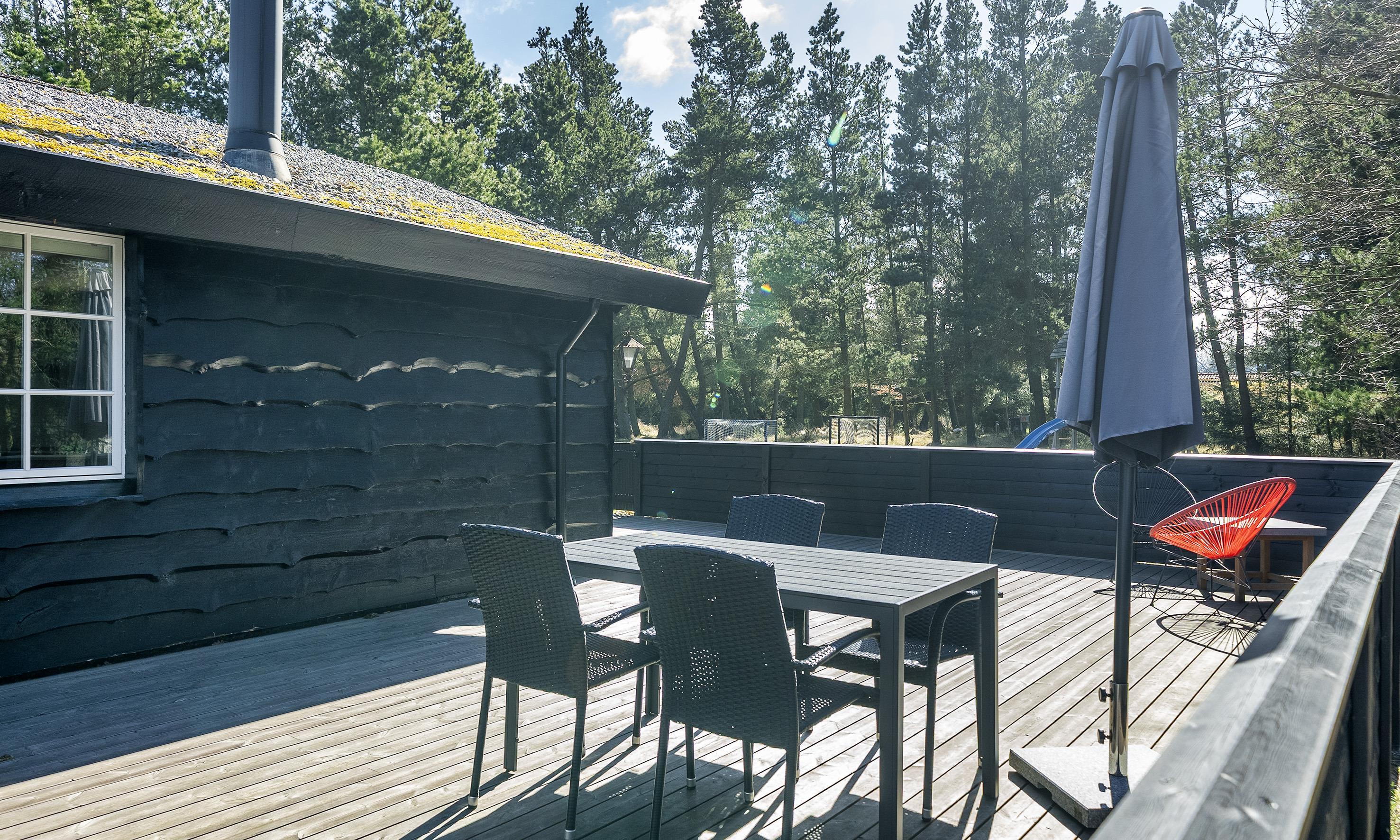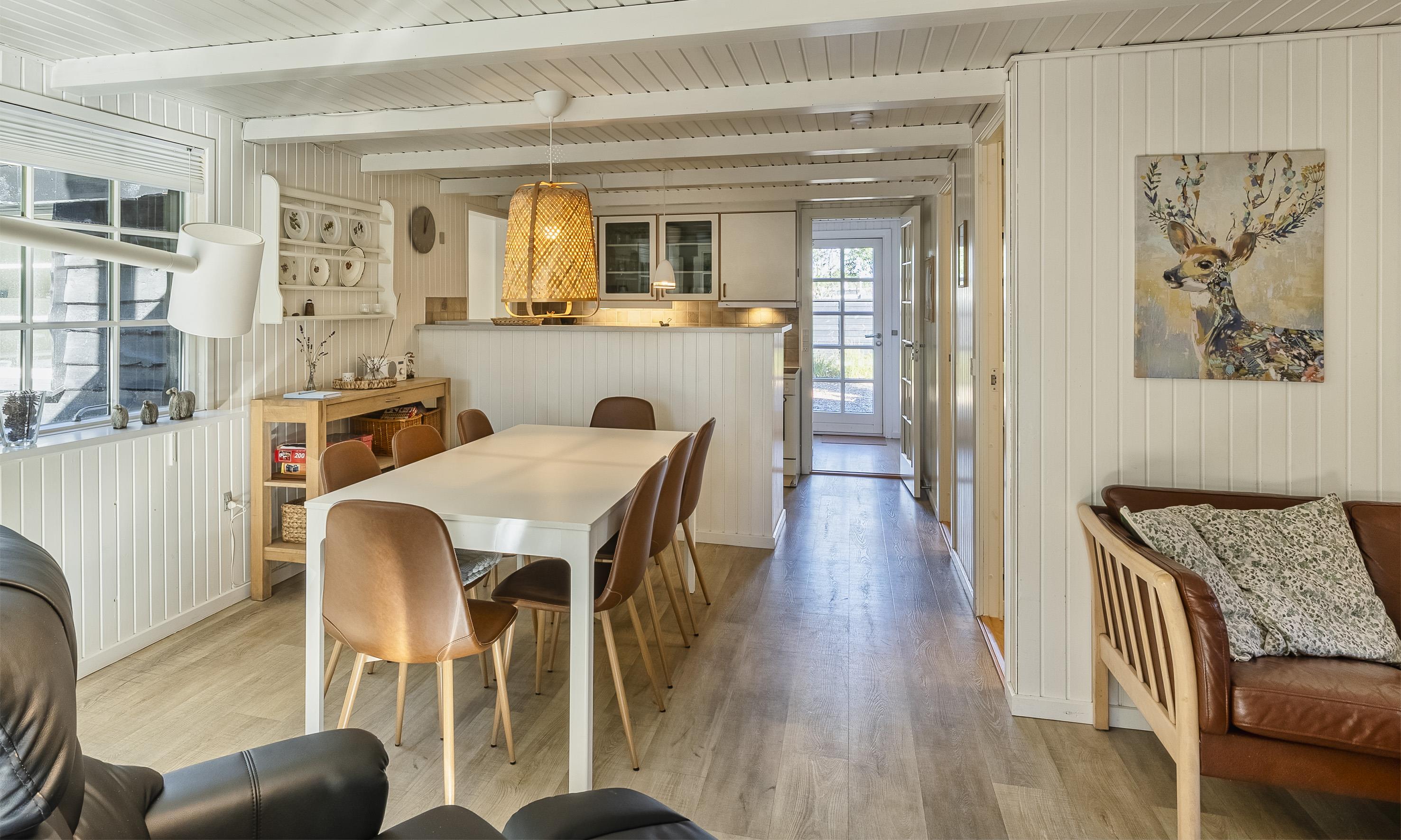 Smagfuldt sommerhus til 8 personer, 4 voksne samt 4 børn. Huset er beliggende på stor dejlig naturgrund omkranset af træer, og blot 2 km fra stranden. Der er kort afstand til købmand, minigolf og restaurant indenfor 800 meter. Huset er tæt beliggende på skov og hede, hvor en dejlig gåtur kan nydes og se et af området mange kronvildt.