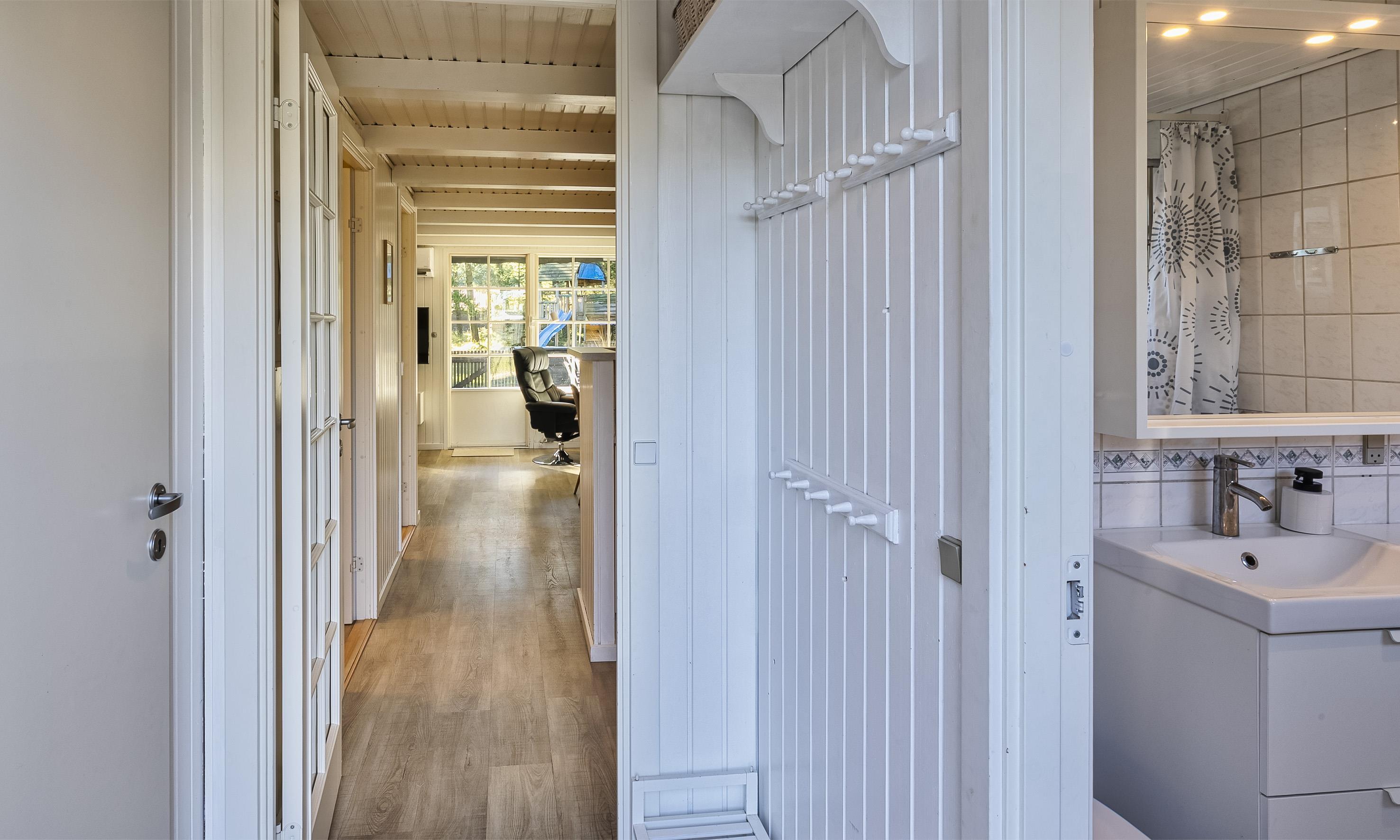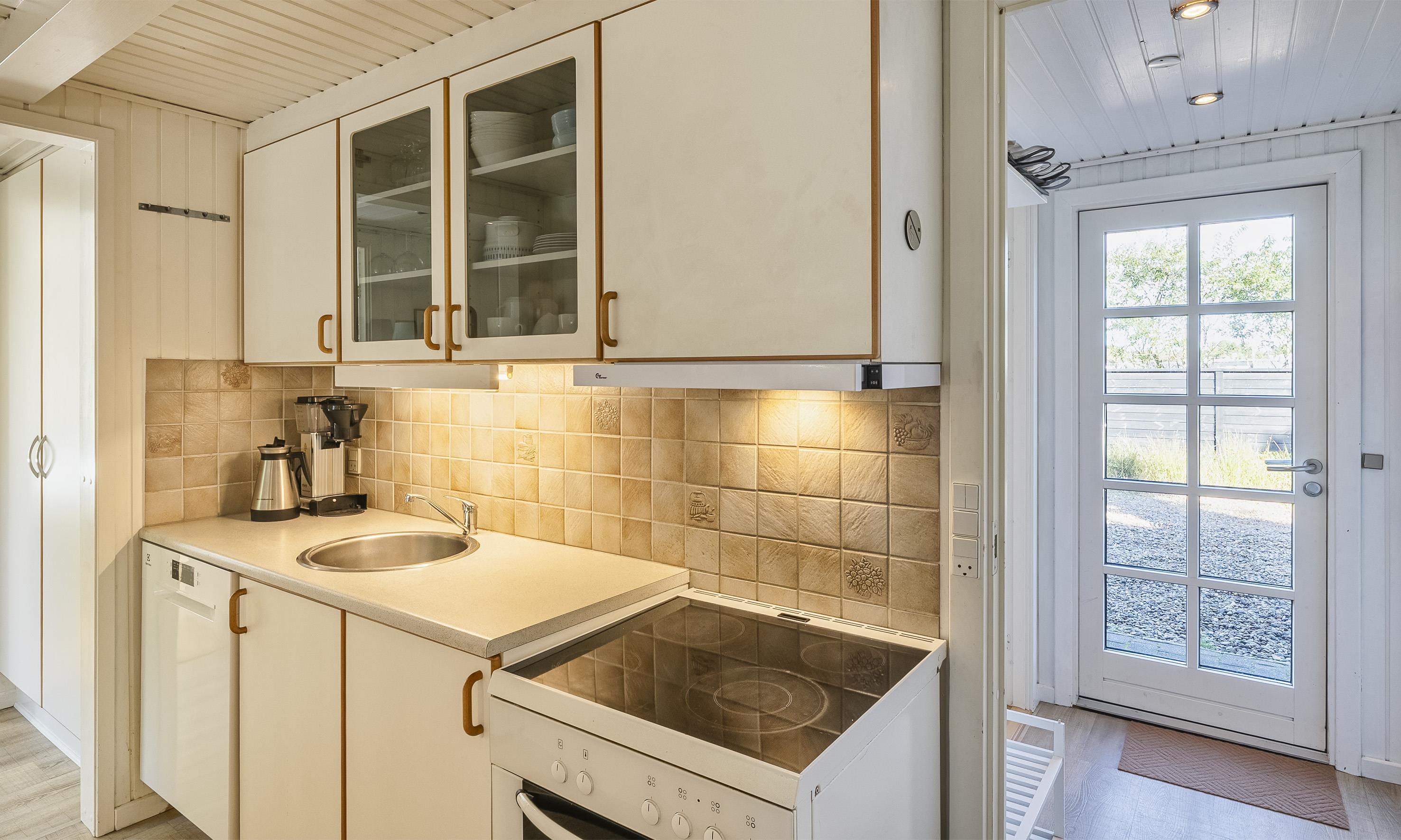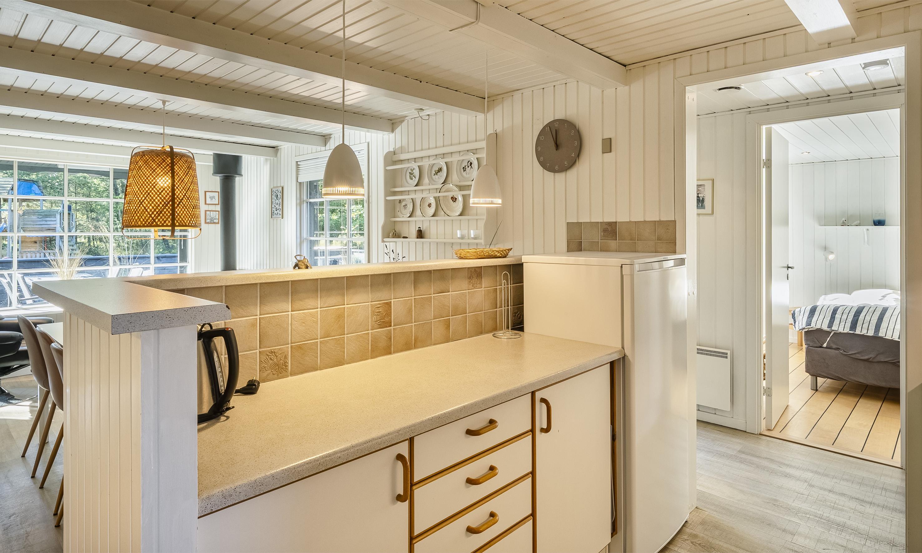 Huset indeholder: Entre, fordelingsgang. Fra fordelingsgangen kommer man ind i huset store opholdsrum. Opholdsrummet er indrettet med åben køkken med halvvæg mod spisestuen. Hyggelig stue med brændeovn, fjernsyn med Google chrome cast, og parabol. Det åbne køkken er med mikroovn, opvaskemaskine og køle-/fryseskab. Fra køkken kommer man over i en tilbygning der indeholder, lille gang med udgang til terrasse, stort soveværelse med en dobbeltseng og garderobeskabe, et badeværelse med bruser/wc, vask og håndklædetørrer. 4 soveværelser: DS + DS + KS + KS. Fra entreen er der et 1 soveværelse med 1 trekvart seng, og et badeværelse med bruser/wc og vaskearrangement. kombineret Vaskemaskine med tørretumbler. Fra spisestuen er der ydermere 2 soveværelser med køjesenge (korte) og 1 soveværelse med 1 dobbeltseng. Trådløs internet. Stor lukket terrasse, med et lille stykke overdækket terrasse. Rygning er ikke tilladt. Gratis adgang til fitnesscenter i Vejers og Blåvand i 2026. Byggeår 1969, renoveret 2006.