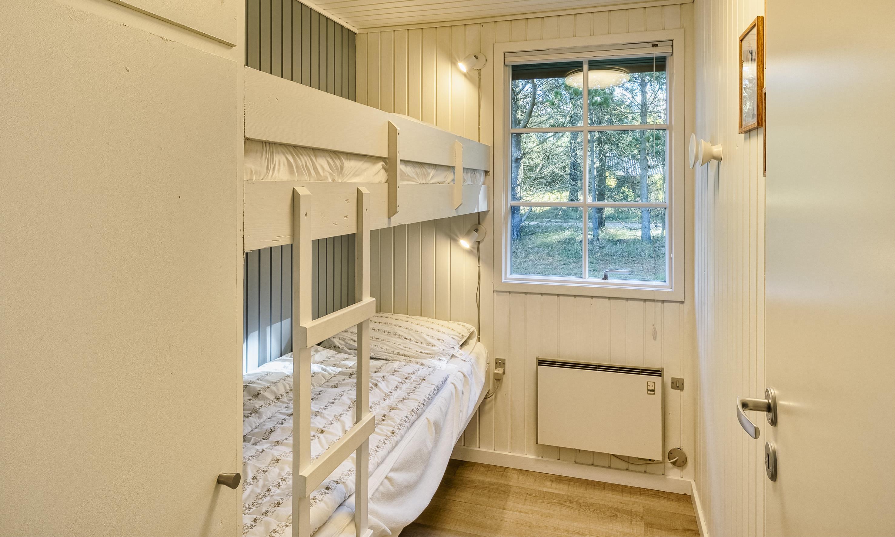 4 soveværelser. 1 med dobbeltseng 180x200 cm. 1 med trekvart seng (140x200). 2 med fire sovepladser i køjesenge (á 70x190 cm)