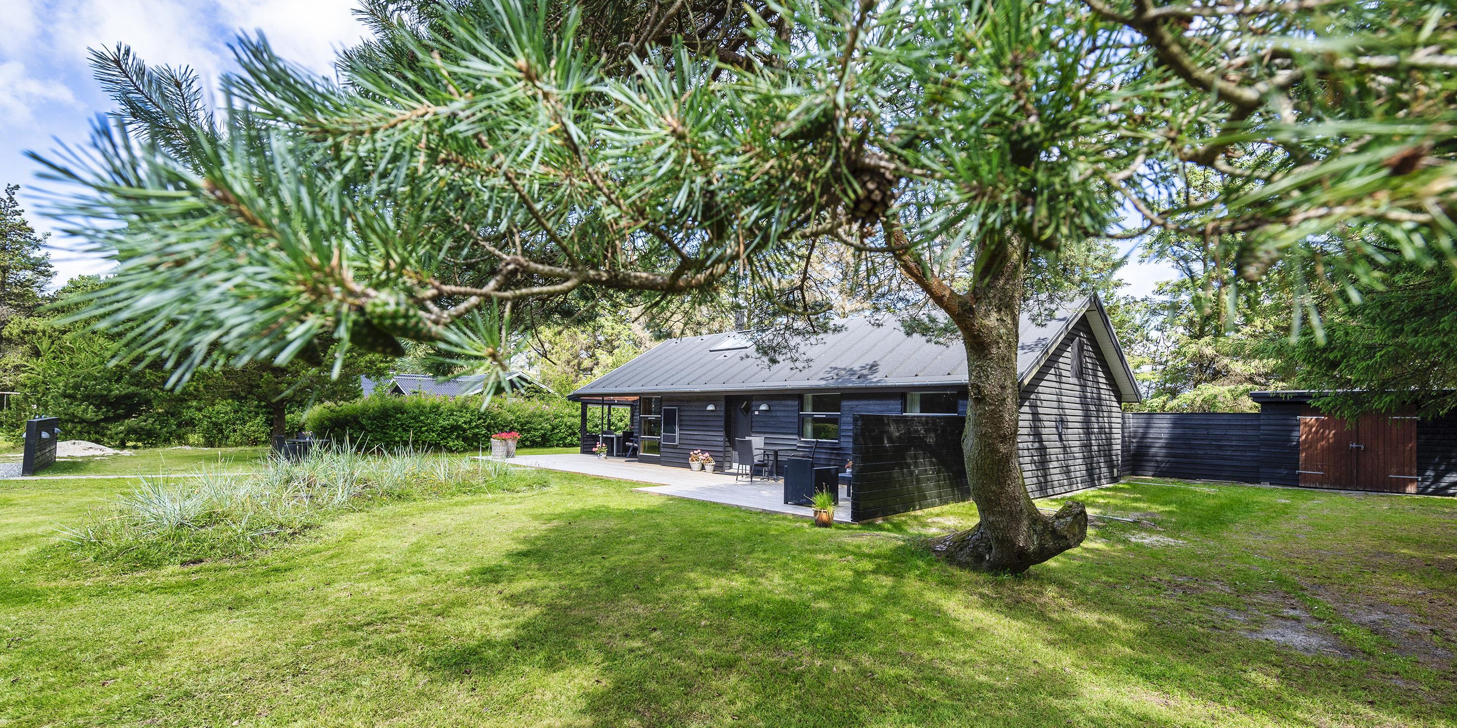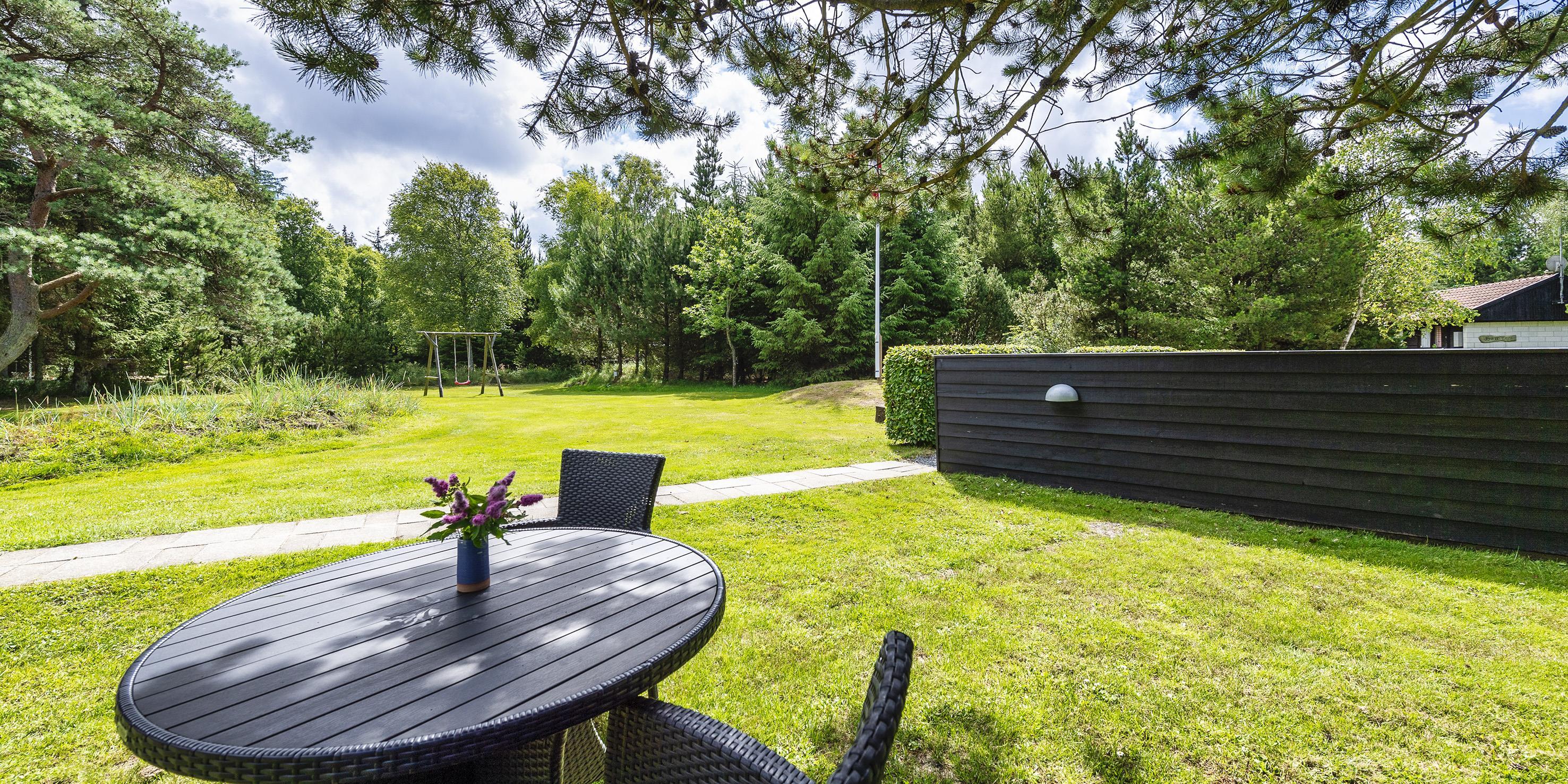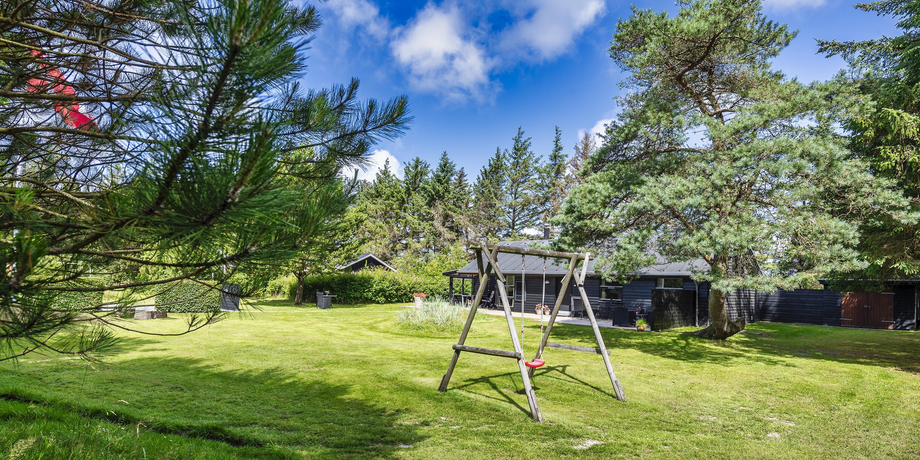 Grunden er delvist omkranset af store træer og ligger kun ca. 1500 meter fra stranden og adgang til restaurant, minigolf og indkøb indenfor ca. 300 meter. Kort afstand til skoven.
