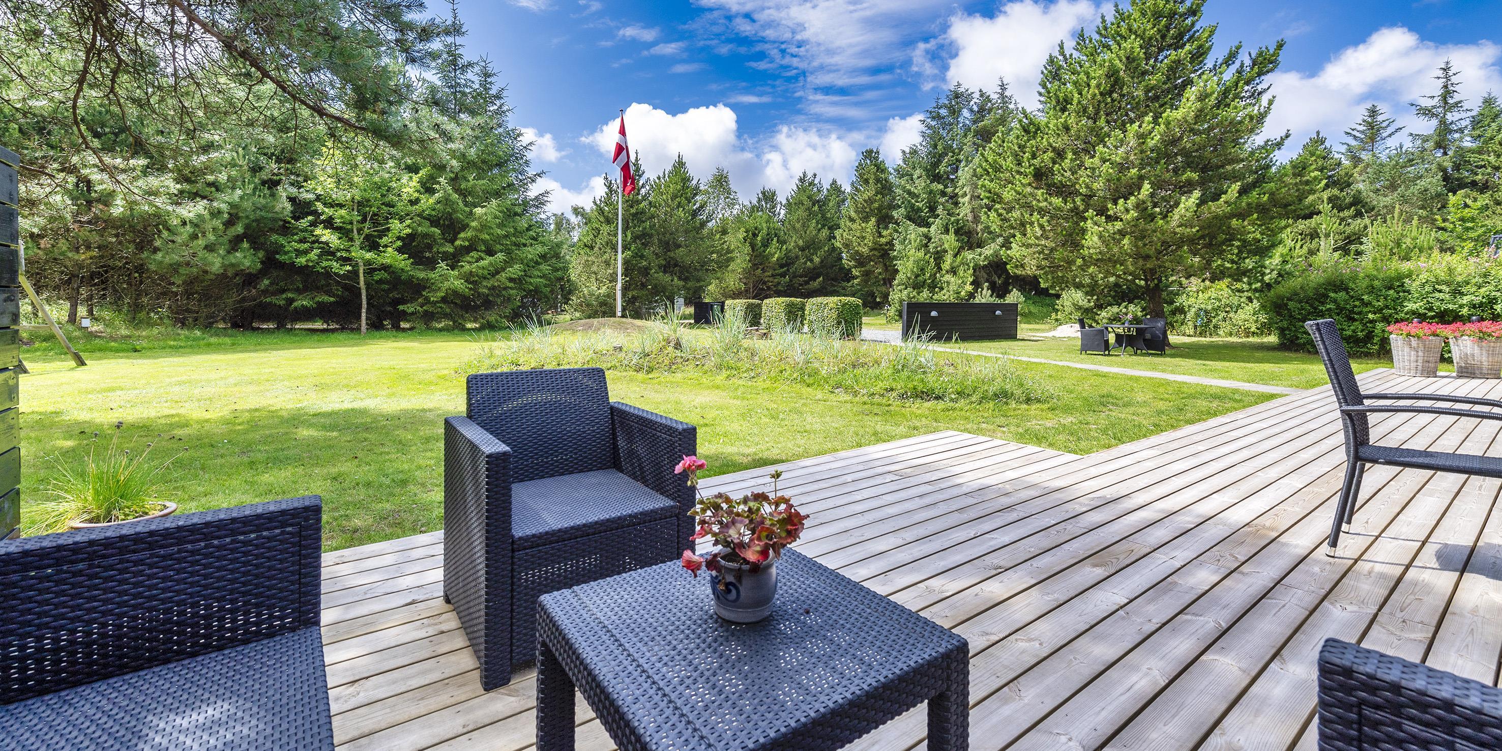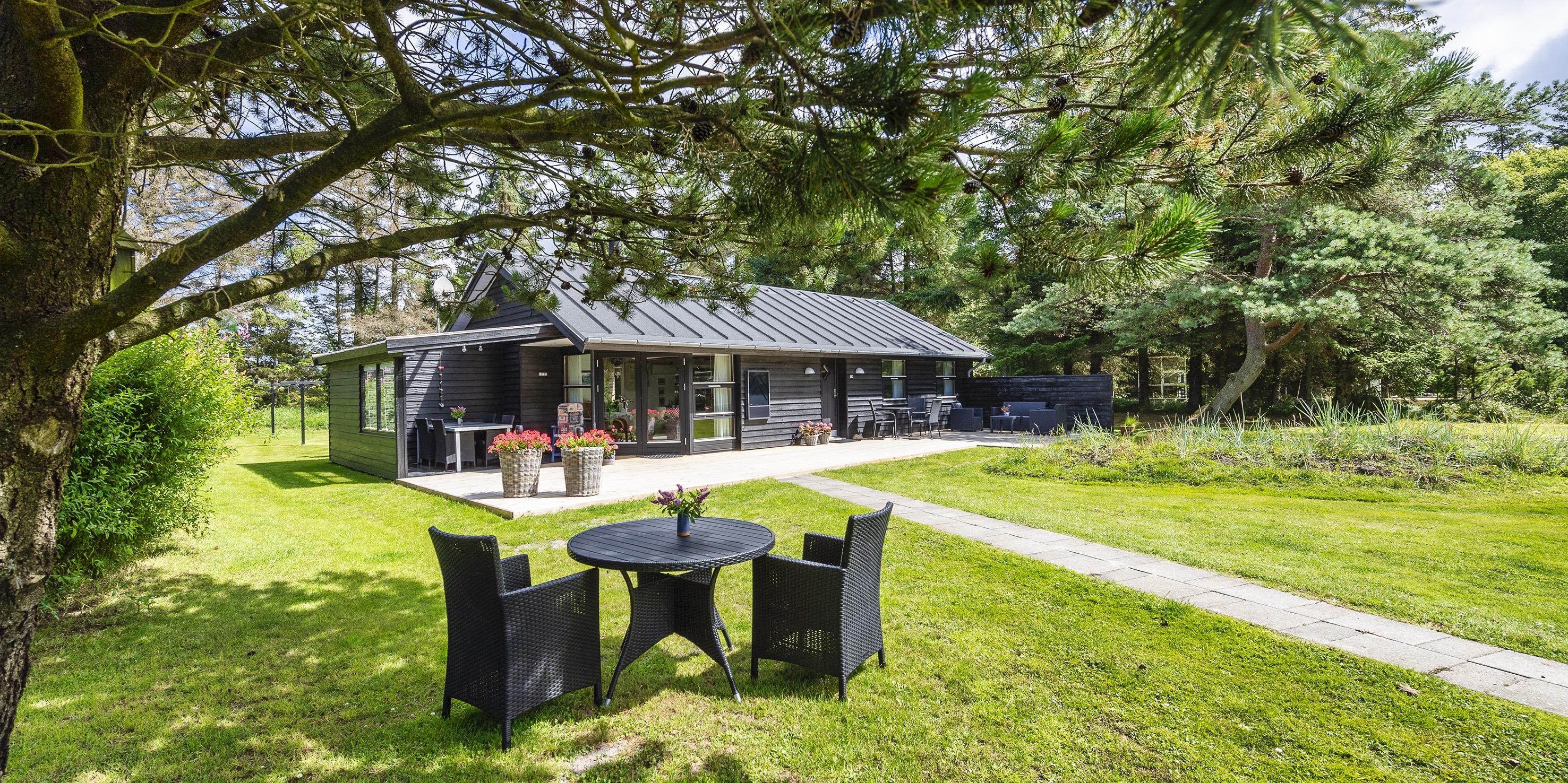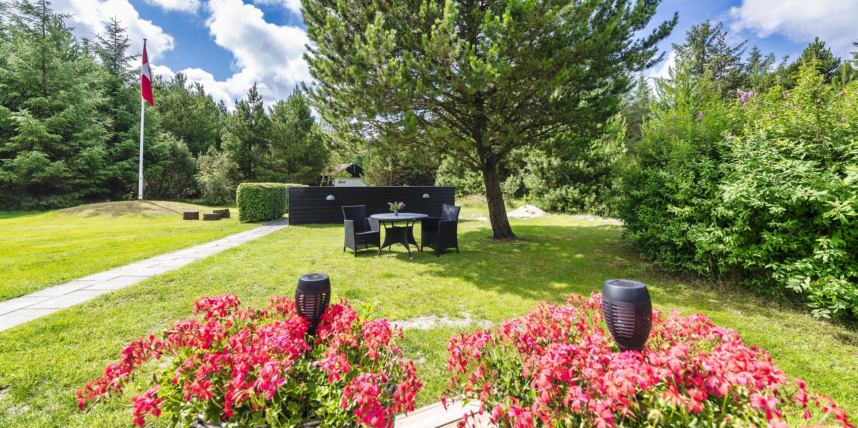 Grunden er delvist omkranset af store træer og ligger kun ca. 1500 meter fra stranden og adgang til restaurant, minigolf og indkøb indenfor ca. 300 meter. Kort afstand til skoven.