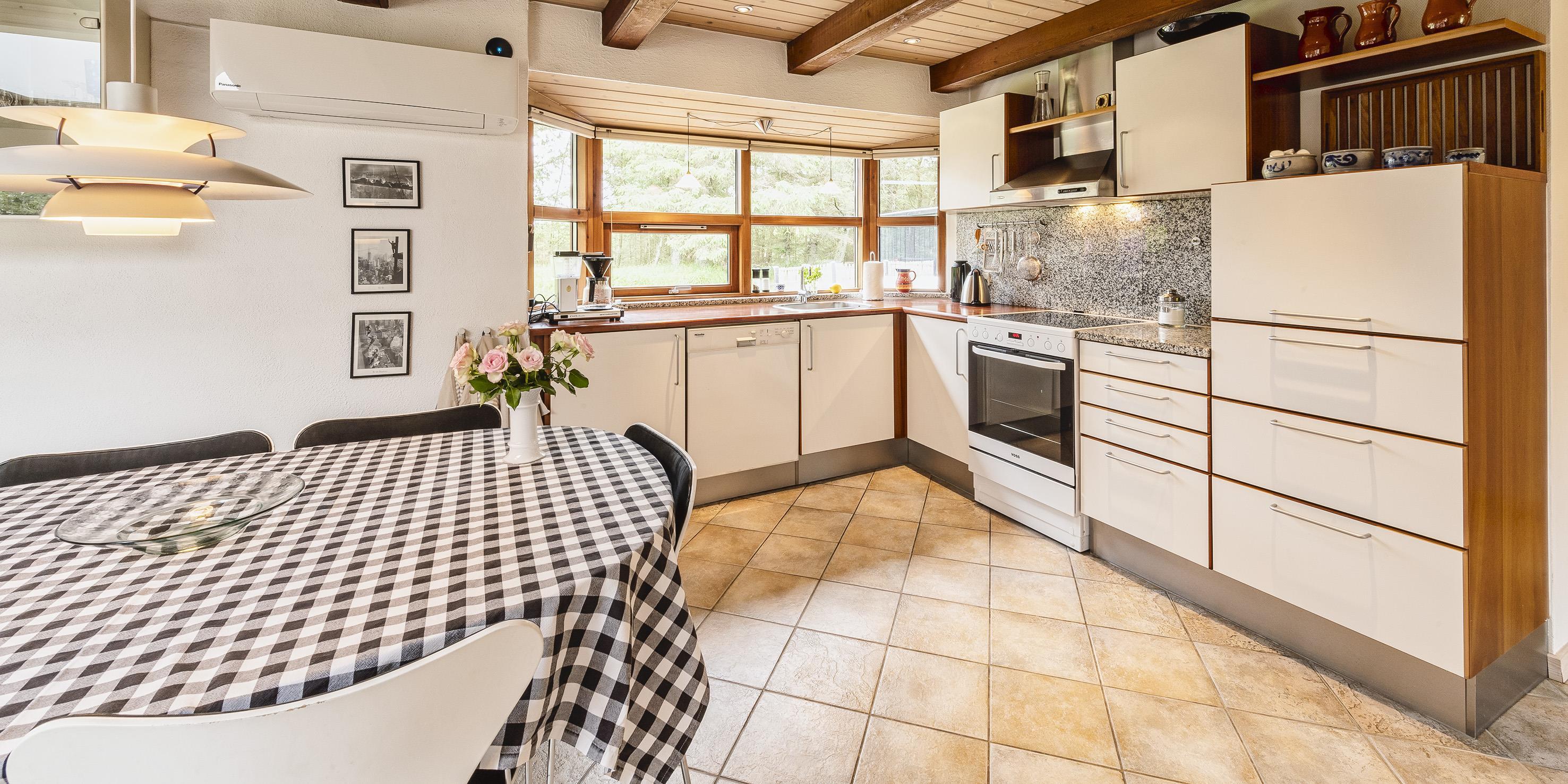 Køkkenet indeholder induktionskomfur, køle/fryseskab, opvaskemaskine samt mikroovn.